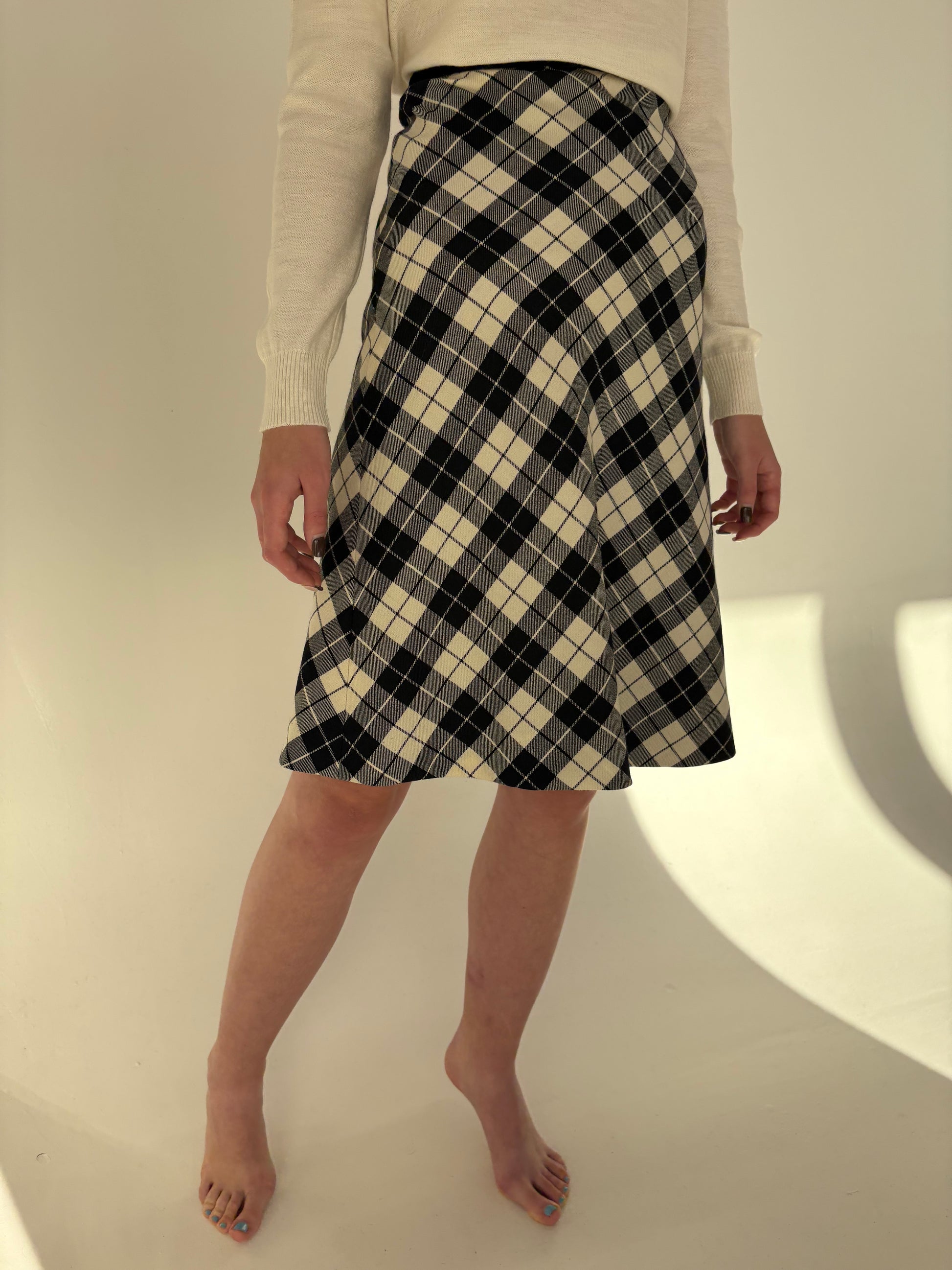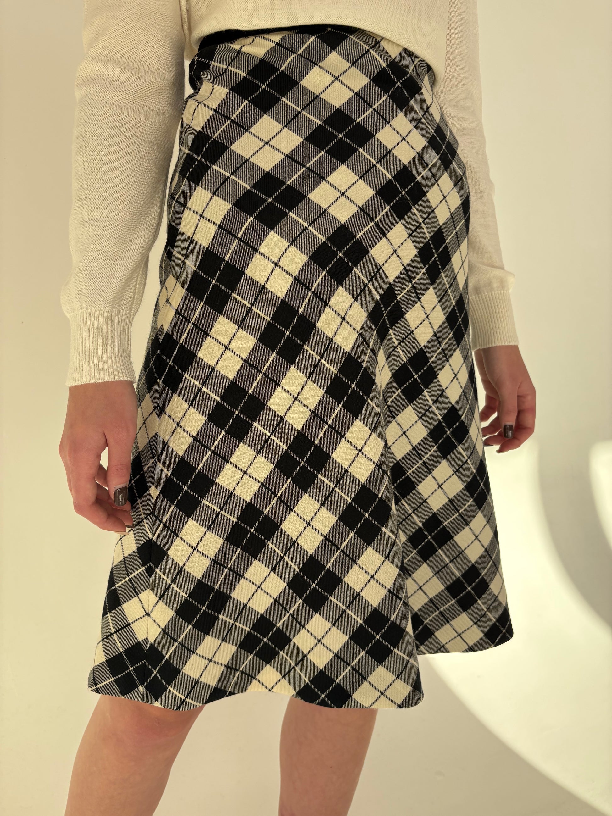 Fustă în bie și carouri din lana extrafina cu print negru și ivoire