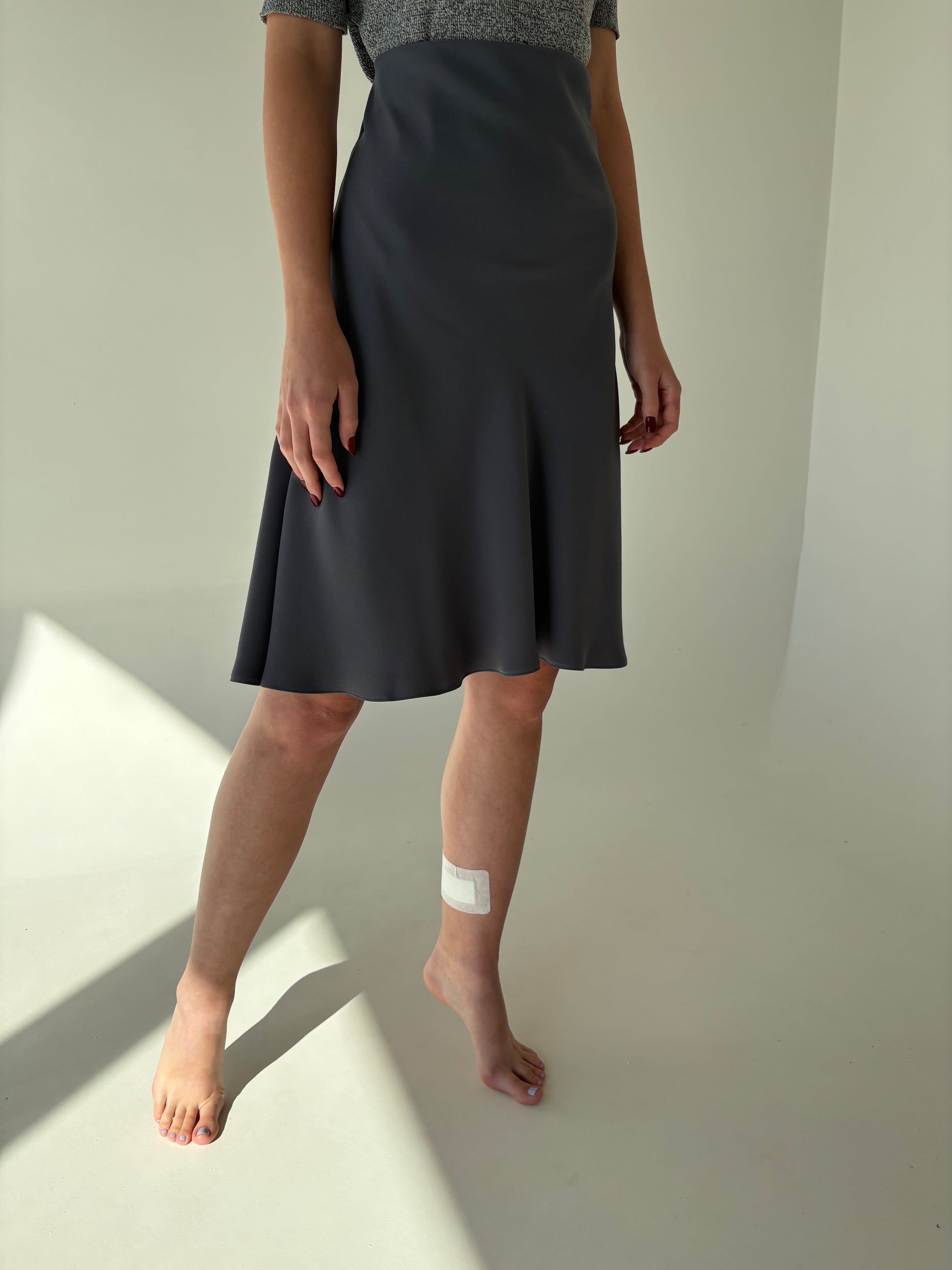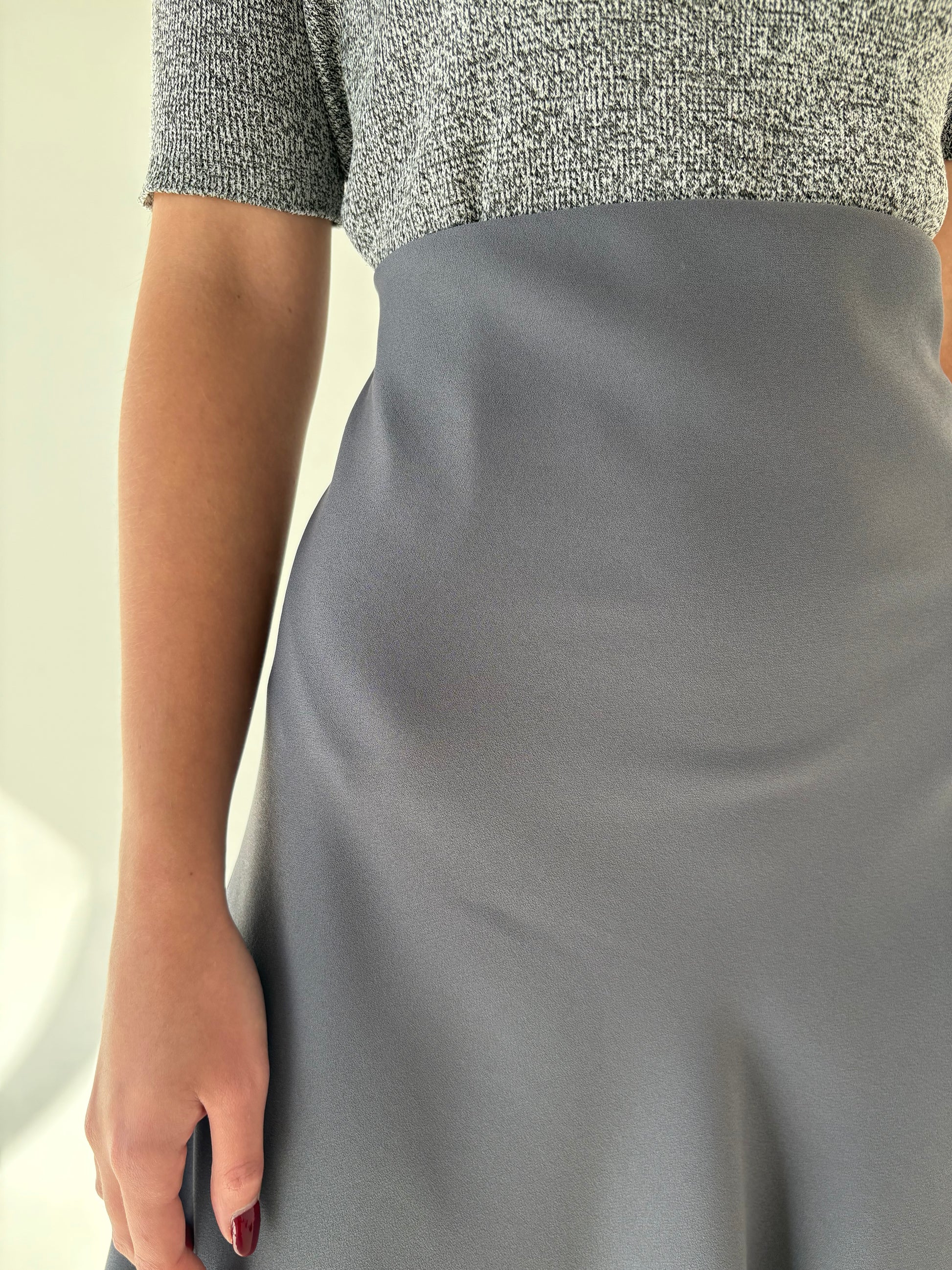 Fustă steel gray în bie din Georgette plin de brand premium italian