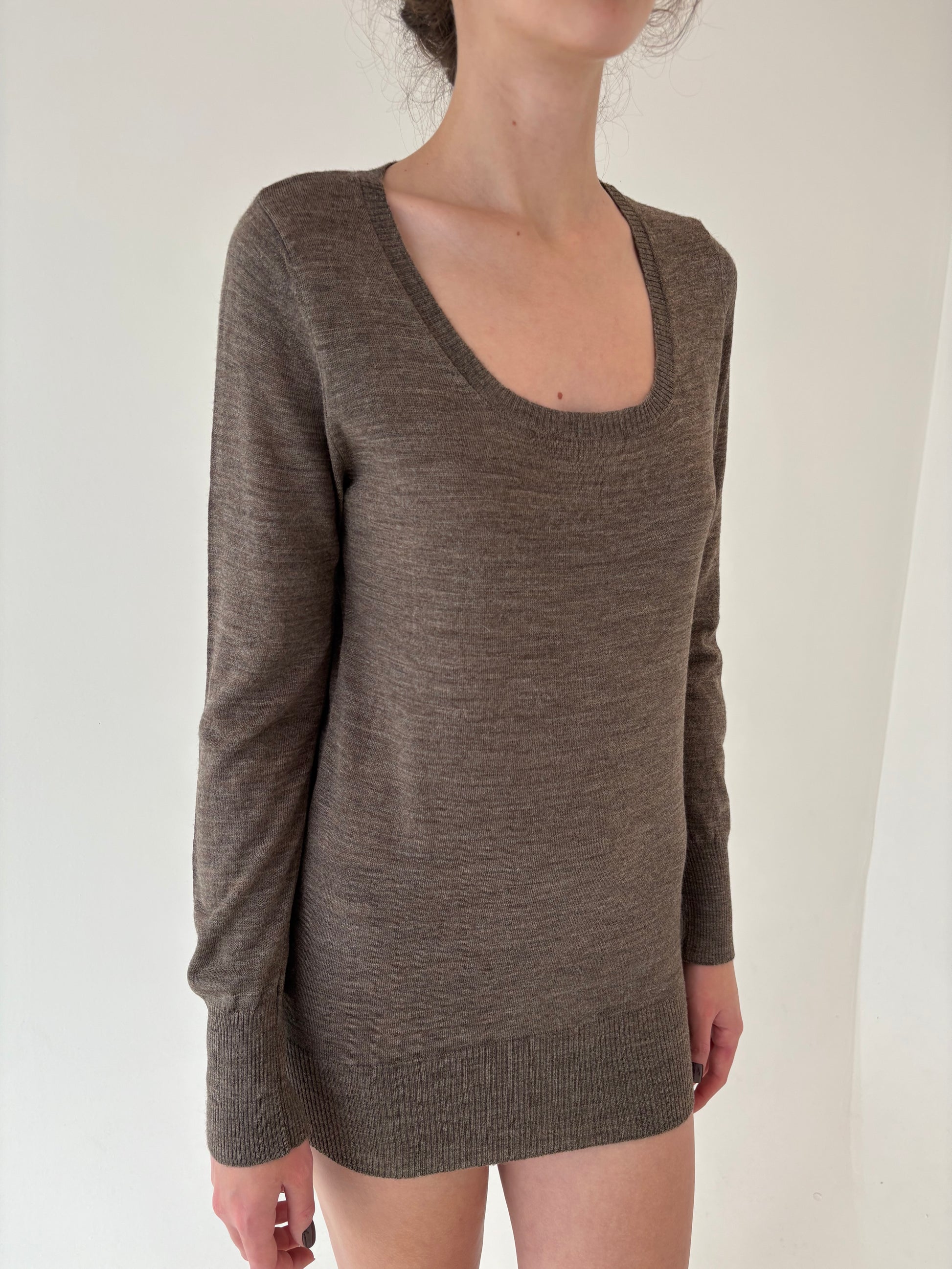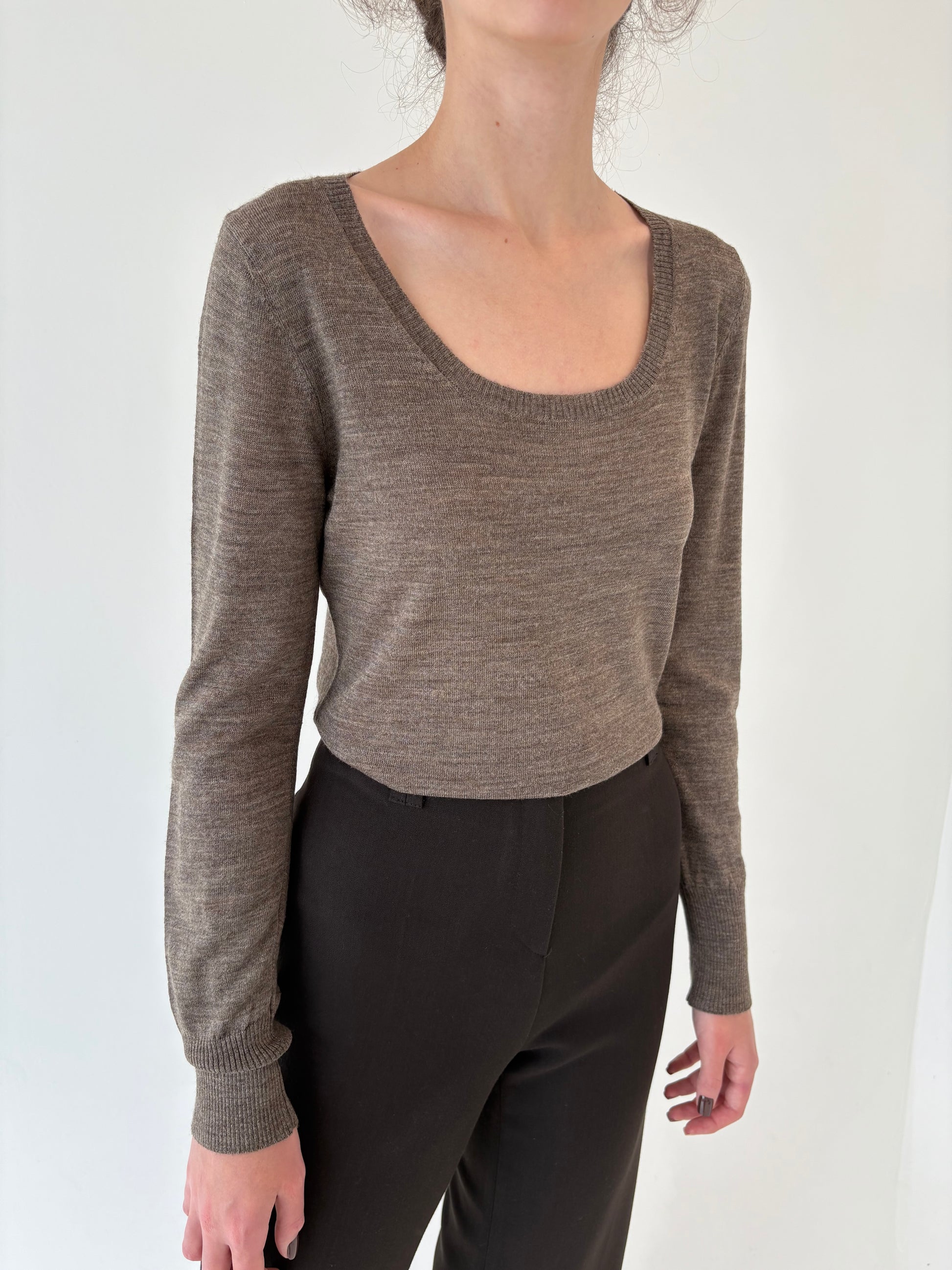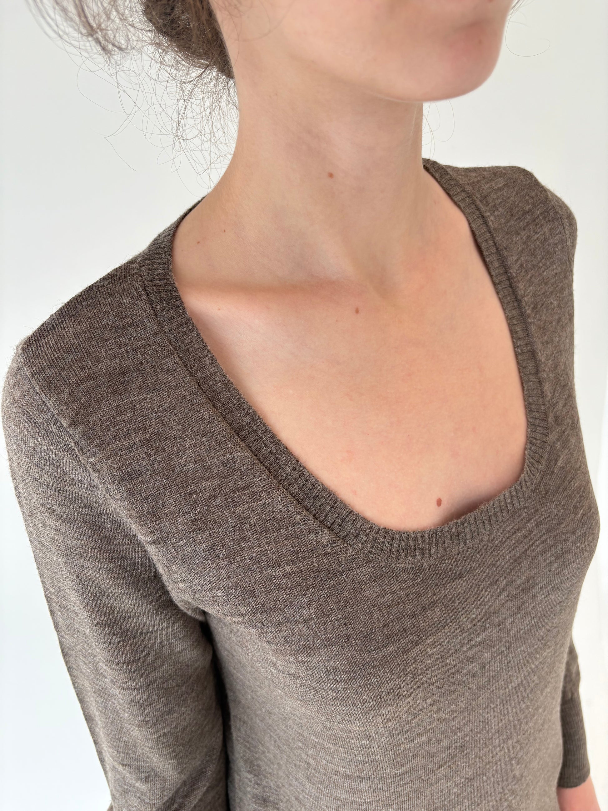 Pulover dark nude cu a sete ultra înaltă din lana extrafina