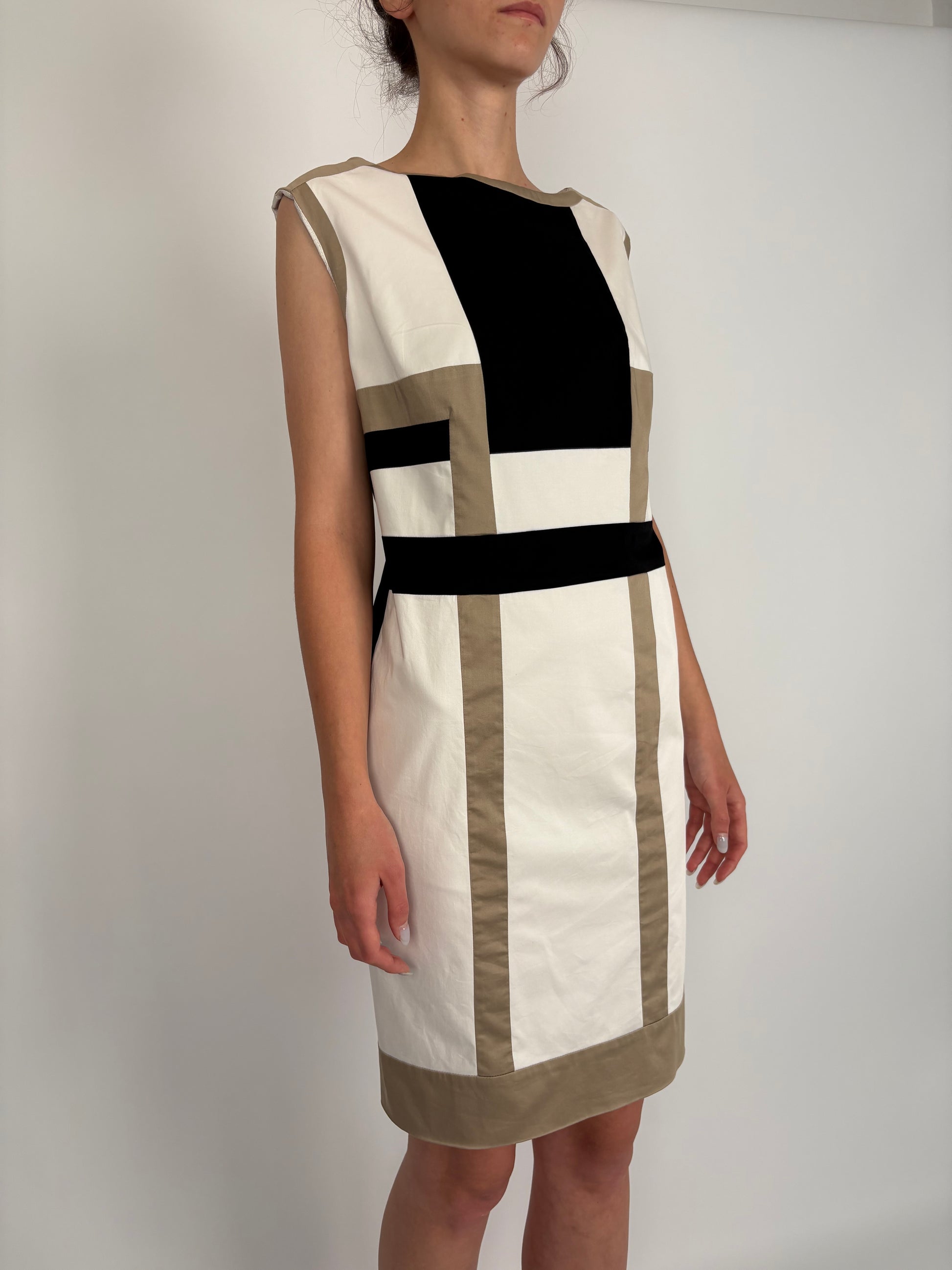 Rochie business colorblock din poplin de bumbac cu ținuta