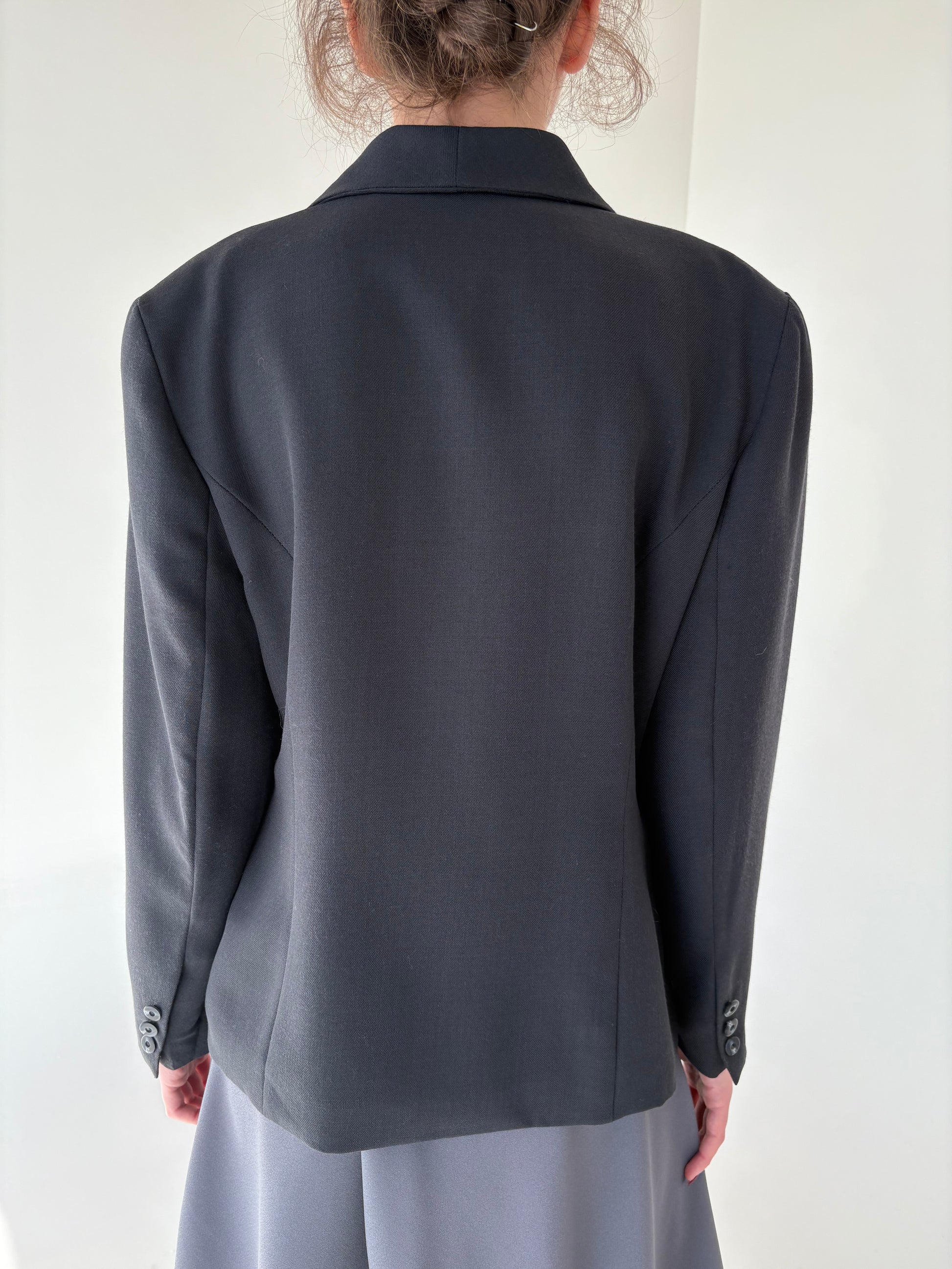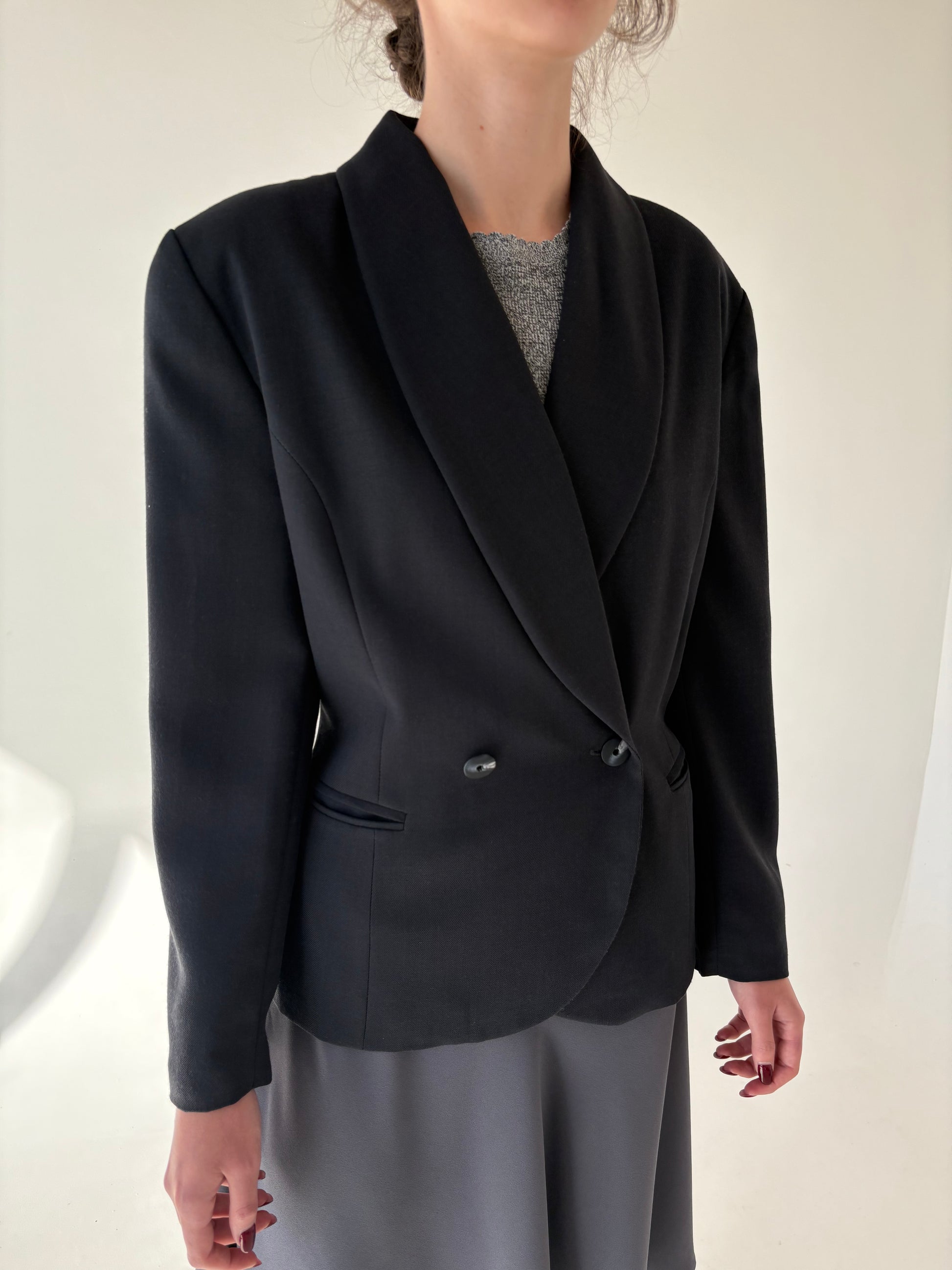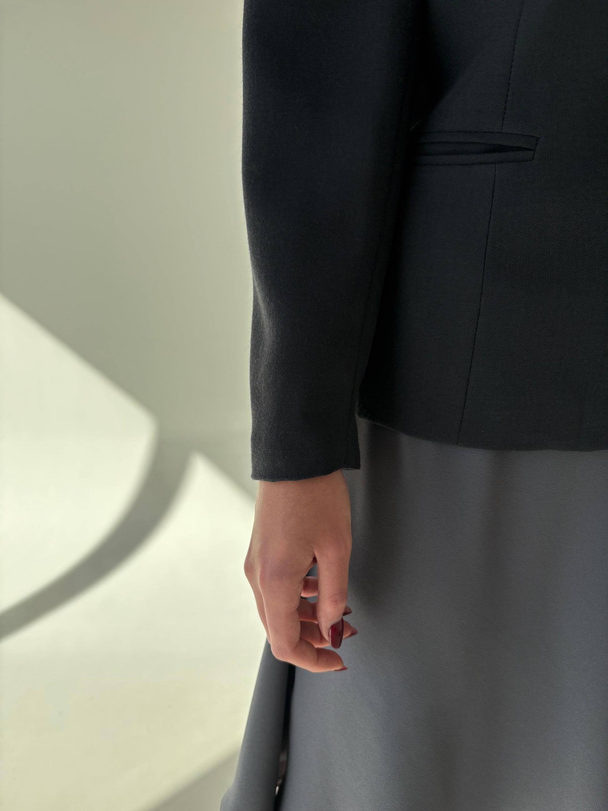 Sacou charcoal gray cu revere rotunjite cambrat din lana extrafina