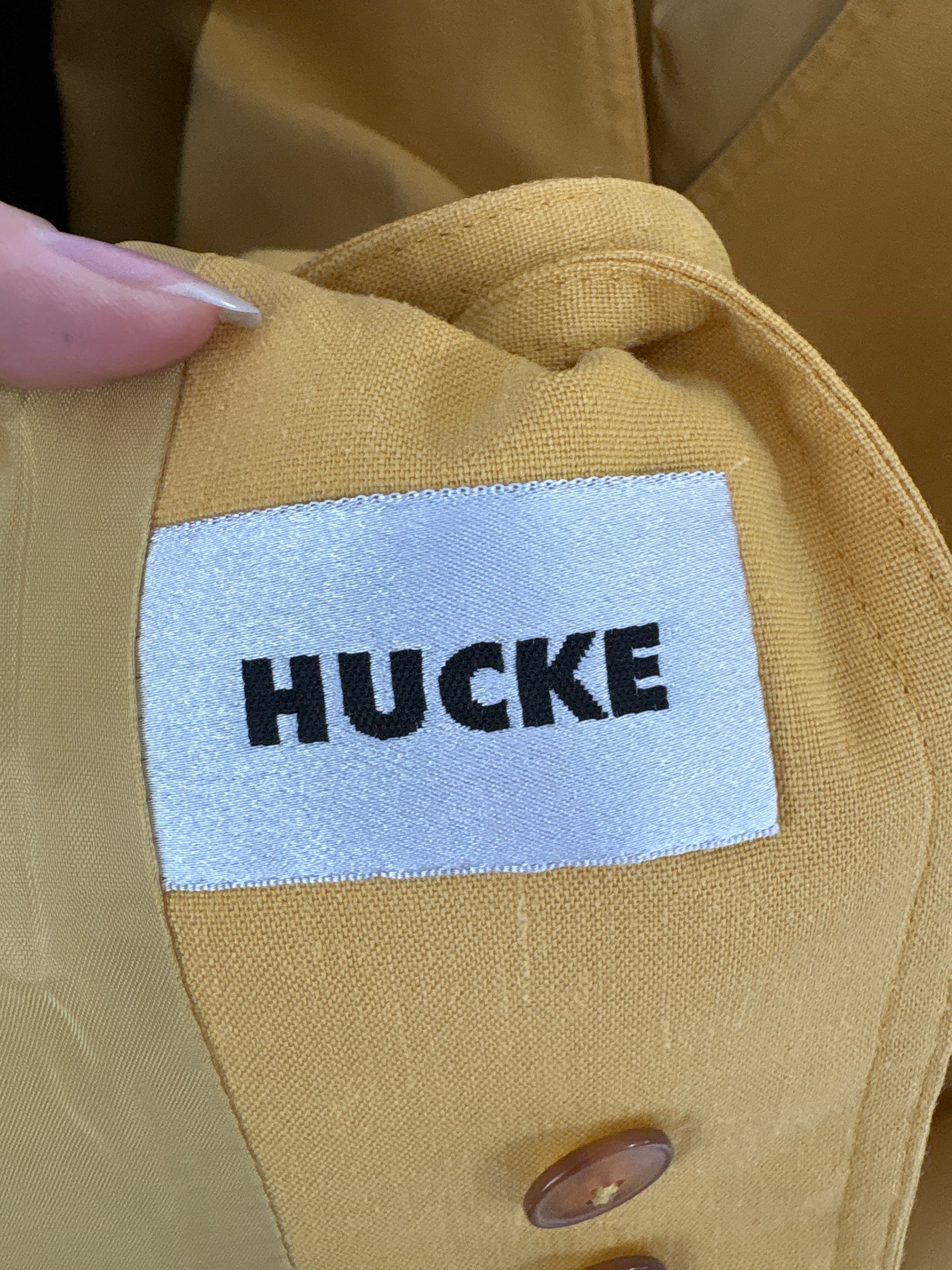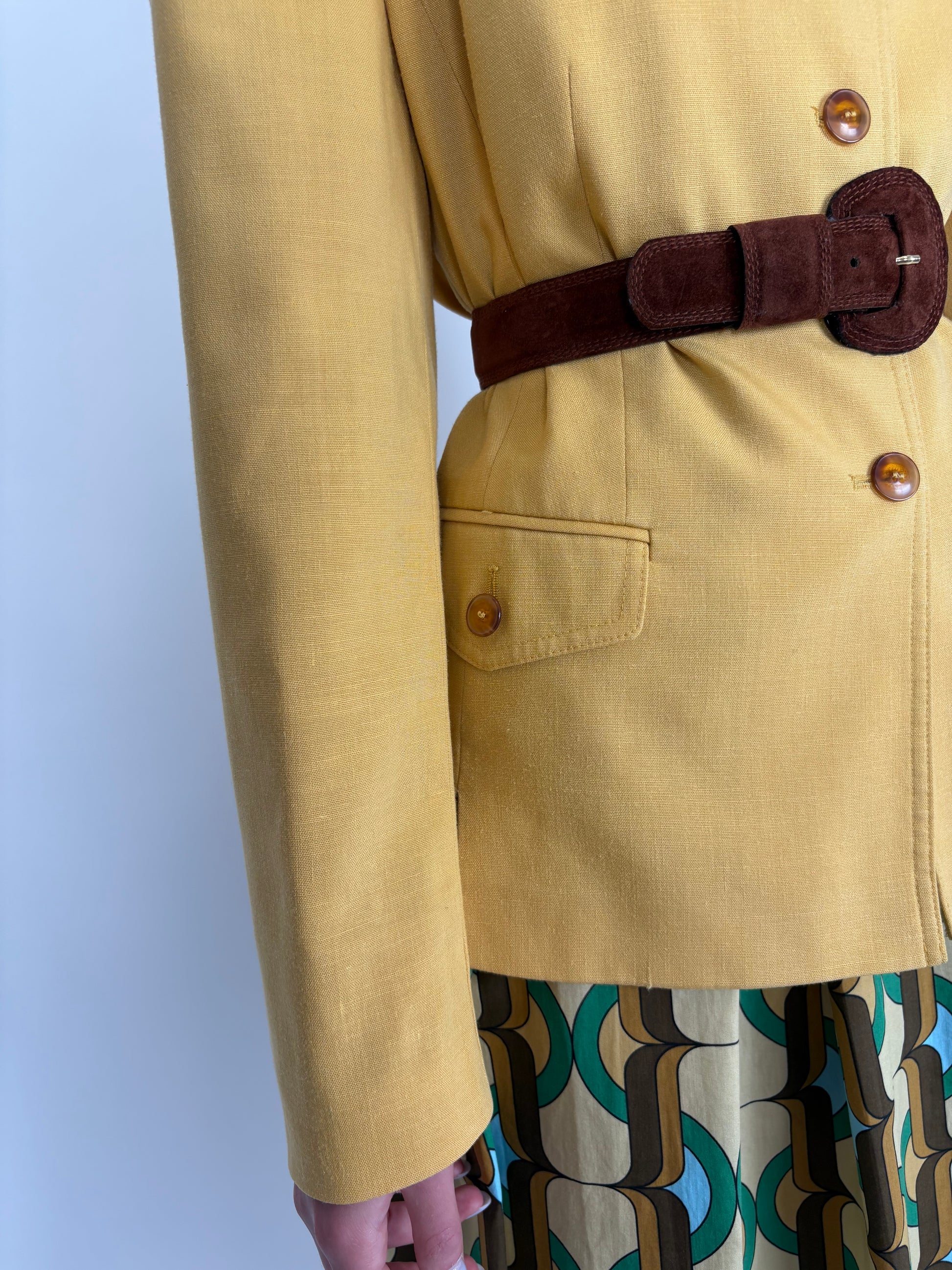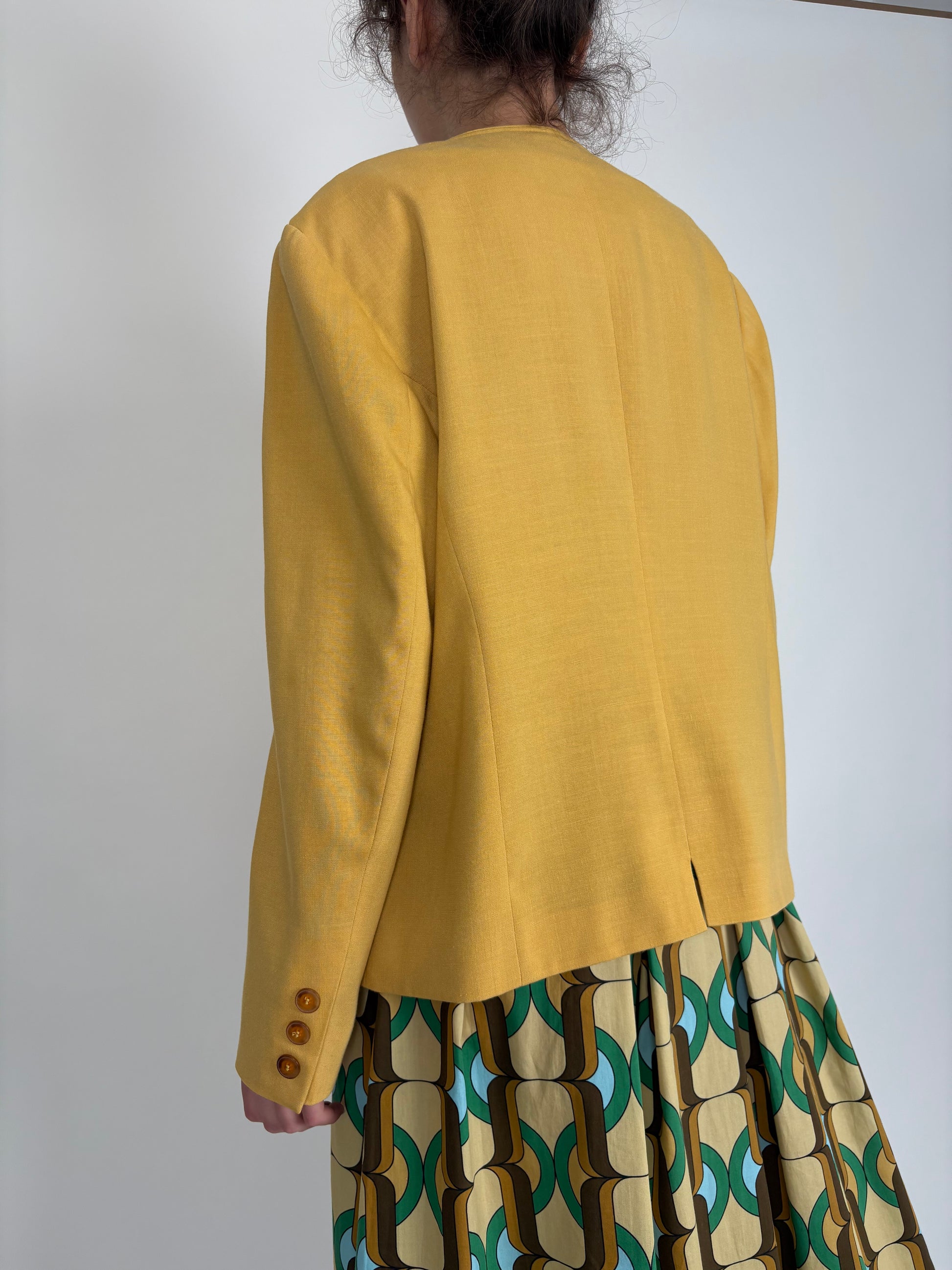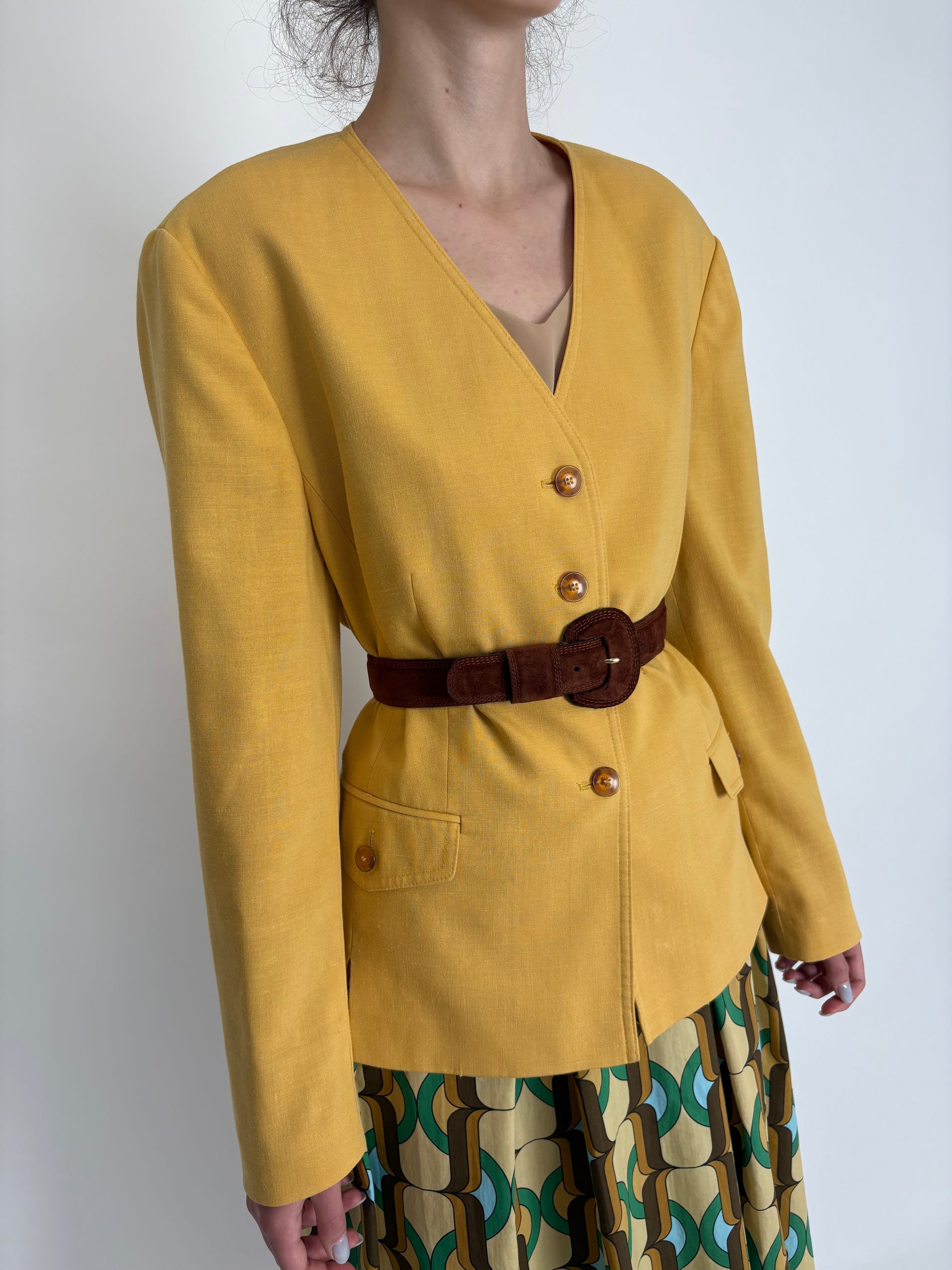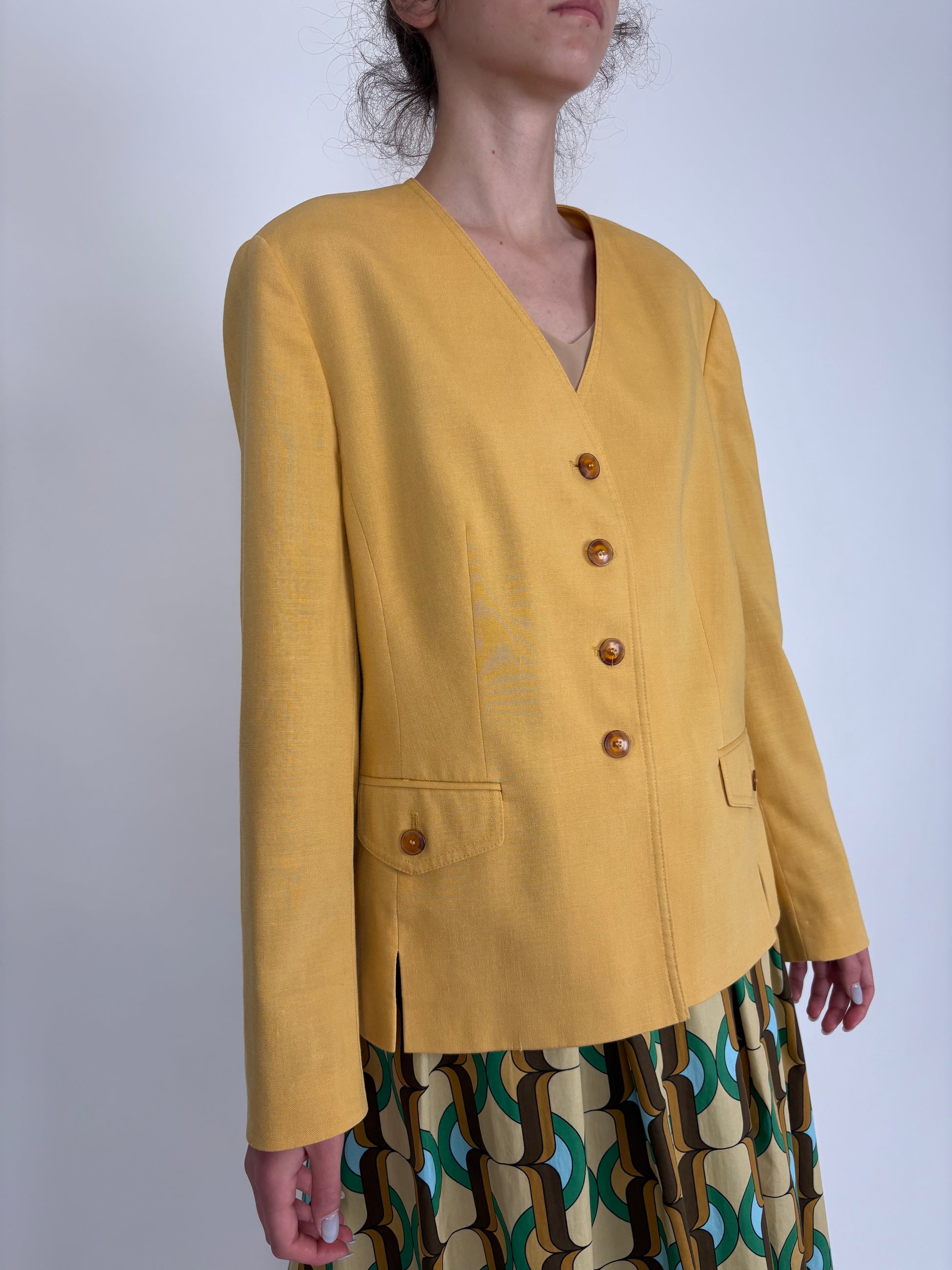 Sacou mustard yellow din pânză în croi minimalist ușor cambrat