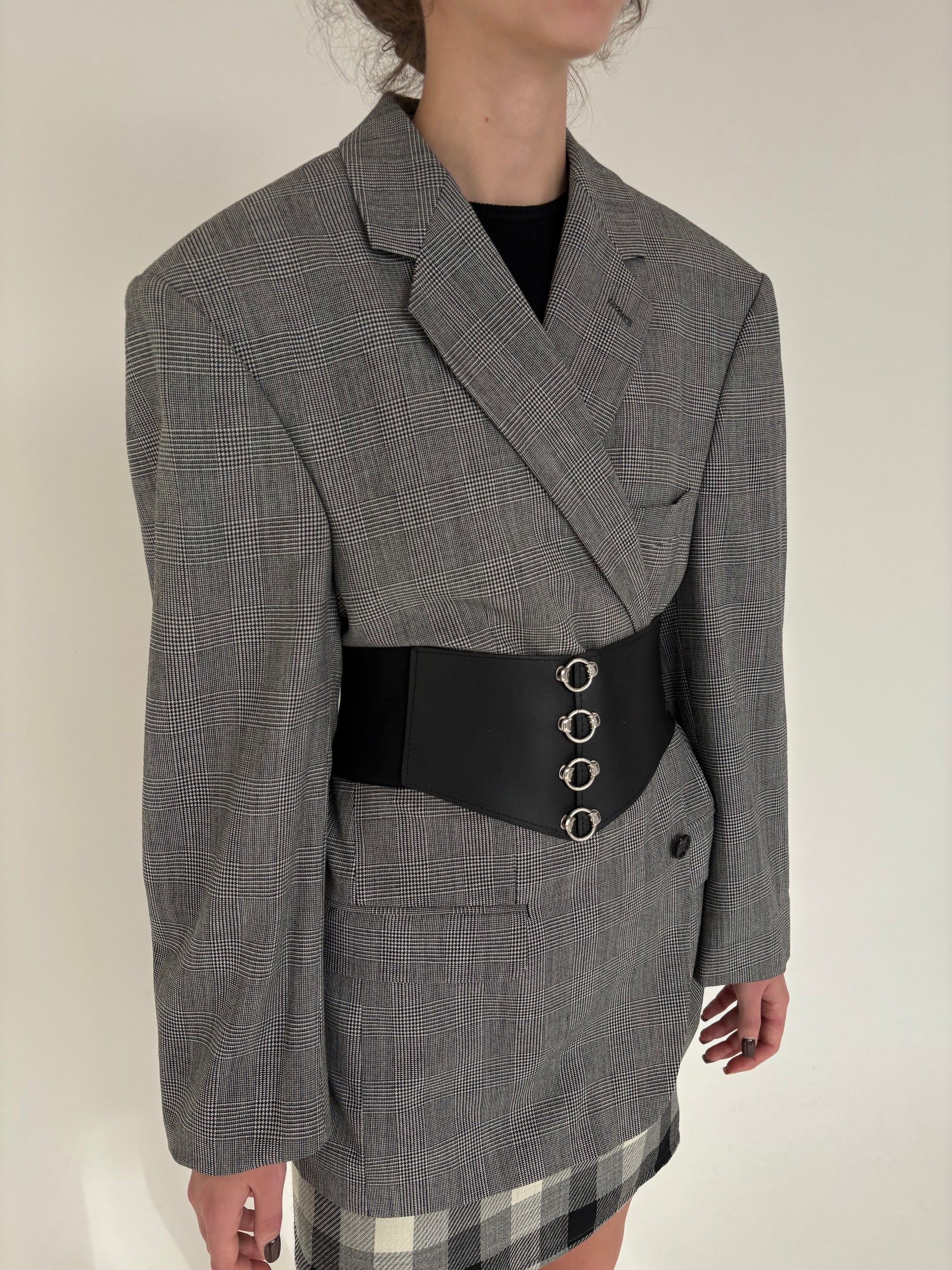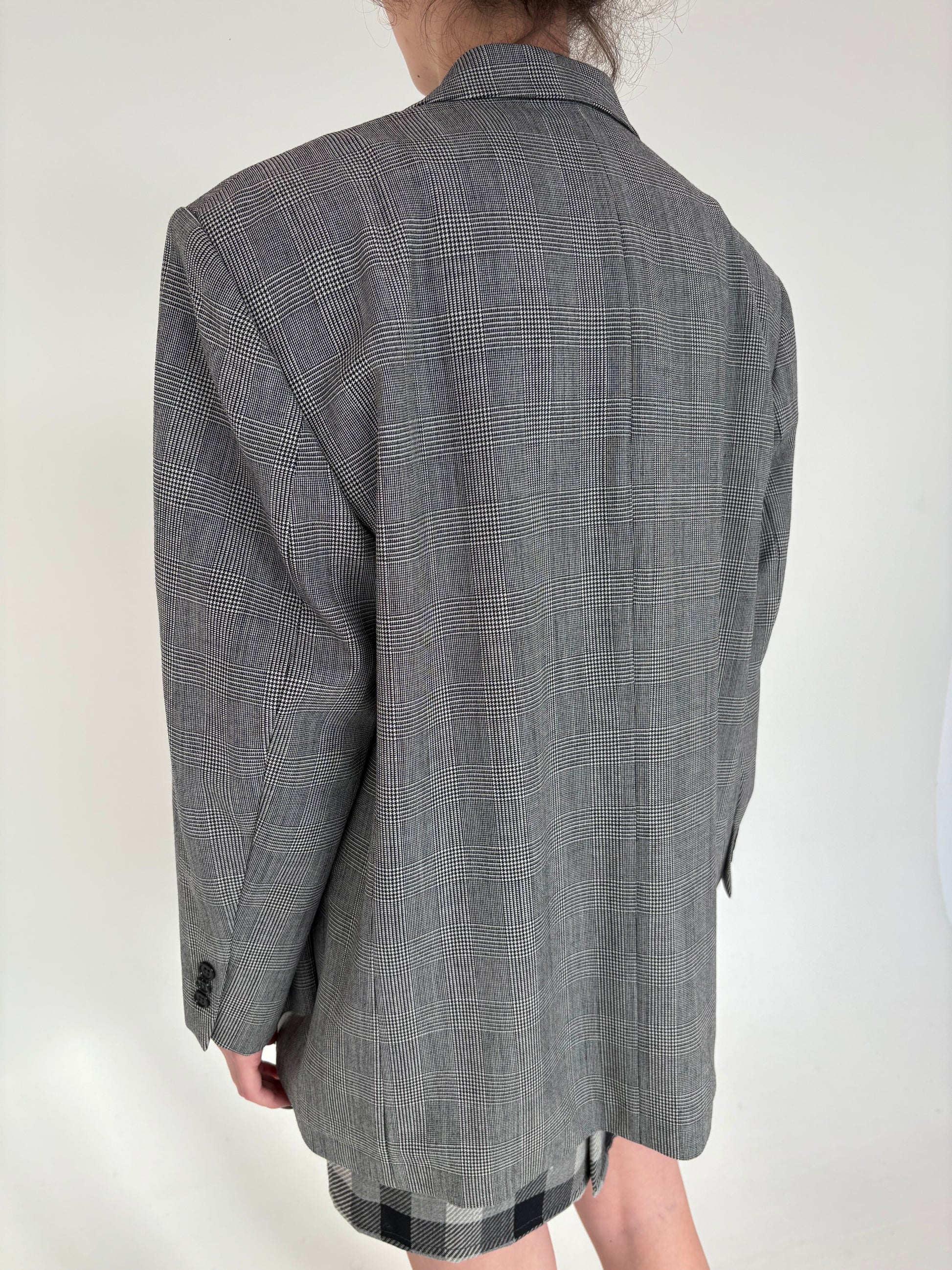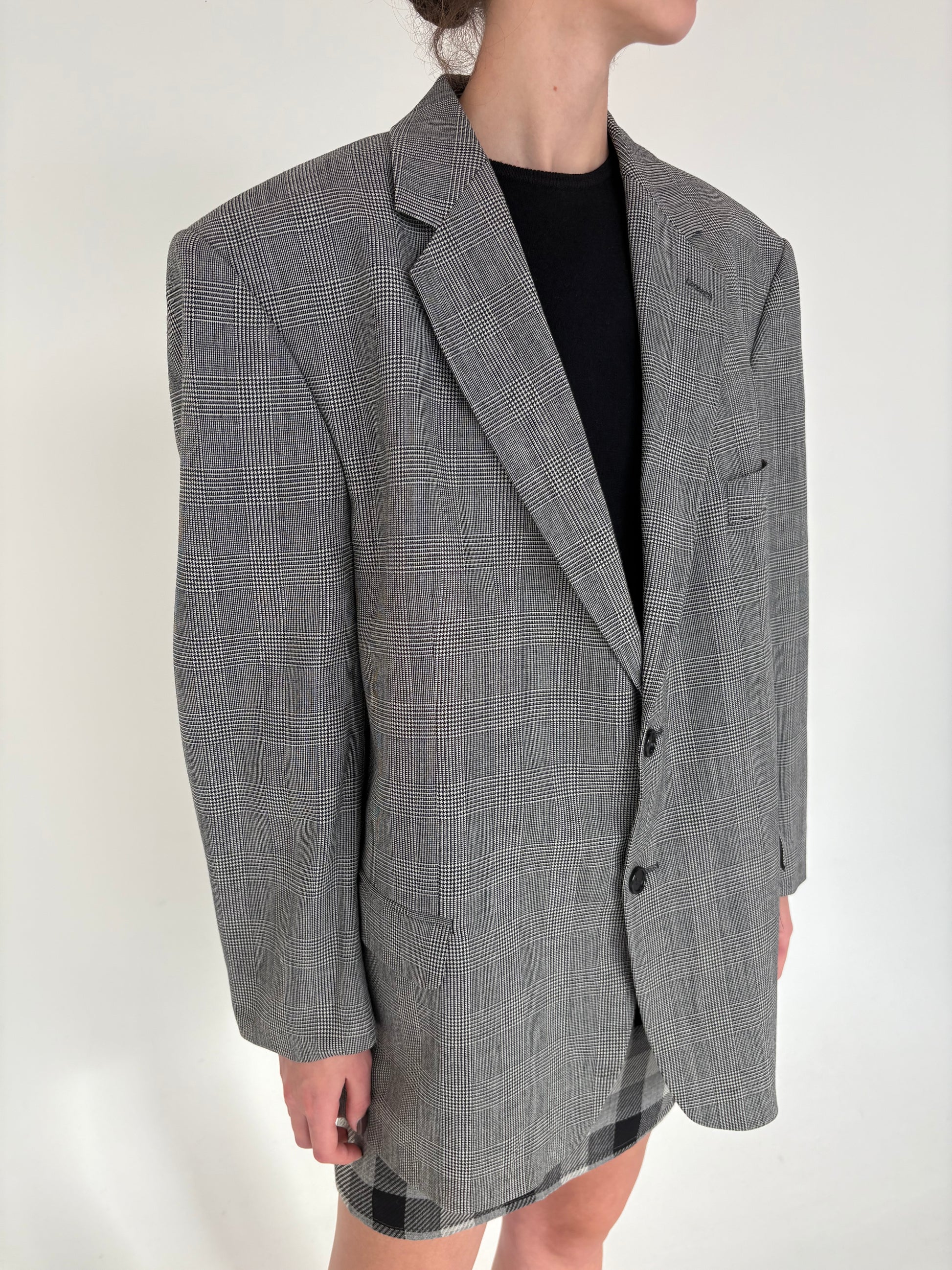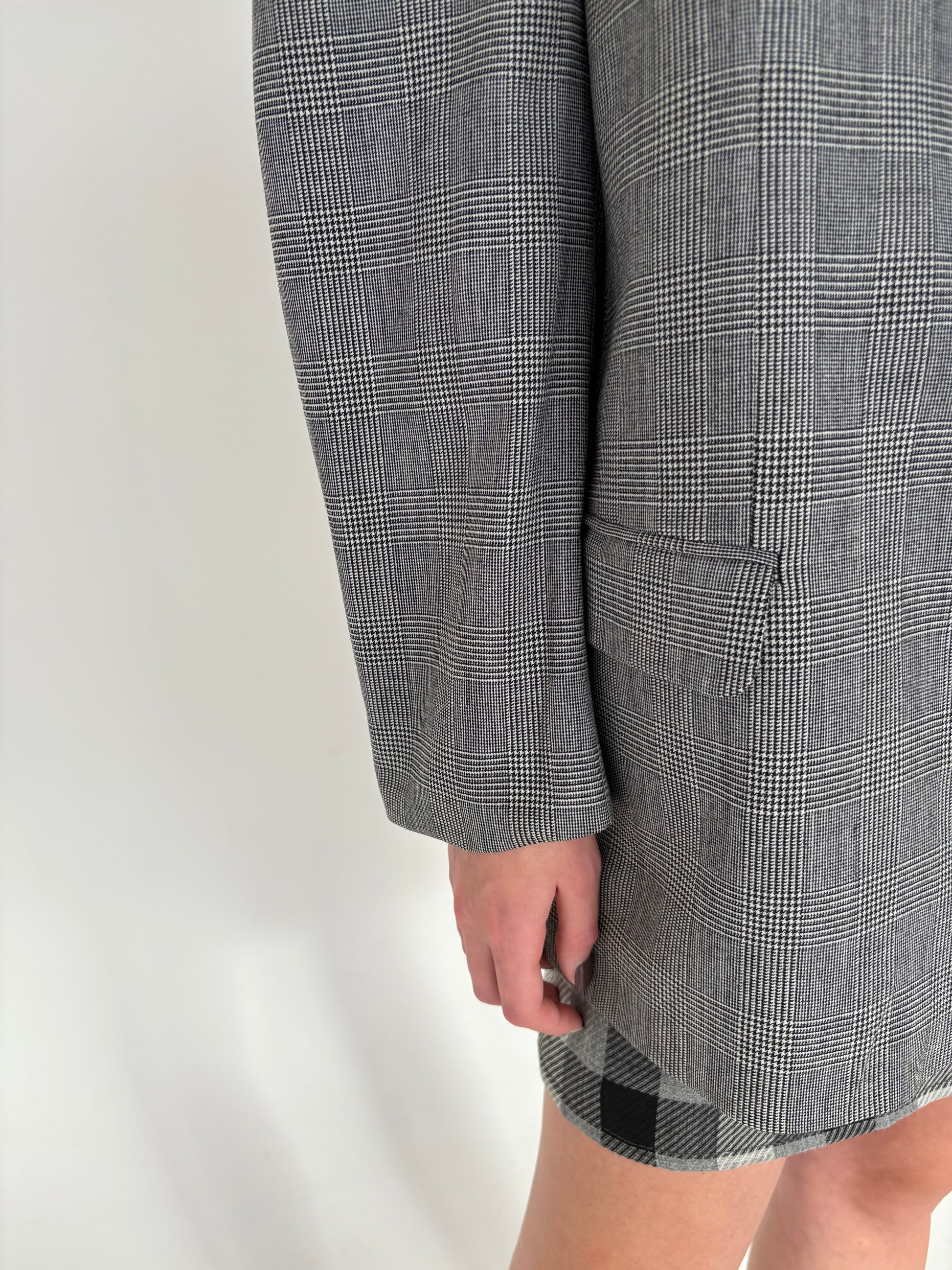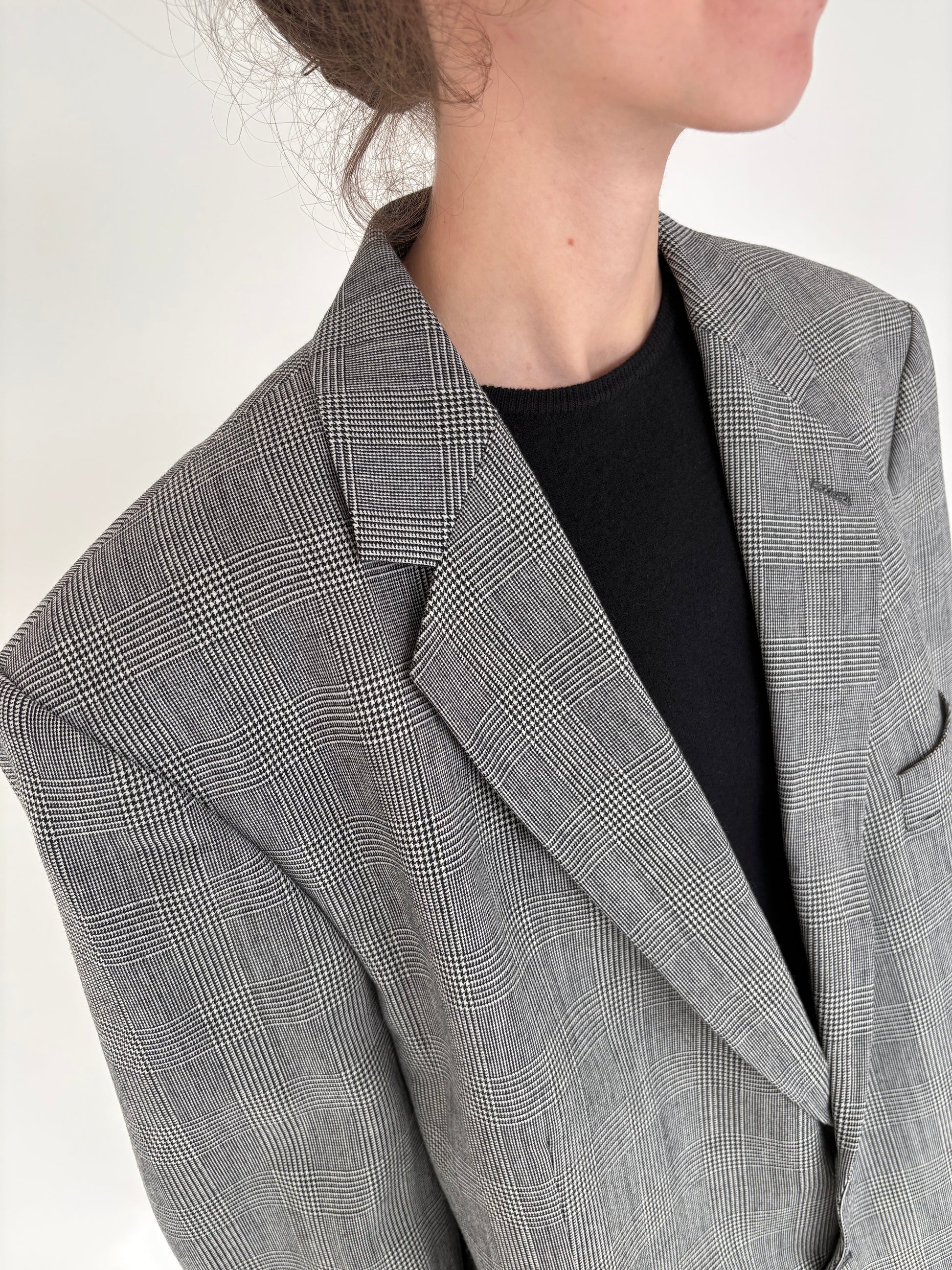 Sacou în carouri pied de coq alb negru din lana extrafina certificată