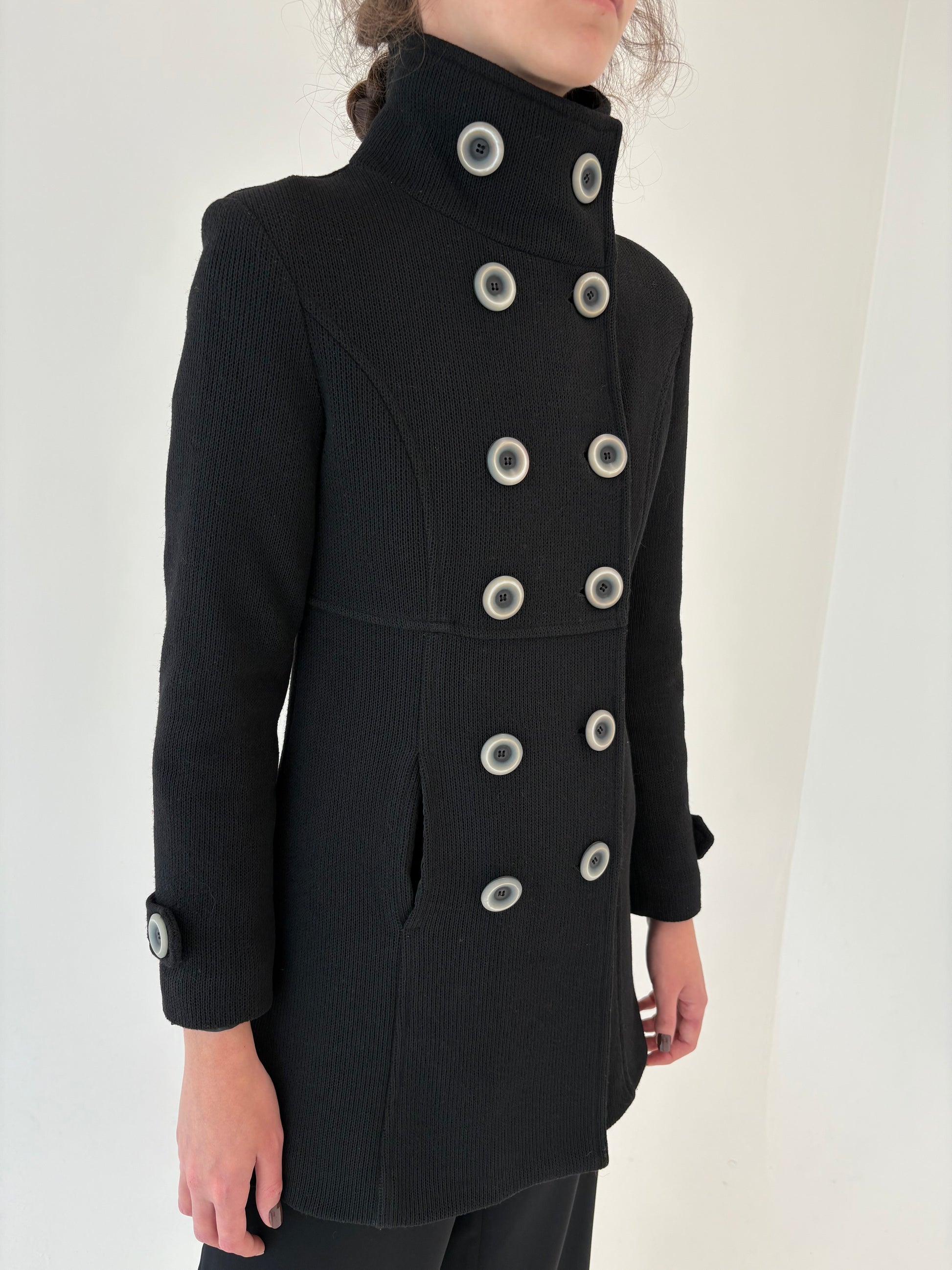 Paltonas in croi actual cu închidere dublă din jerse dens de lana căptușit
