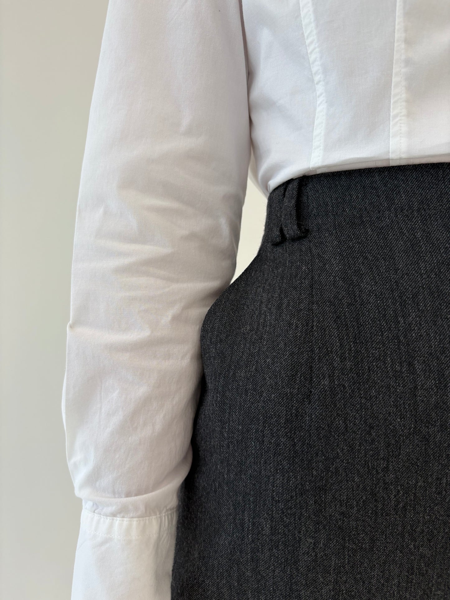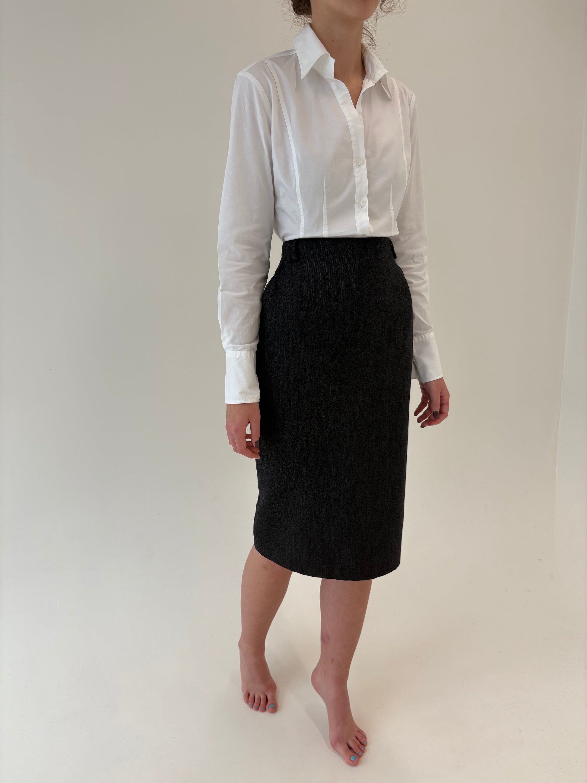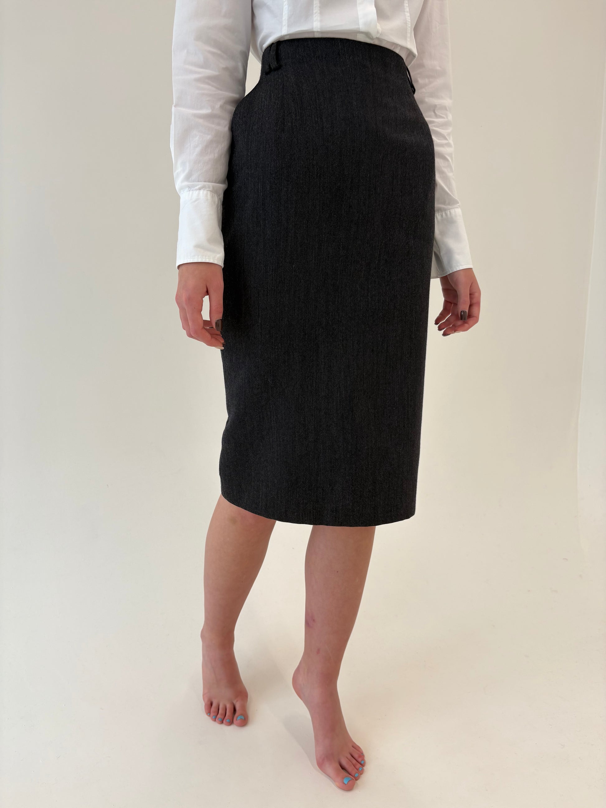 Fustă midi cu buzunare și talie ultra înaltă din lana pura certificată