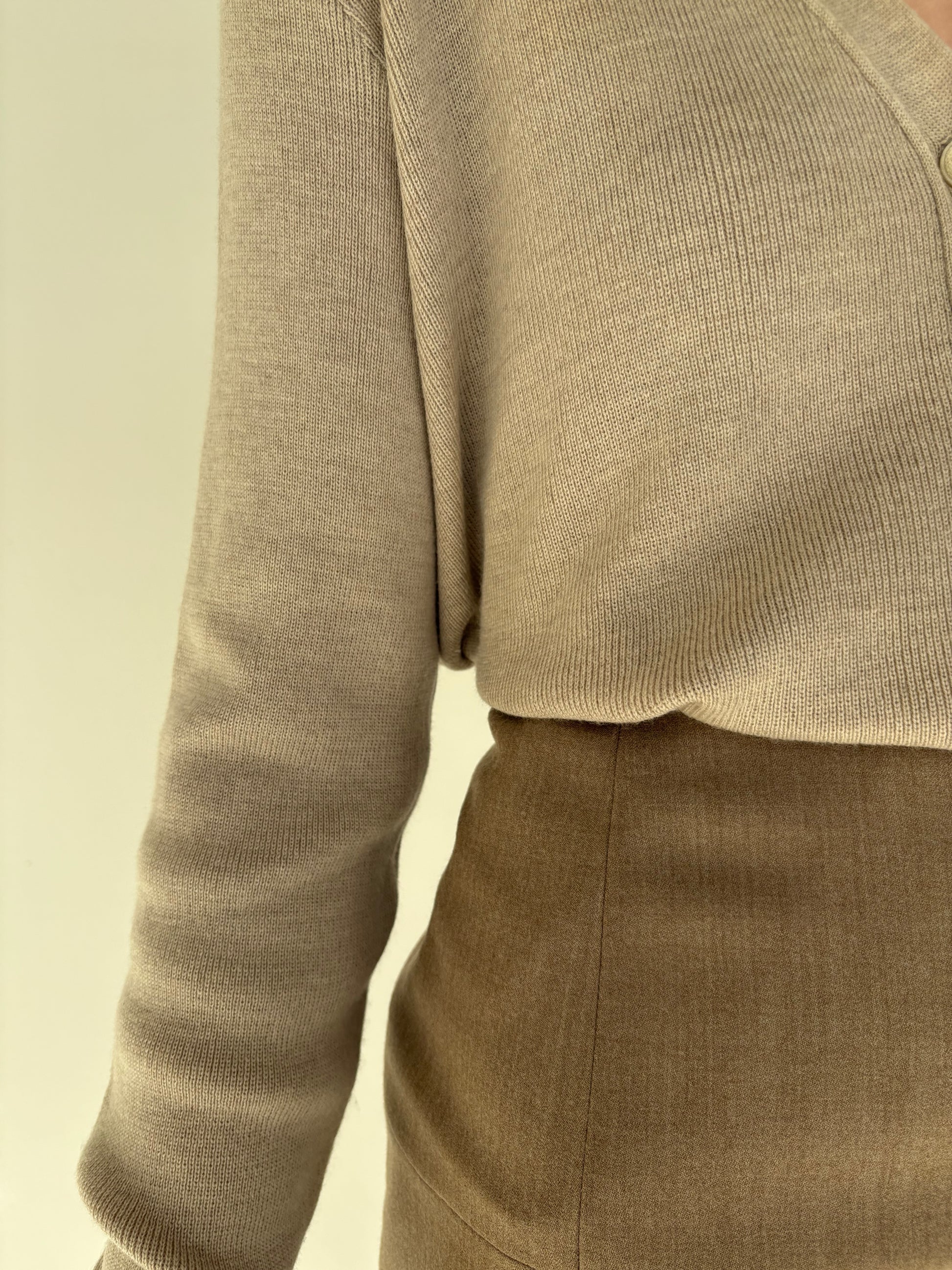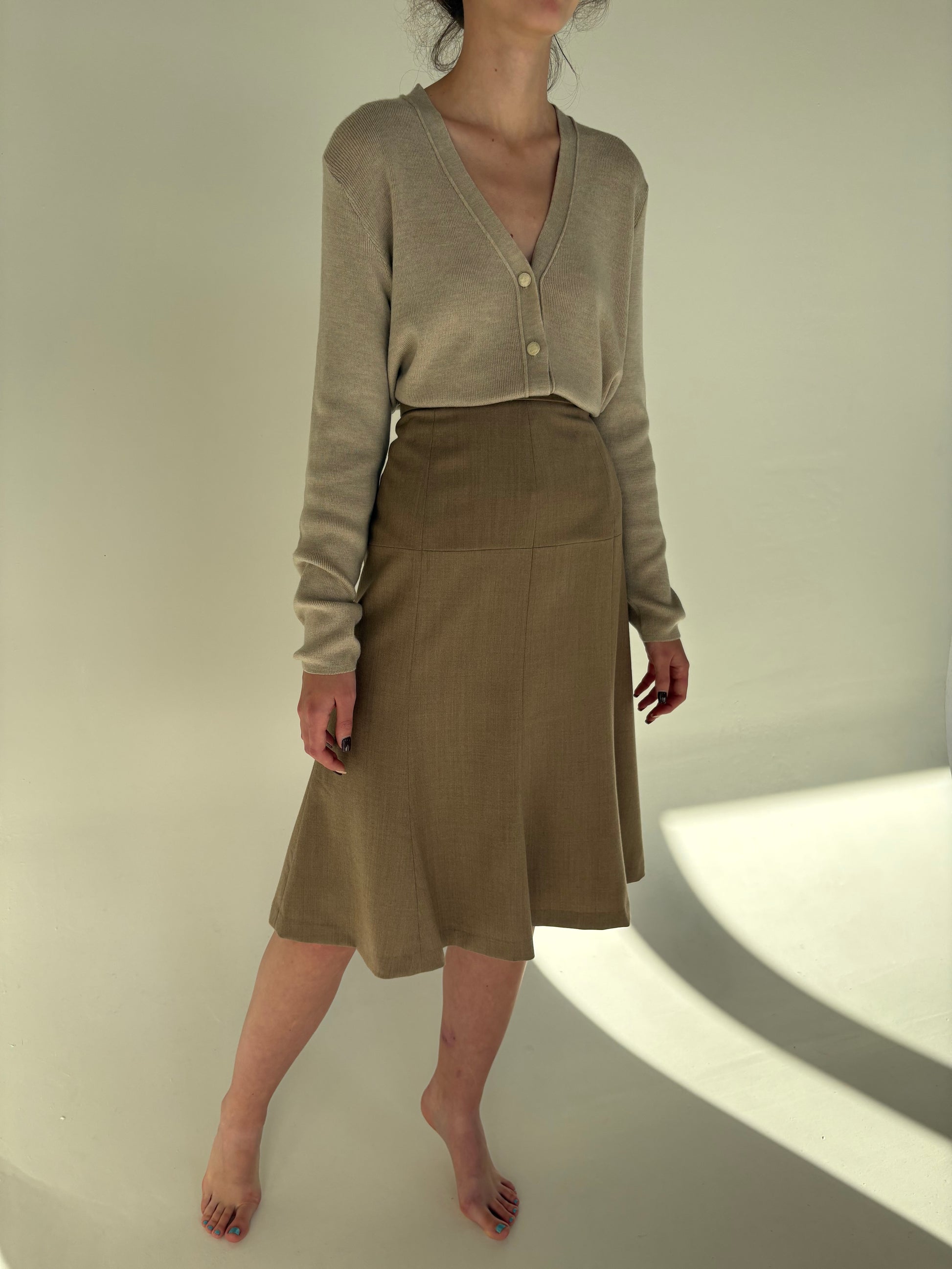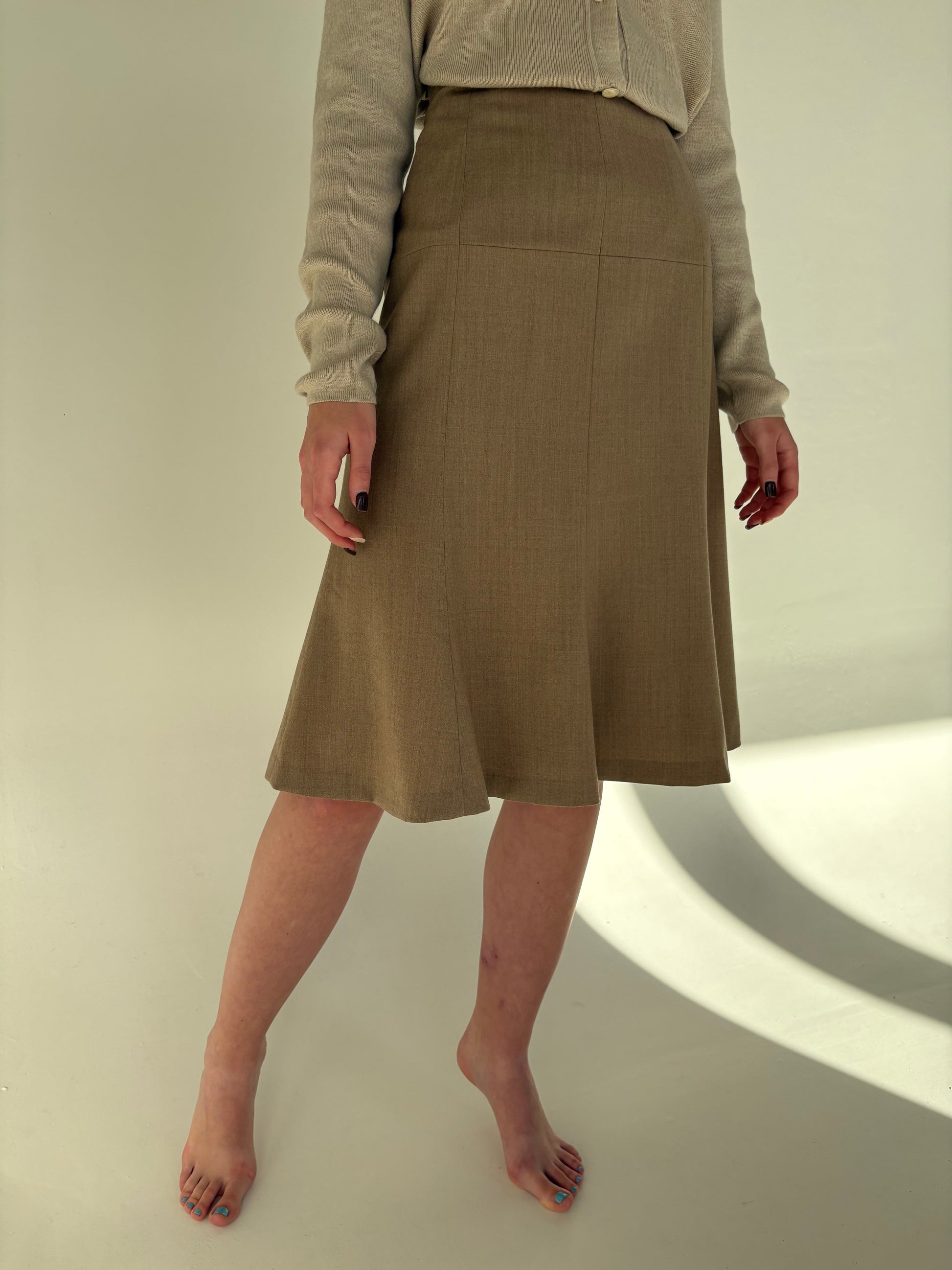 Fustă camel din lana extrafina în croi ușor A-line în clini