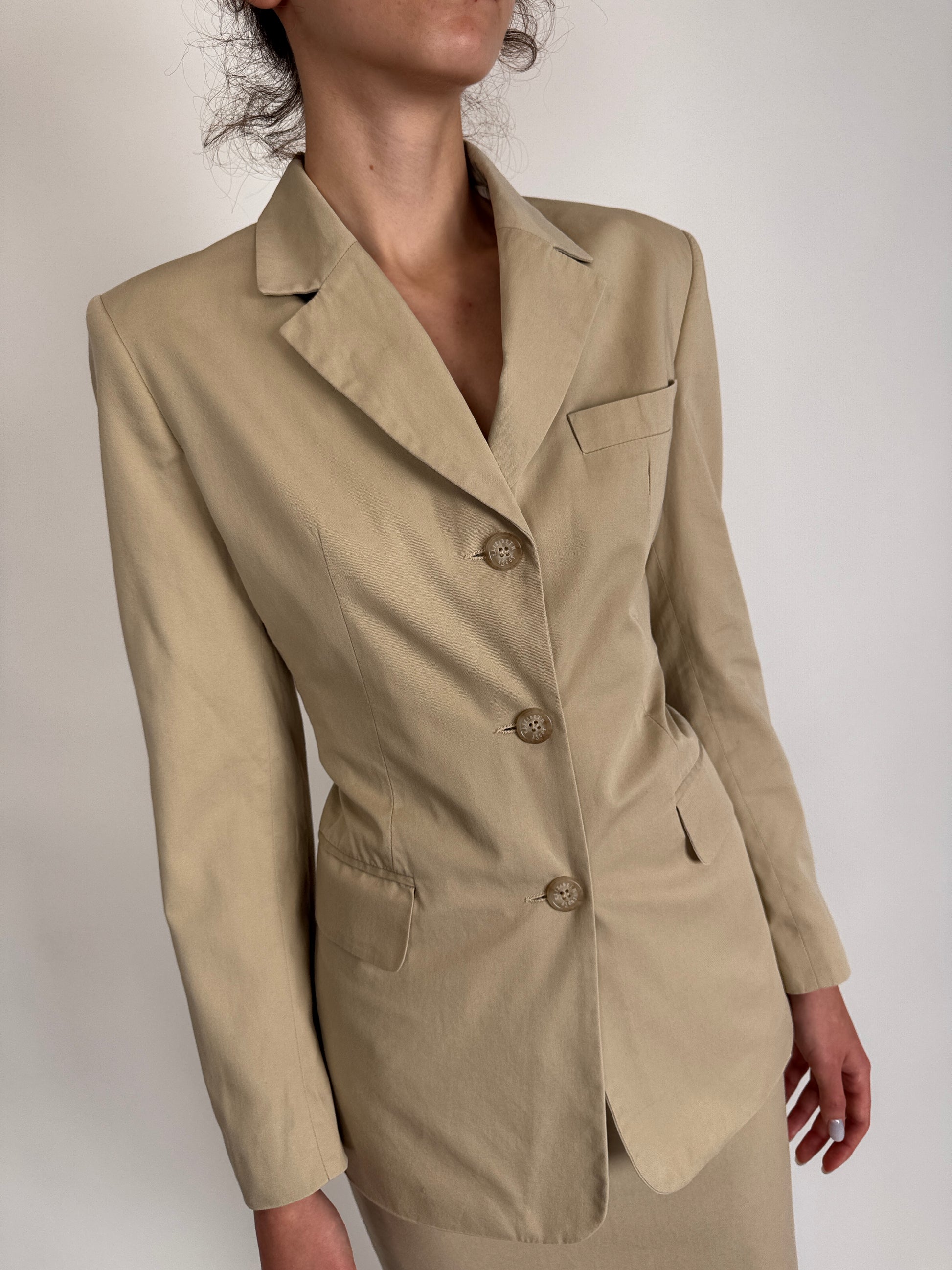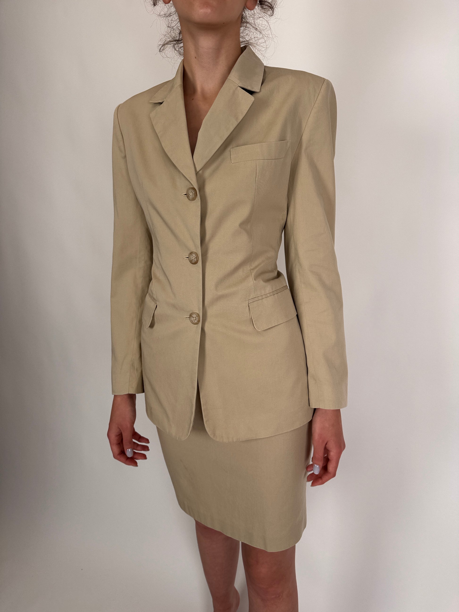 Set vintage Safari cu sacou cambrat și fusta conică cu talie ultra înaltă