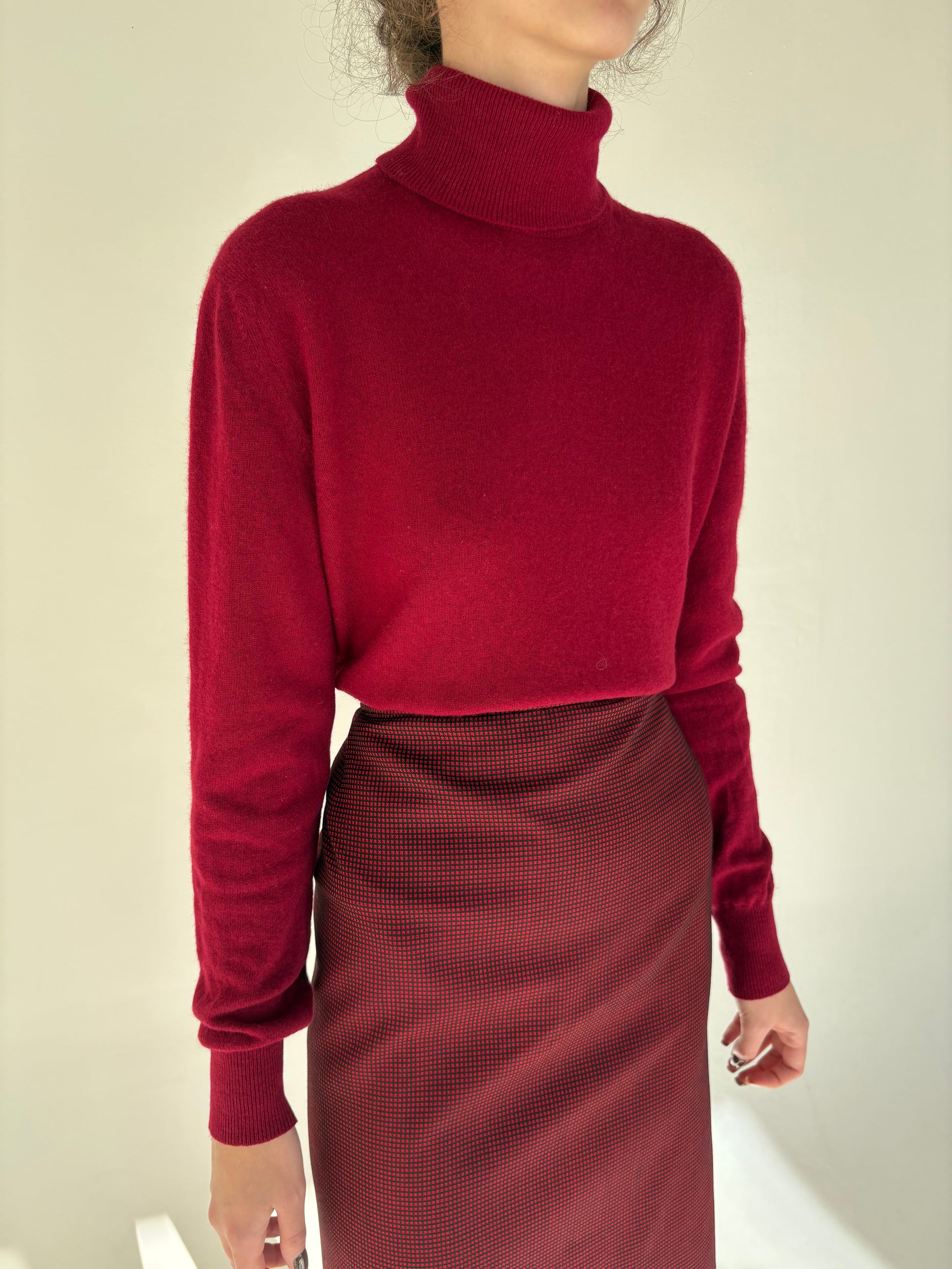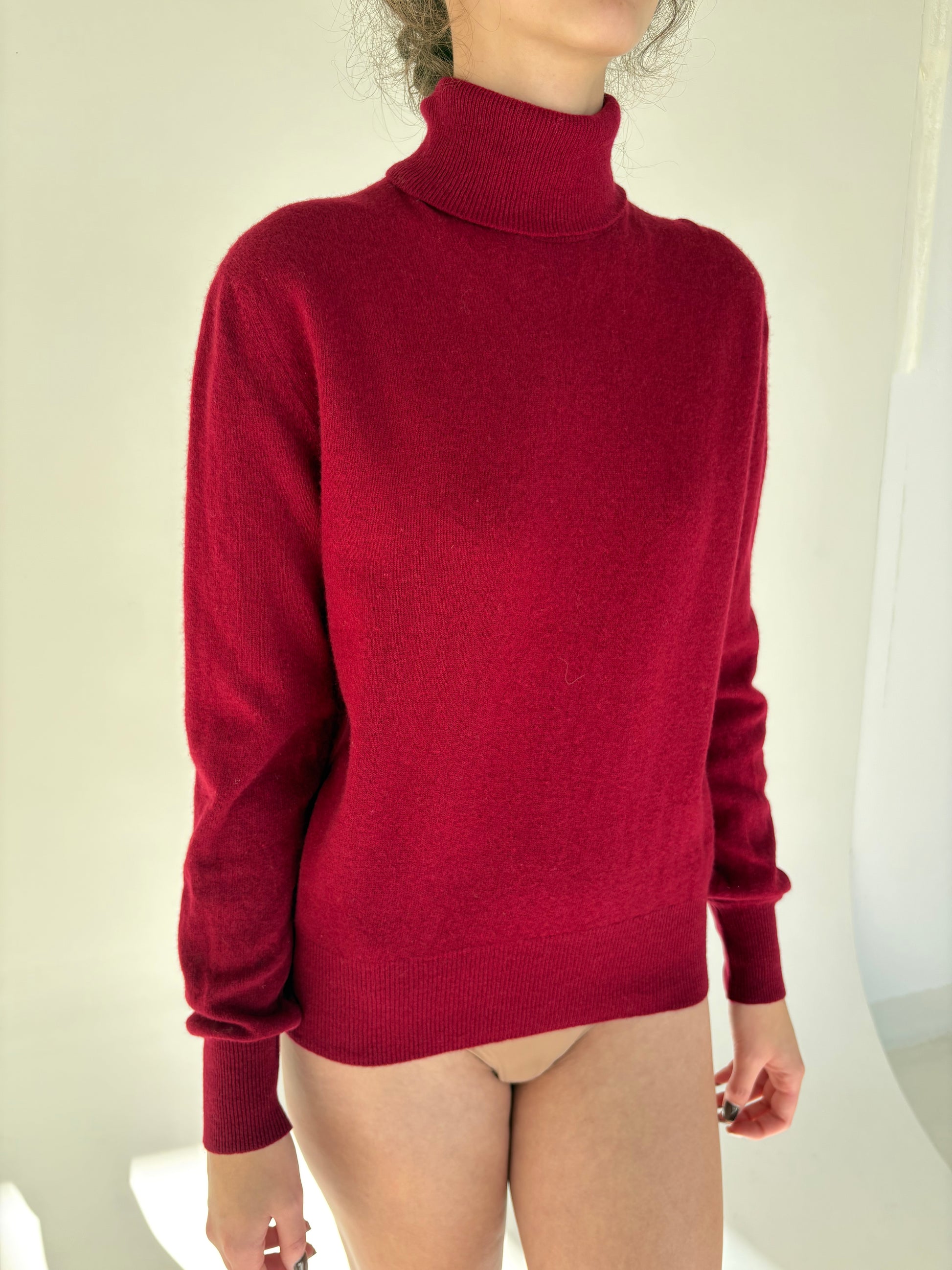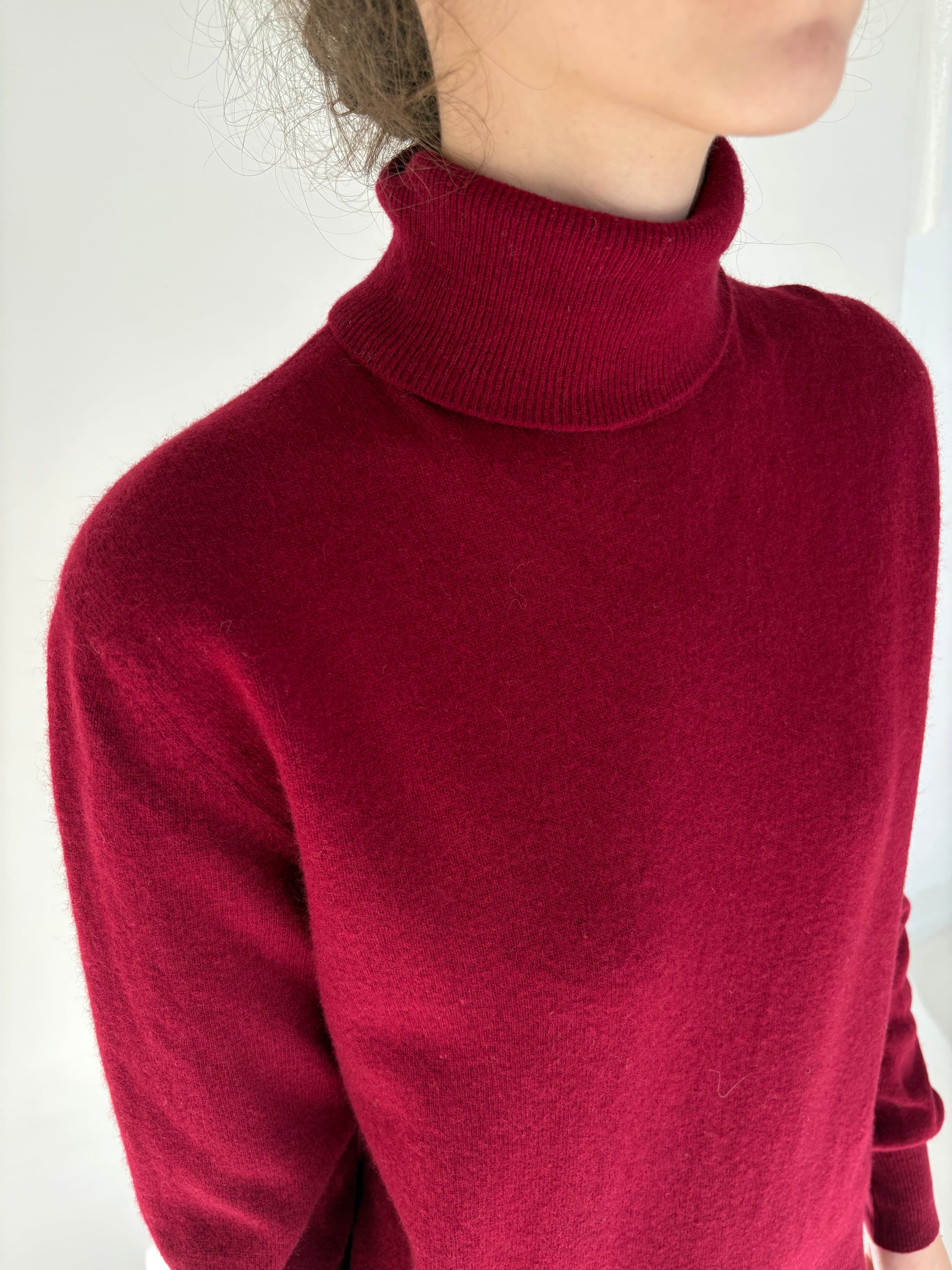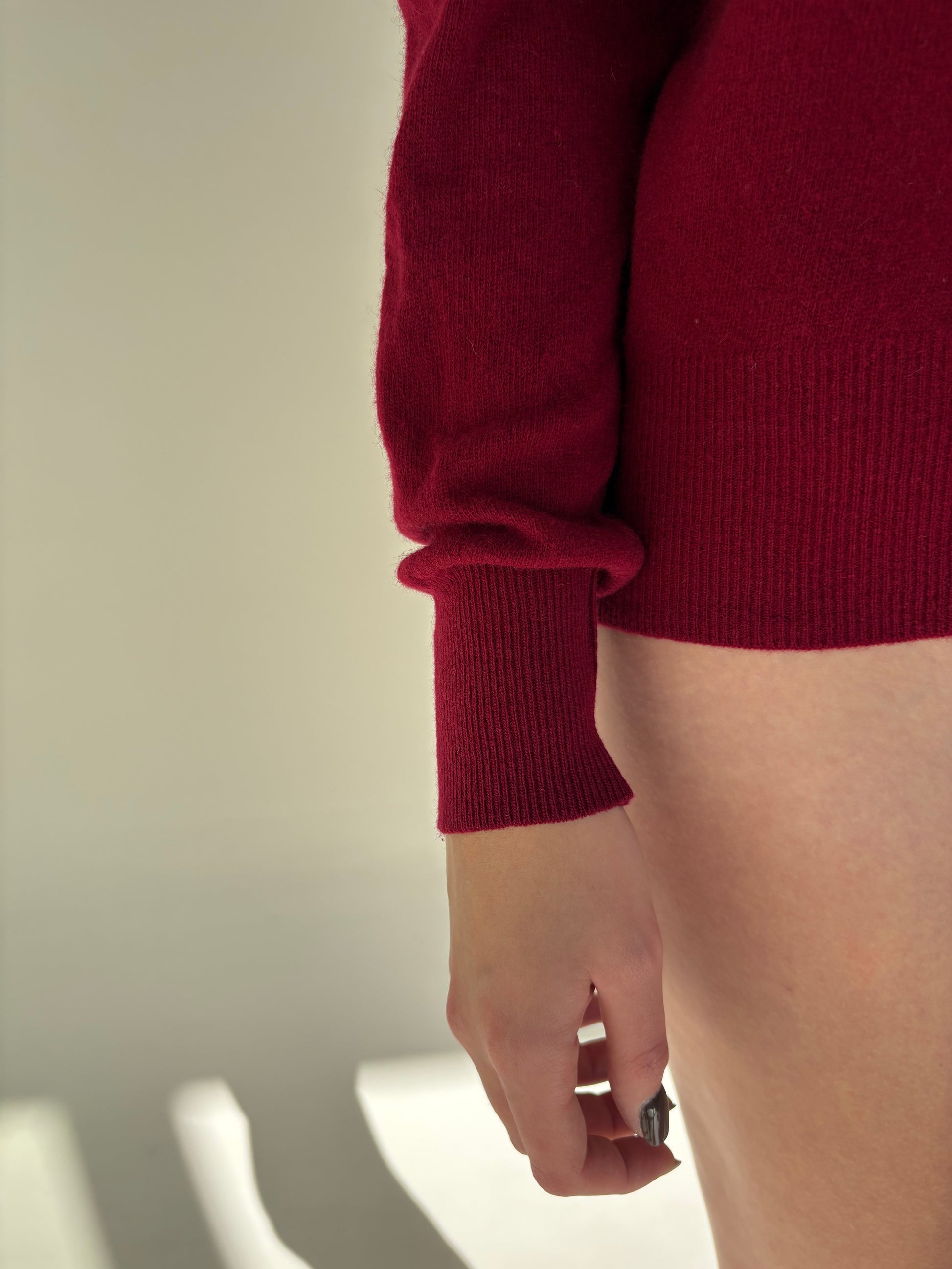 Maleta burgundy din lana extrafina de gramaj mare cu manșete înalte