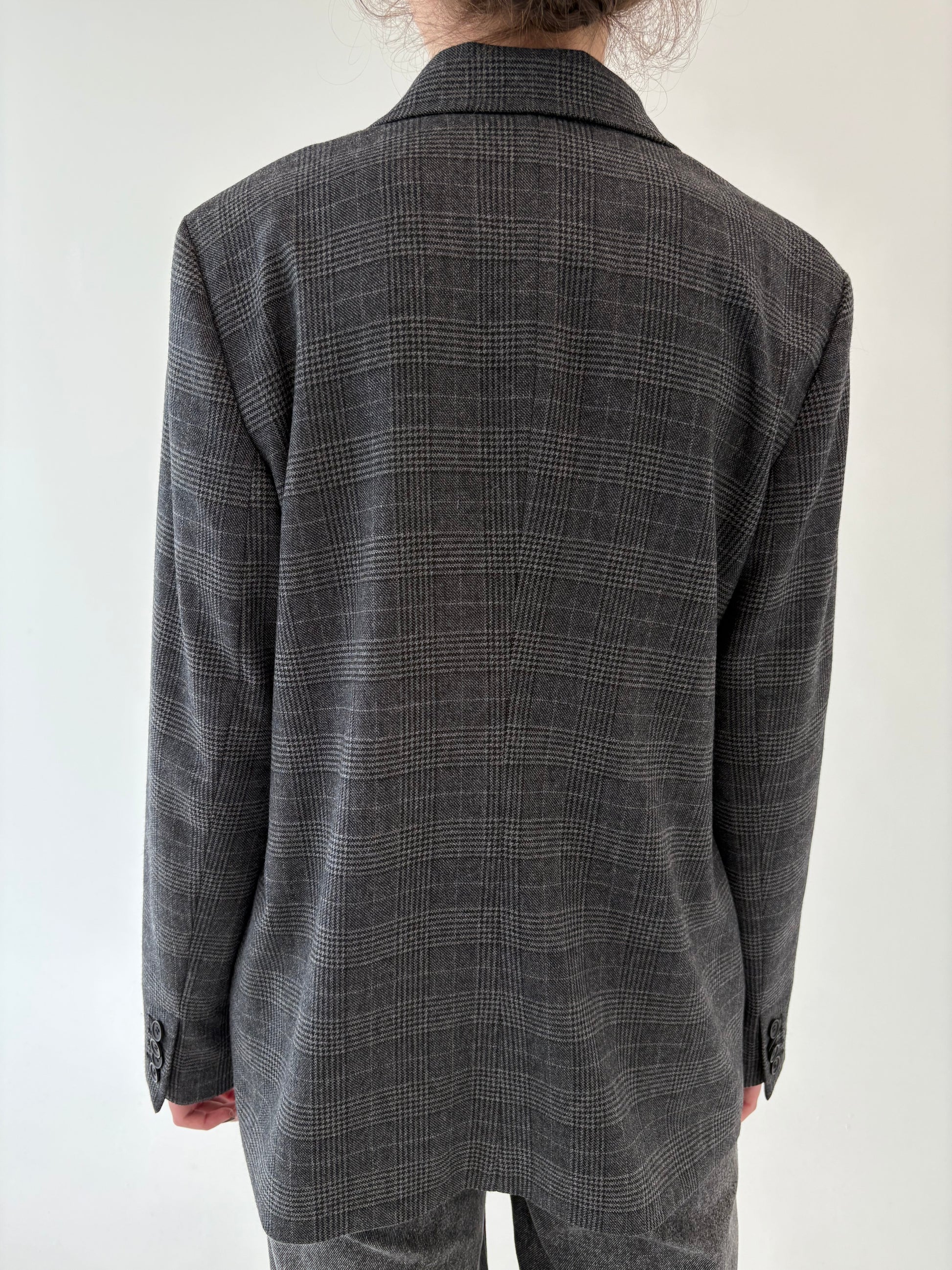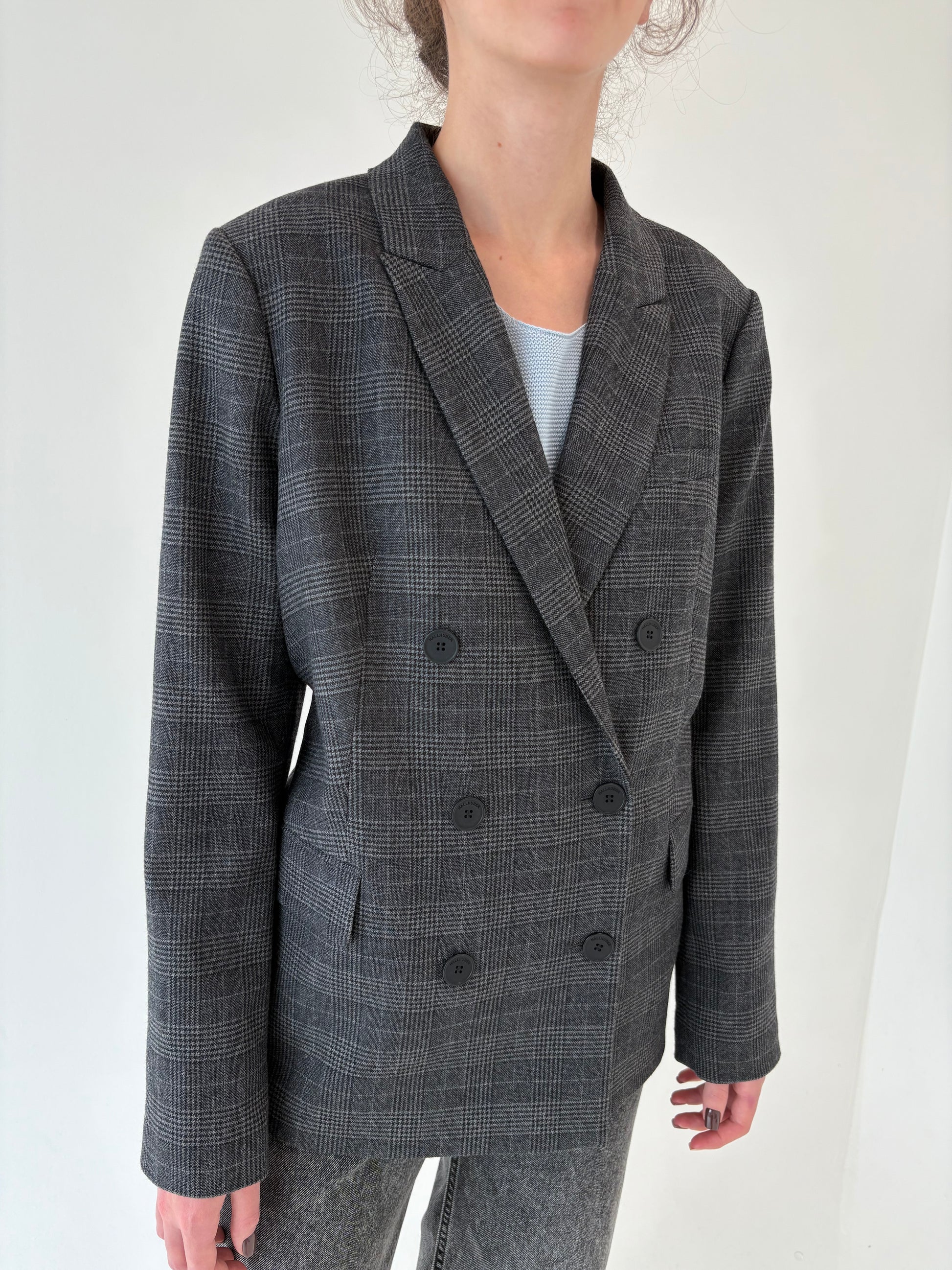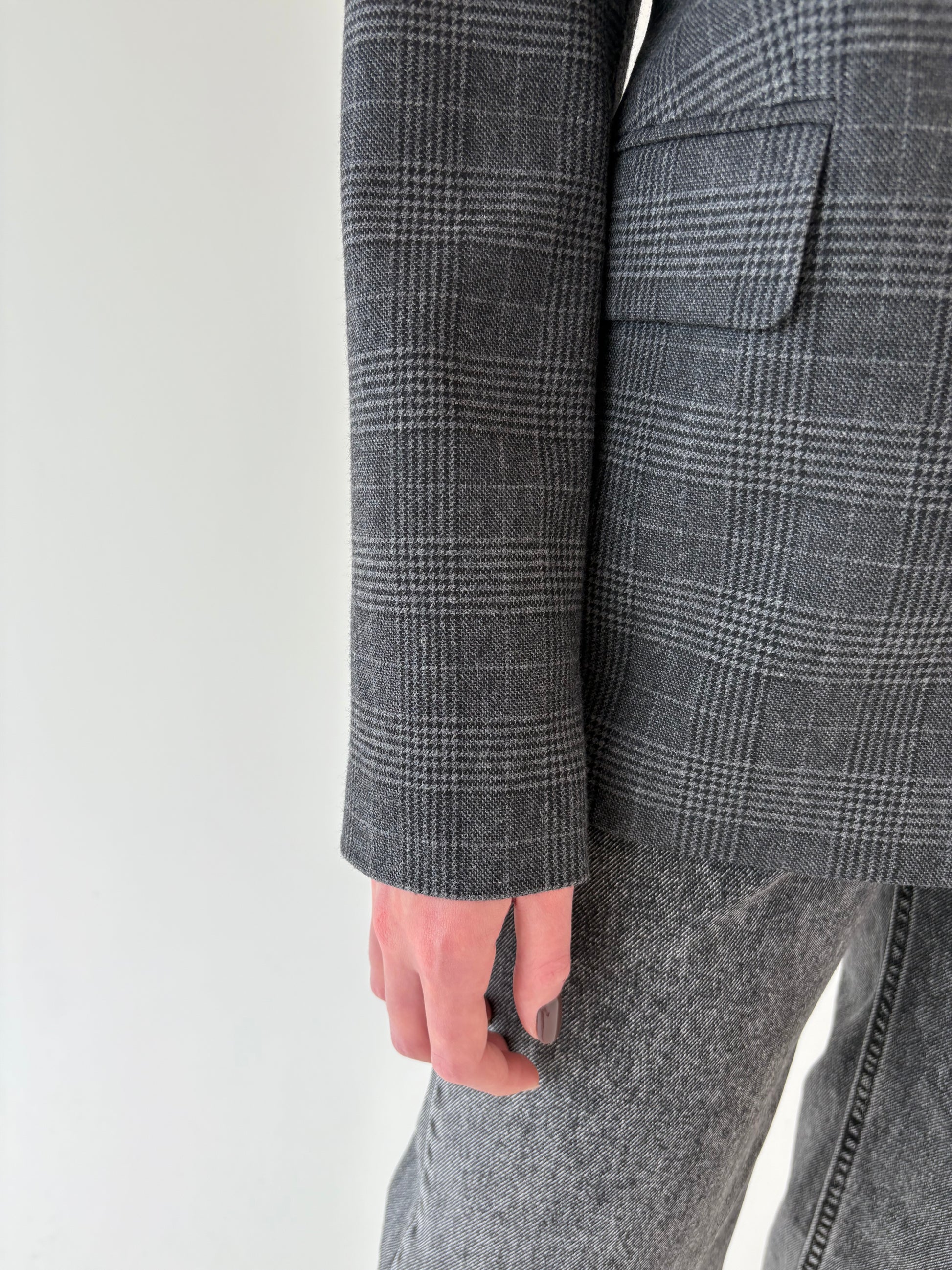 Sacou din lana extrafina în carouri fine și nuanțe de gri cu închidere dublă
