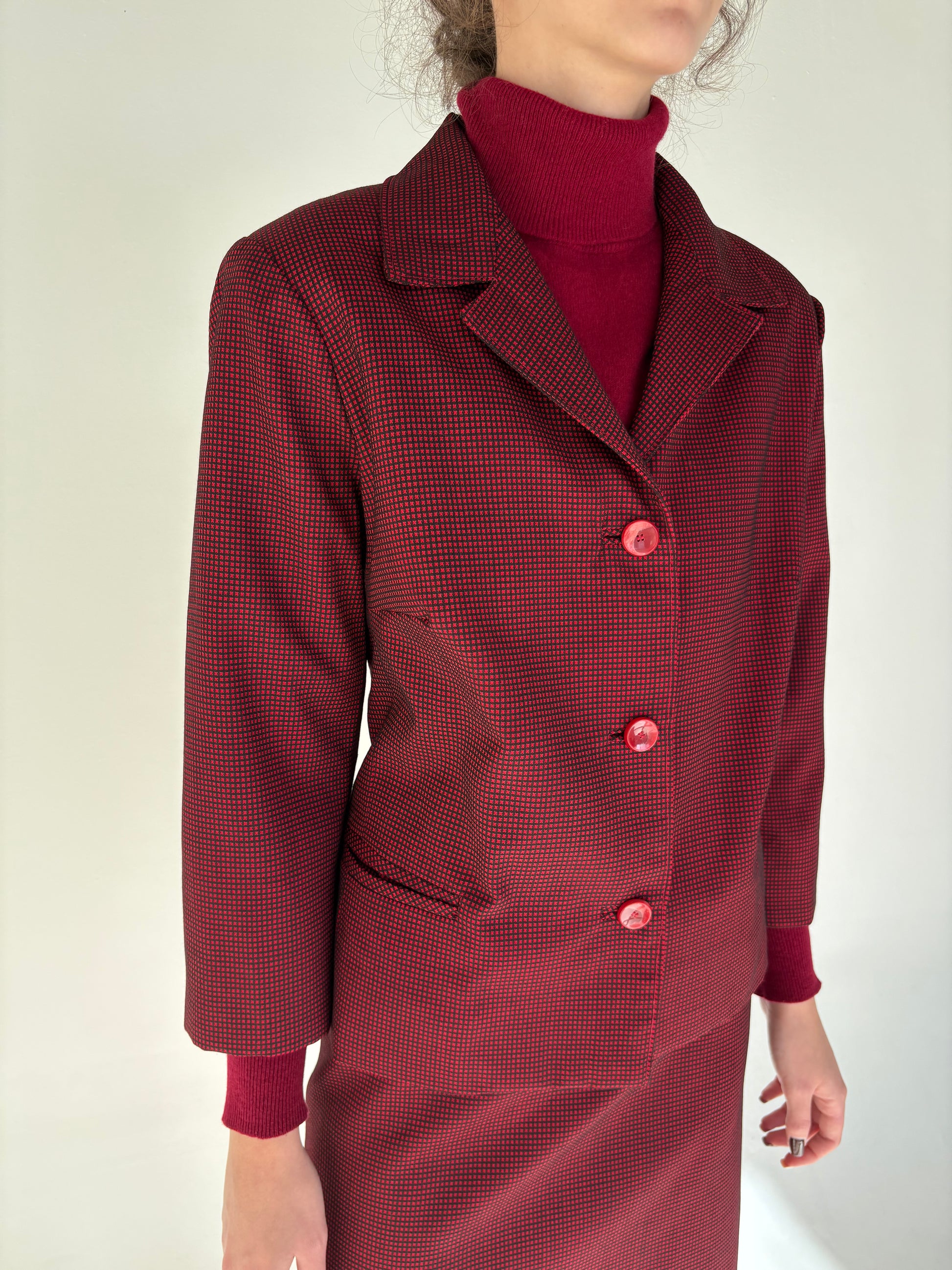 Deux piece burgundy din lana extrafina in croi de ani 60
