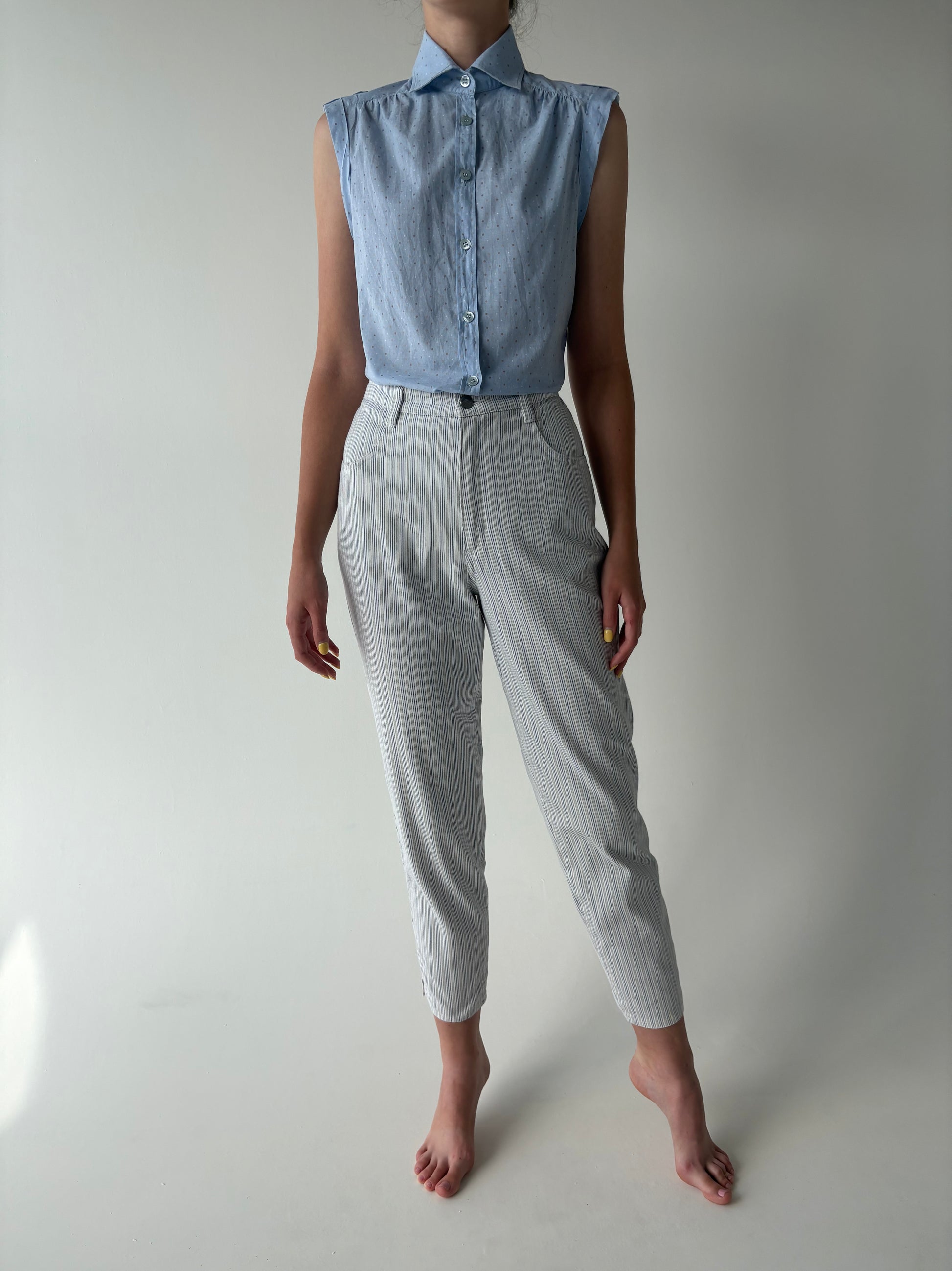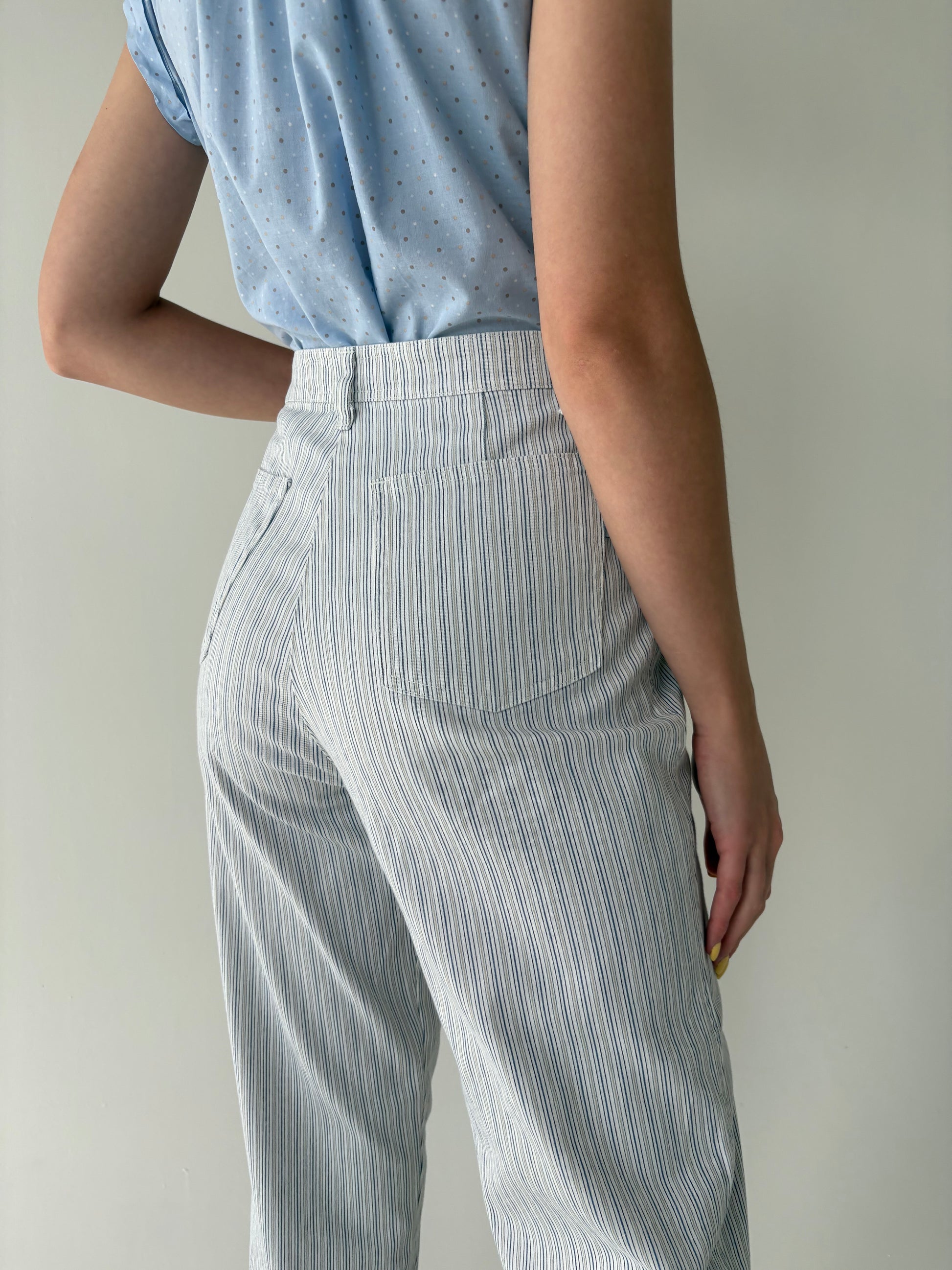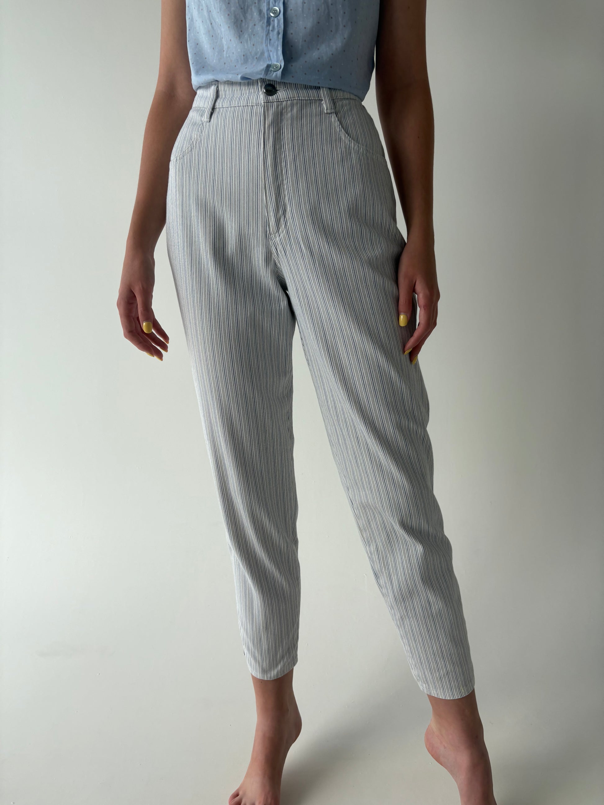 Jeans vintage premium mom fit de vară cu dungi fine verticale