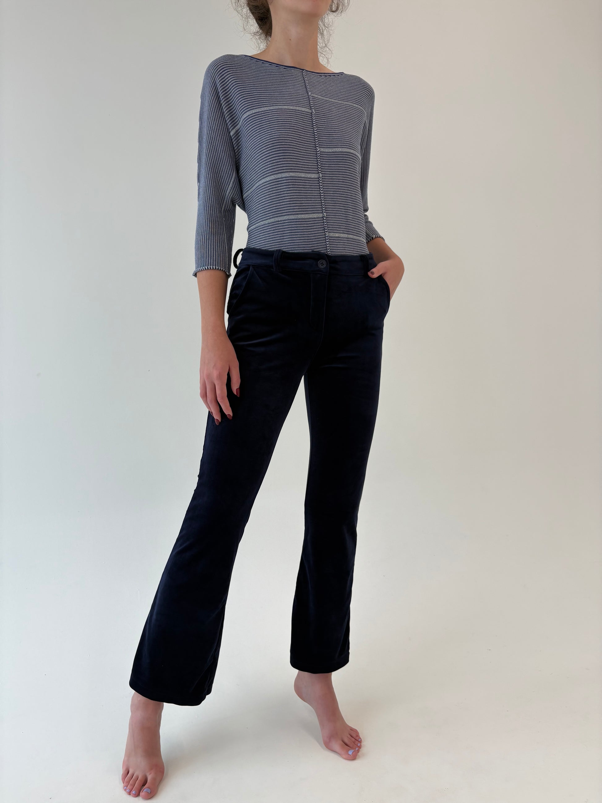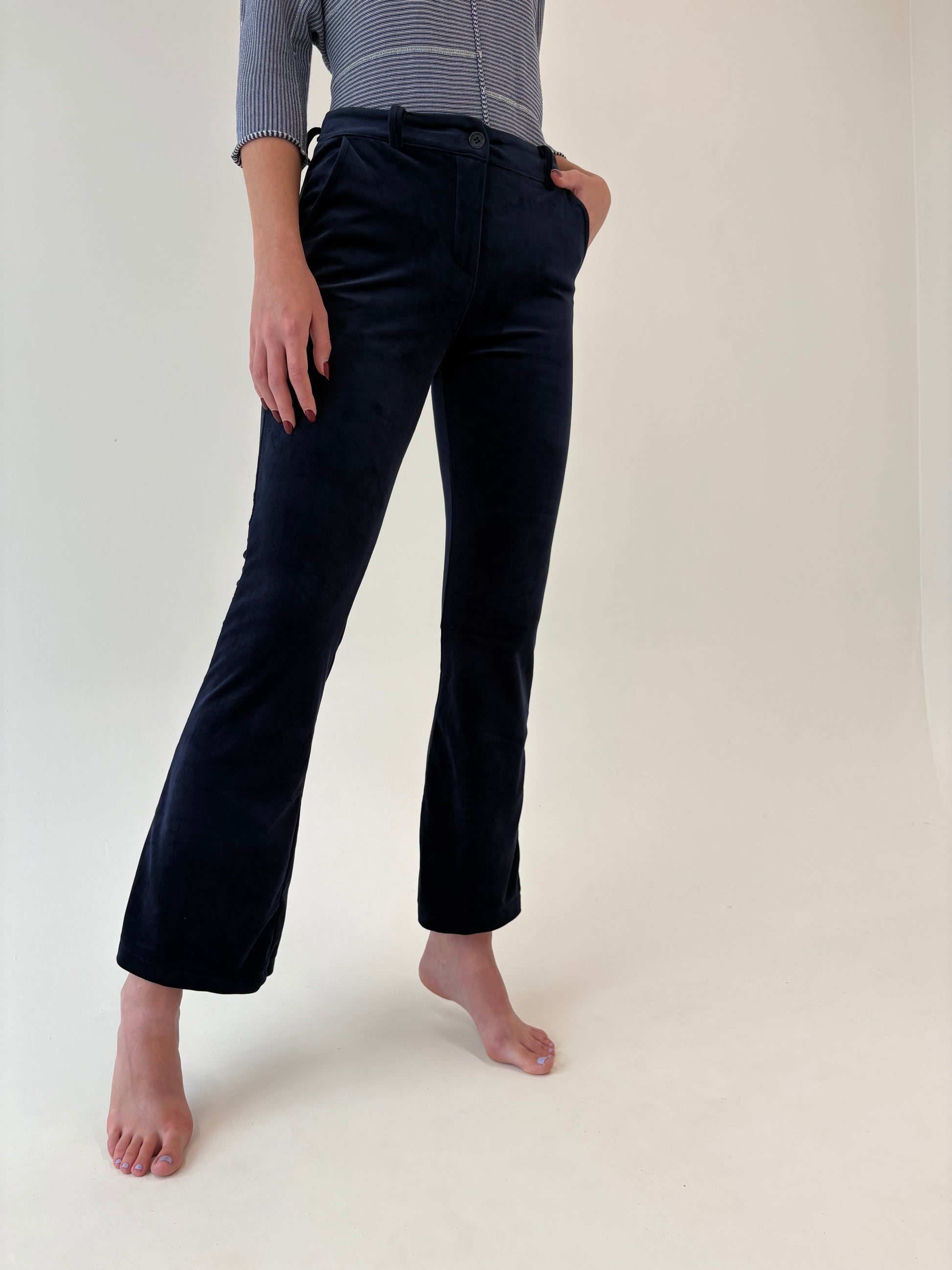 Pantaloni italienești albastru cerneală din catifea strech ușor evazați