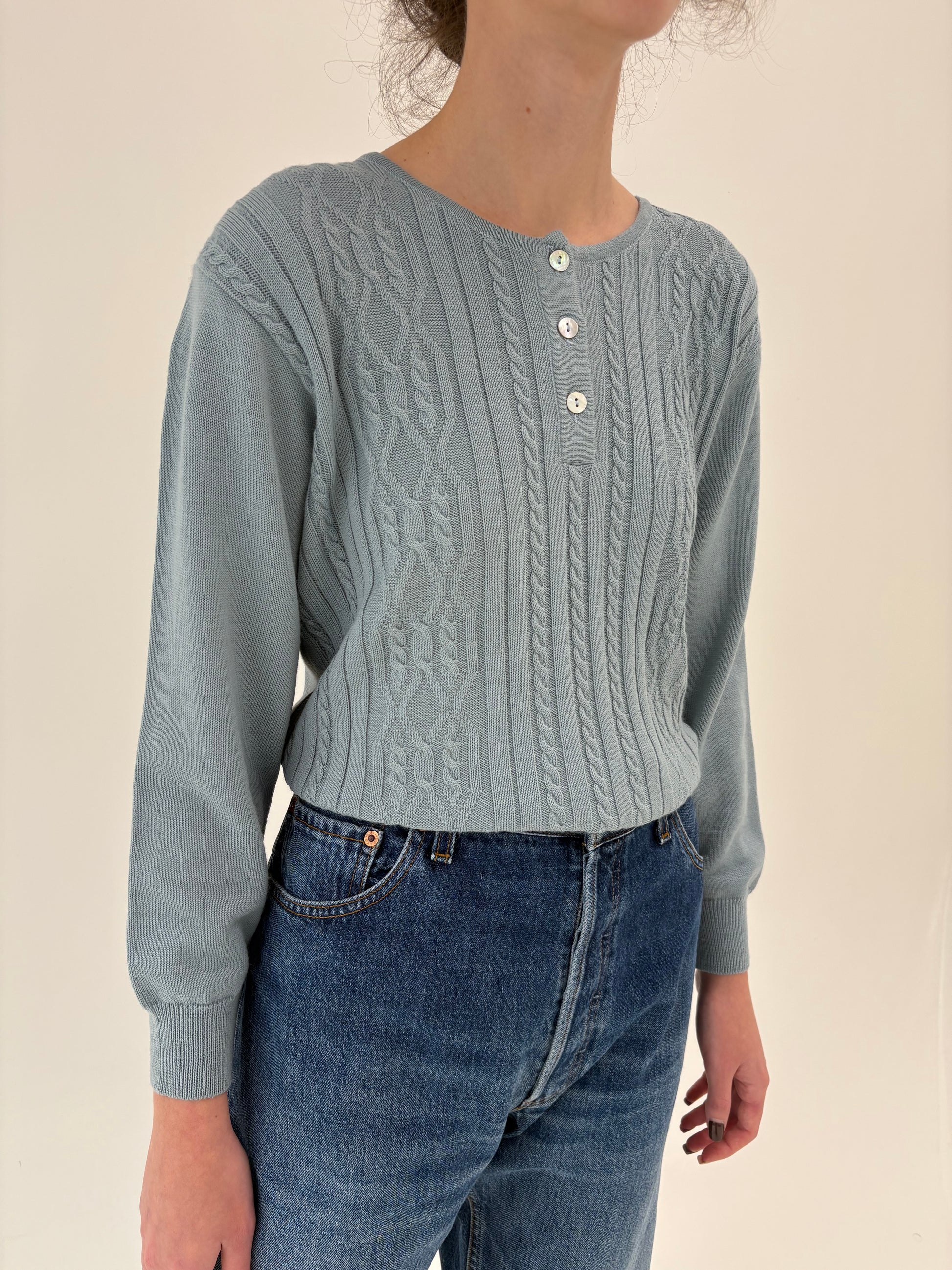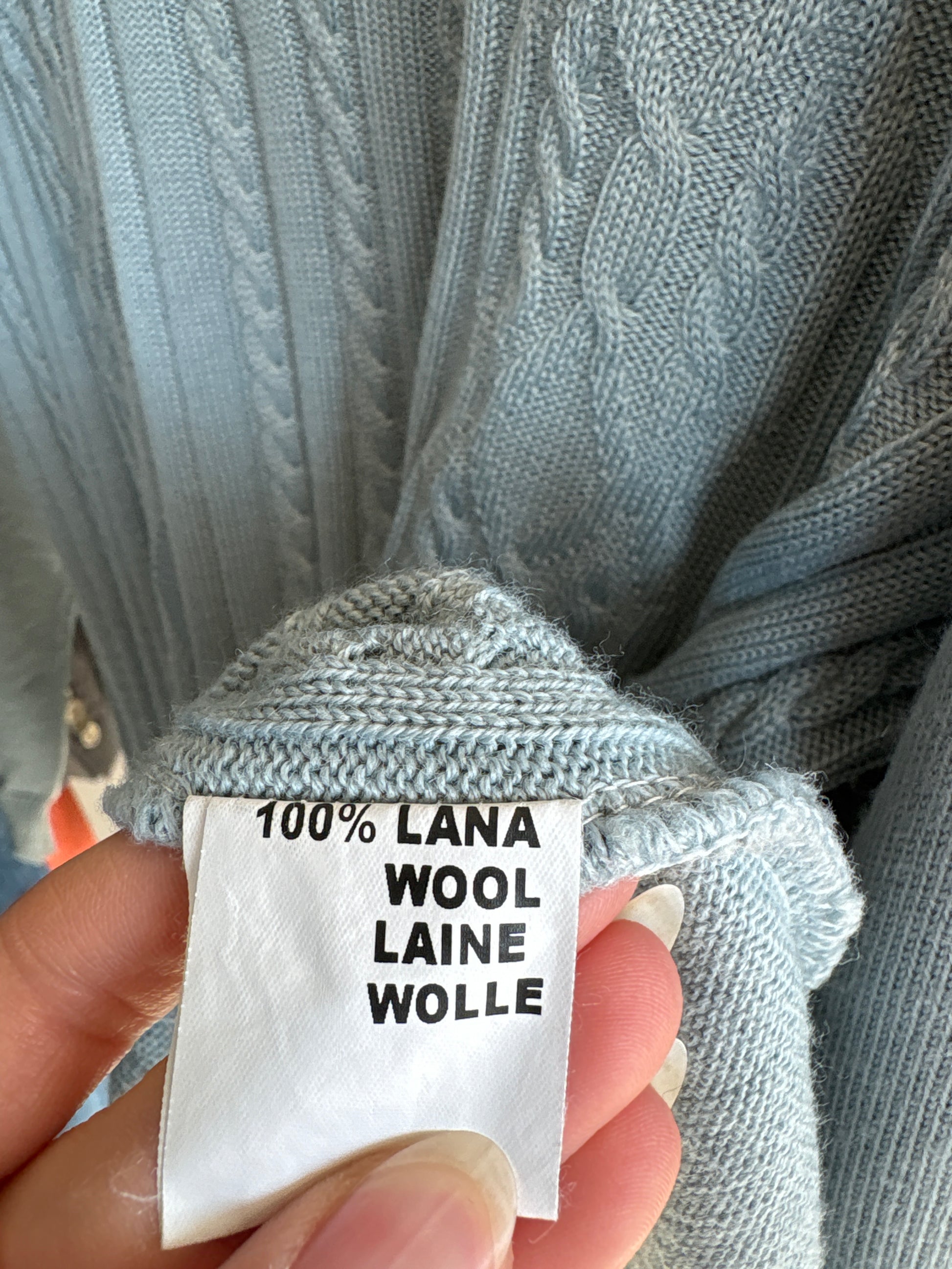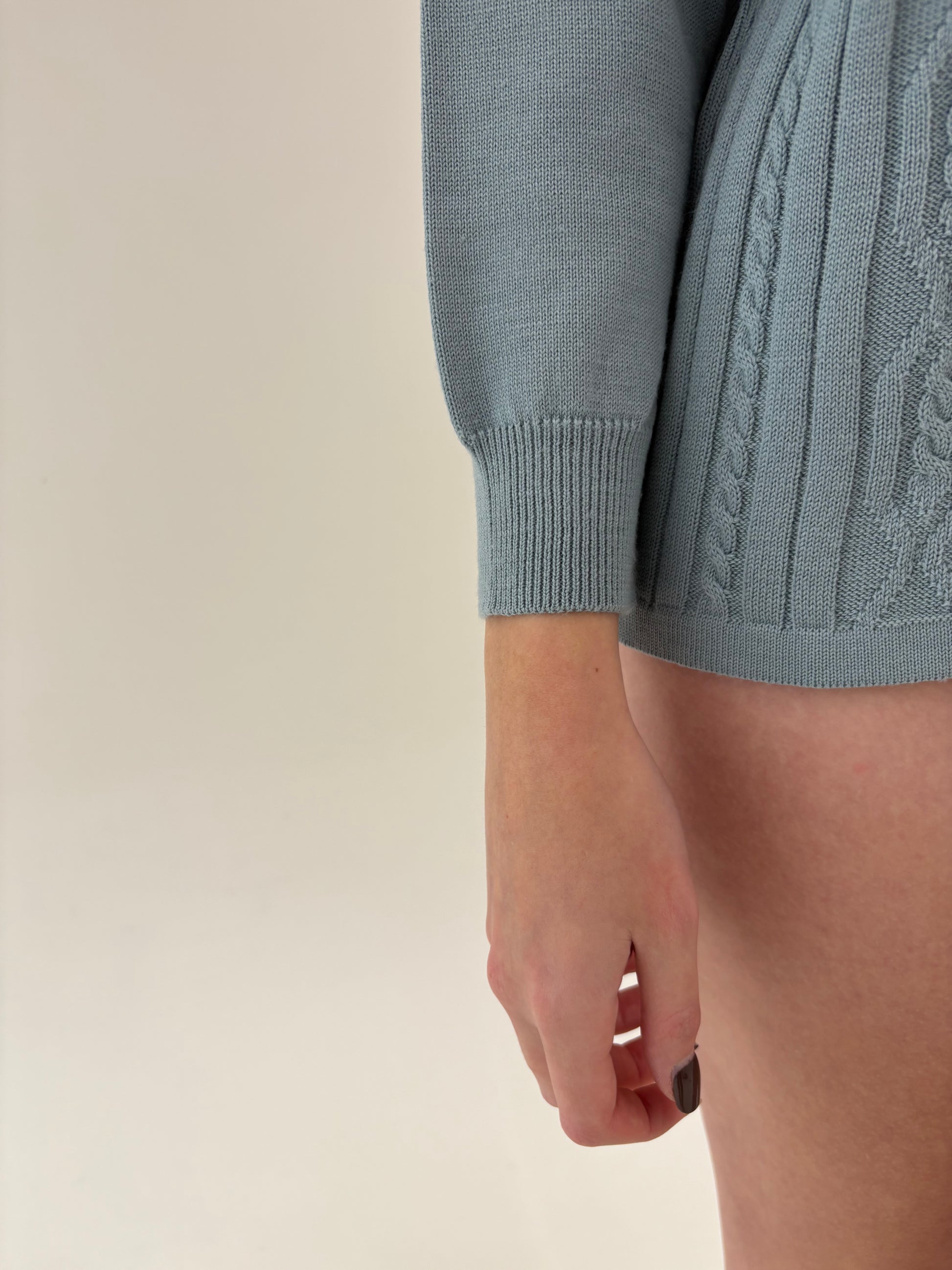 Pulover baby Blue cu torsade din lana merino extrafina de gramaj mare