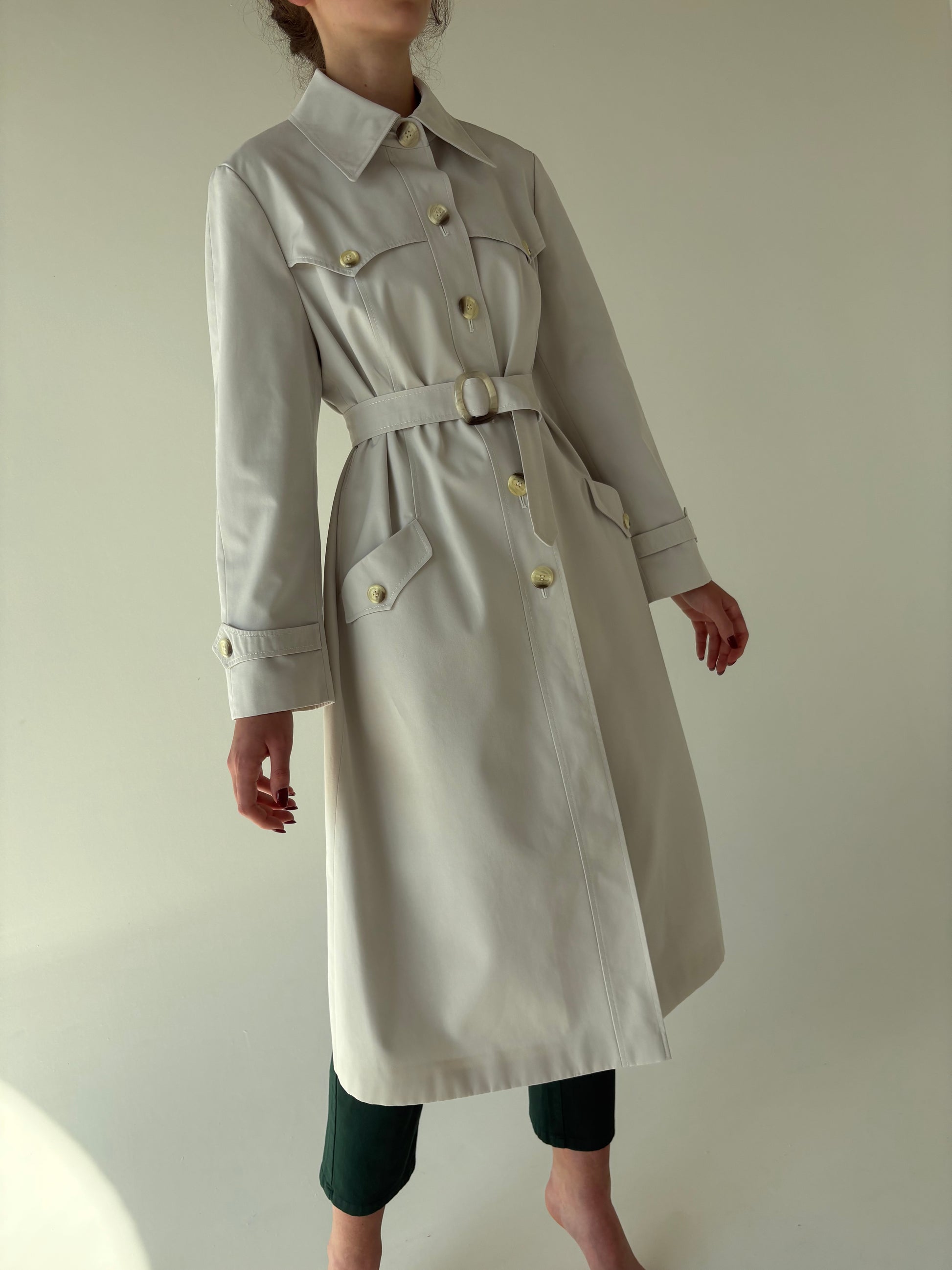 Trench vintage premium impermeabil off white cu talie marcată reglabilă