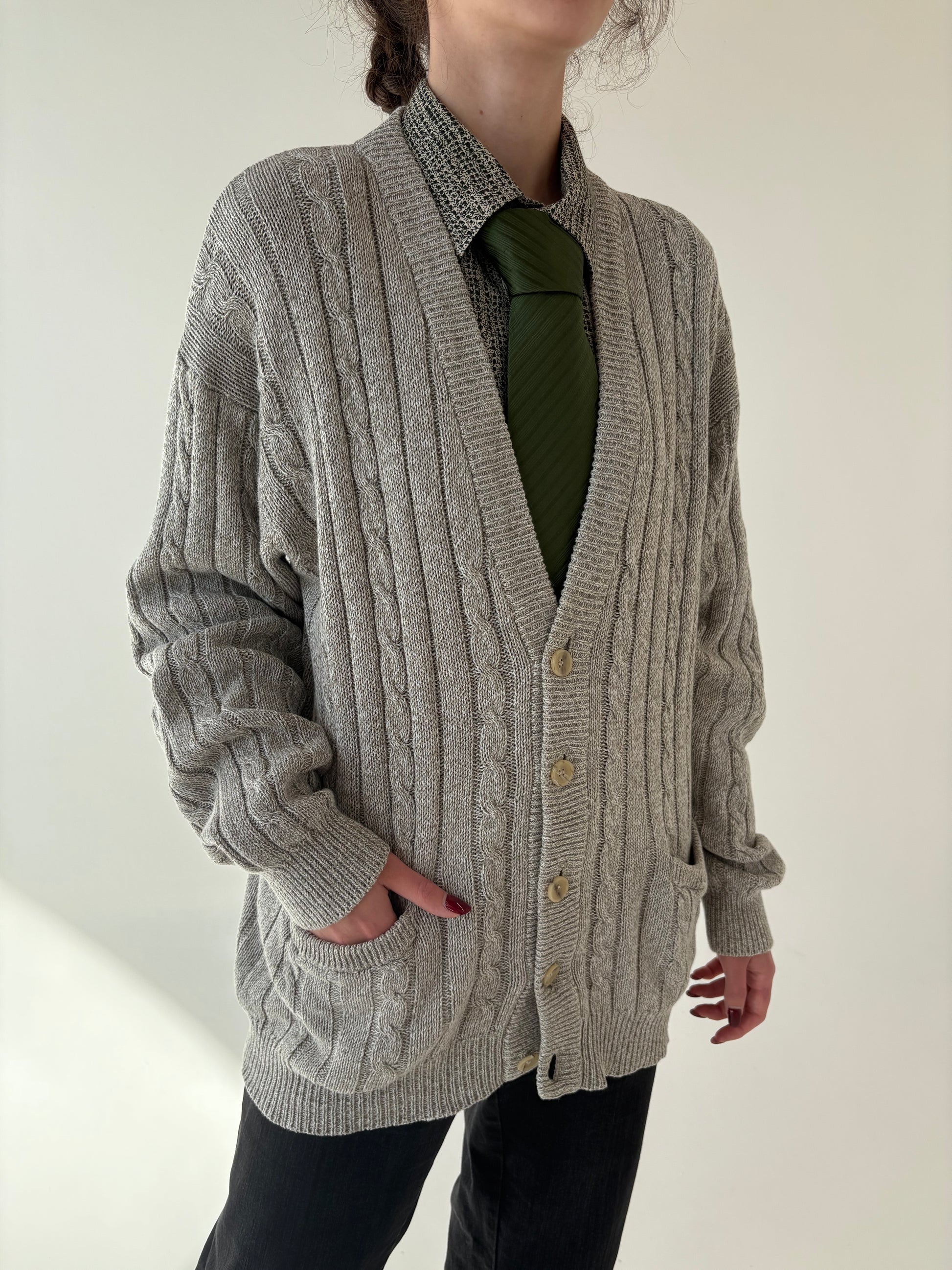 Cardigan vintage de gramaj mare cu torsade din bumbac greu