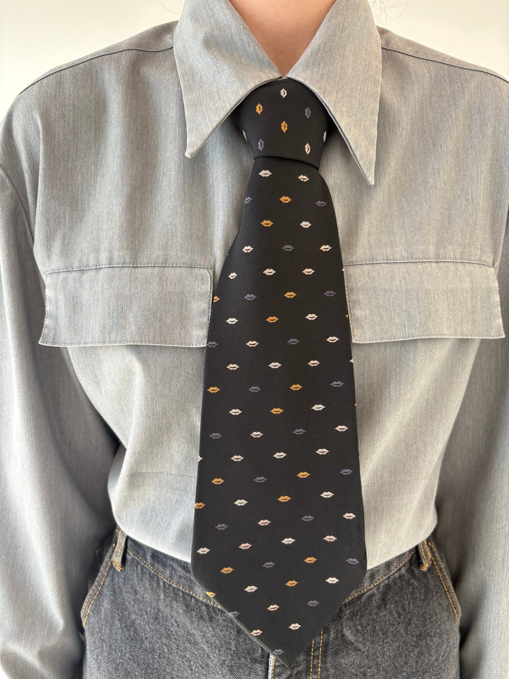 Cravata neagră italiana nouă cu eticheta din mătase naturală