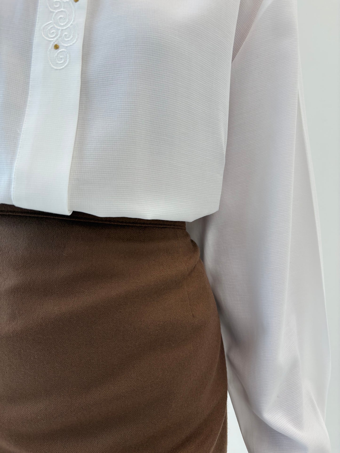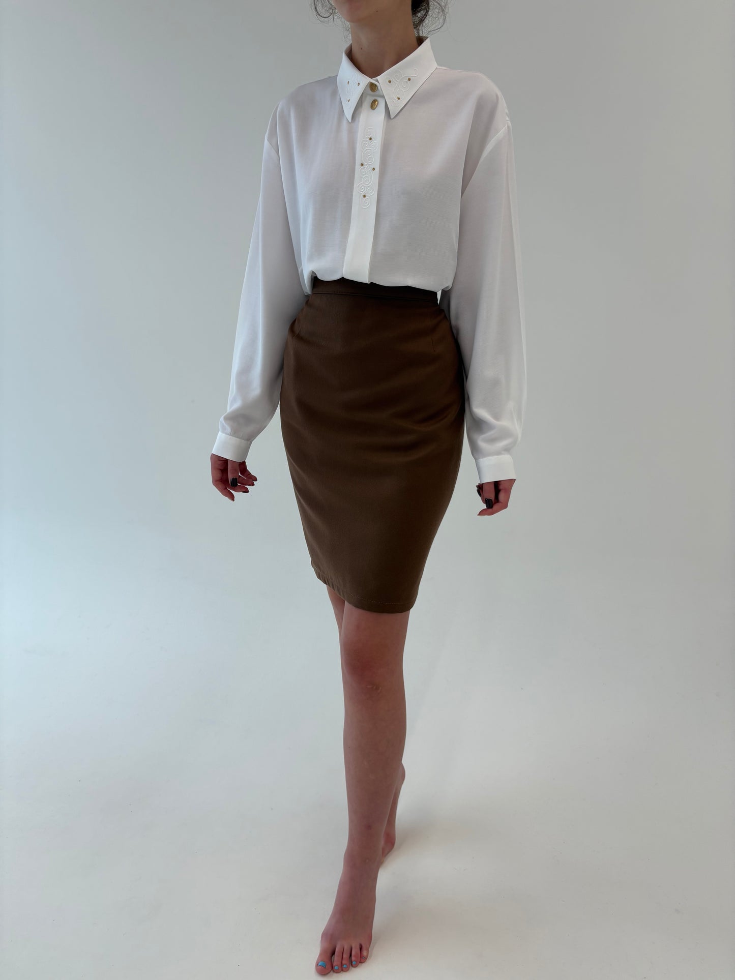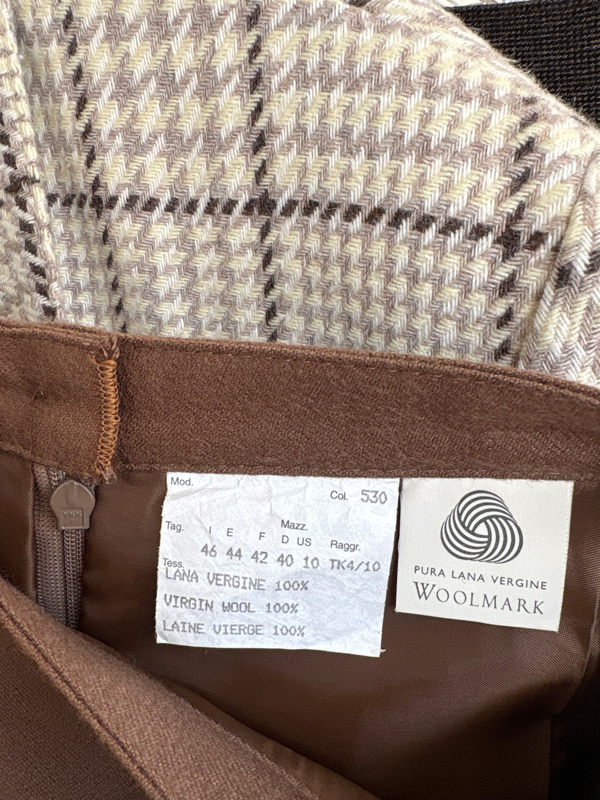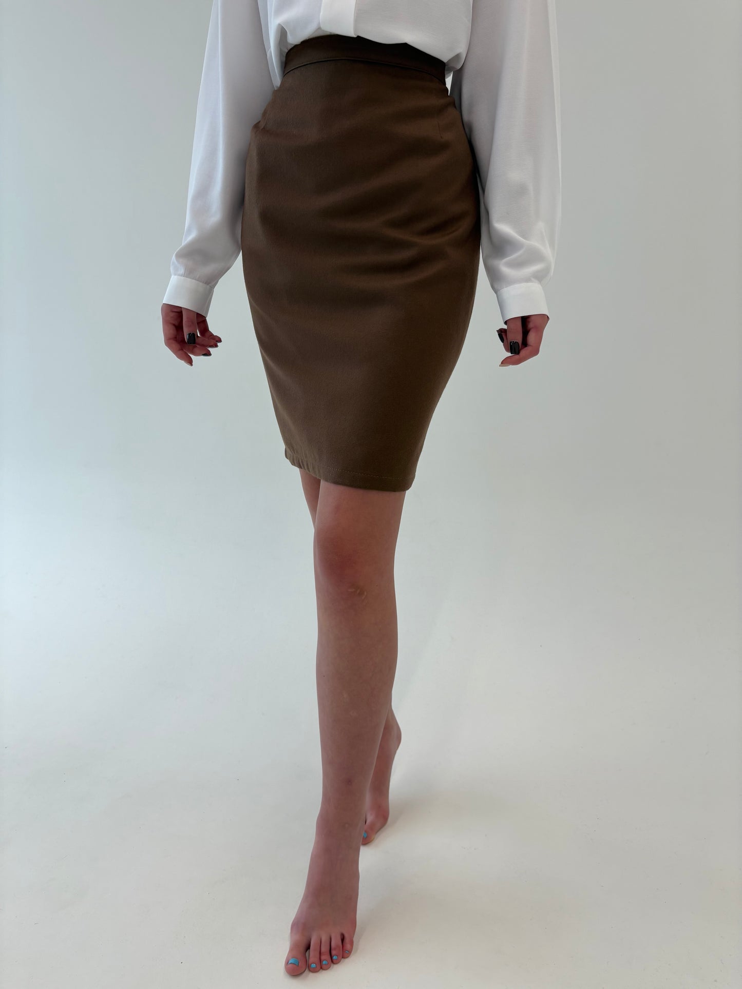 Fustă chocolate brown din lana pura extrafina certificată cu talie ultra înaltă