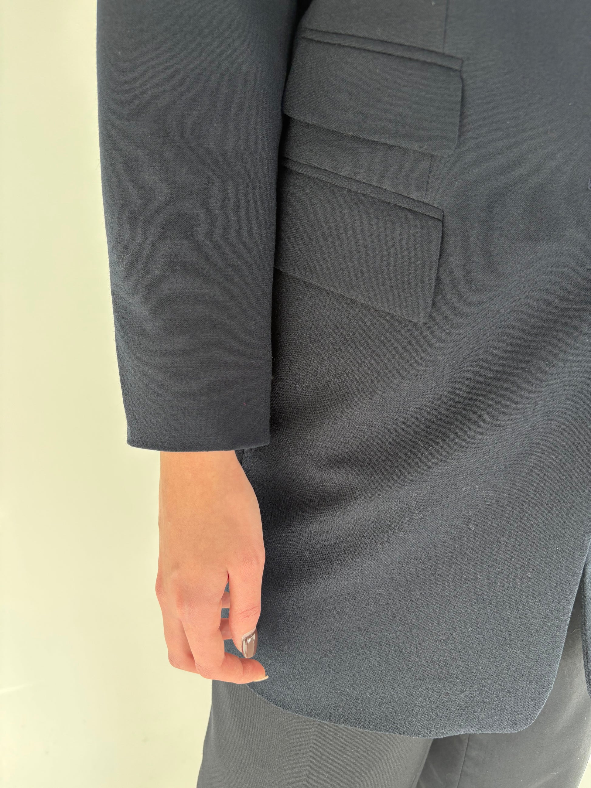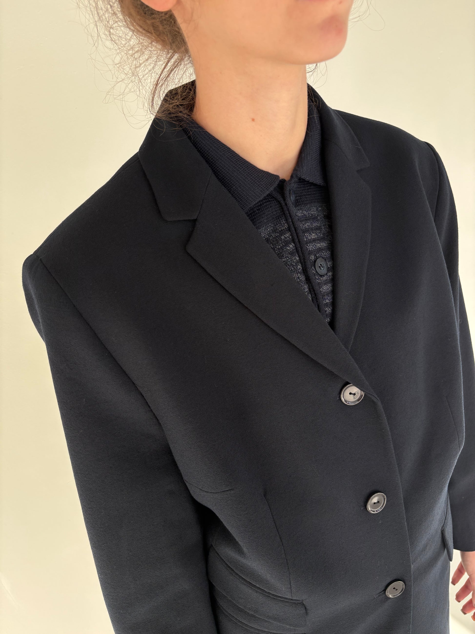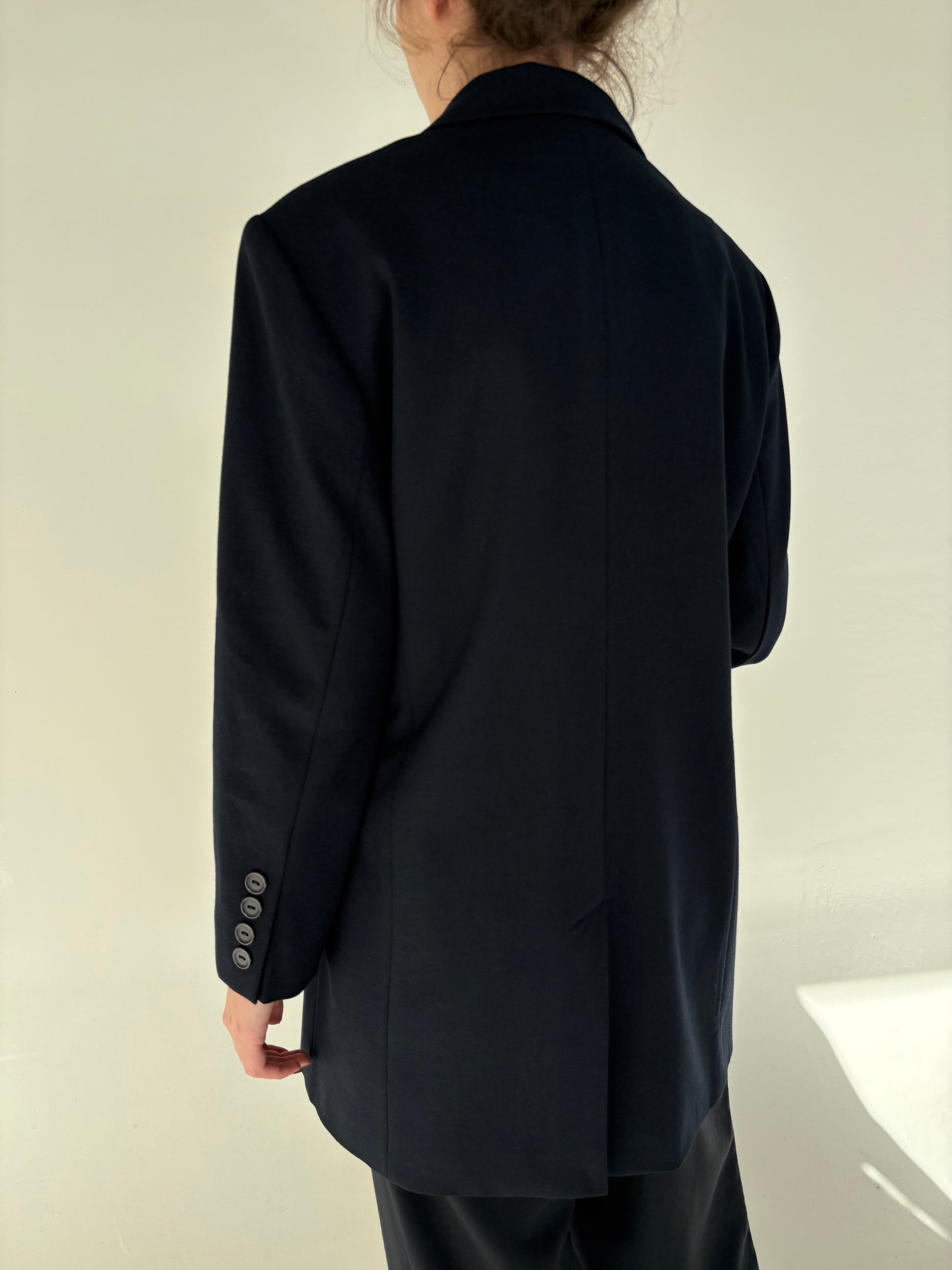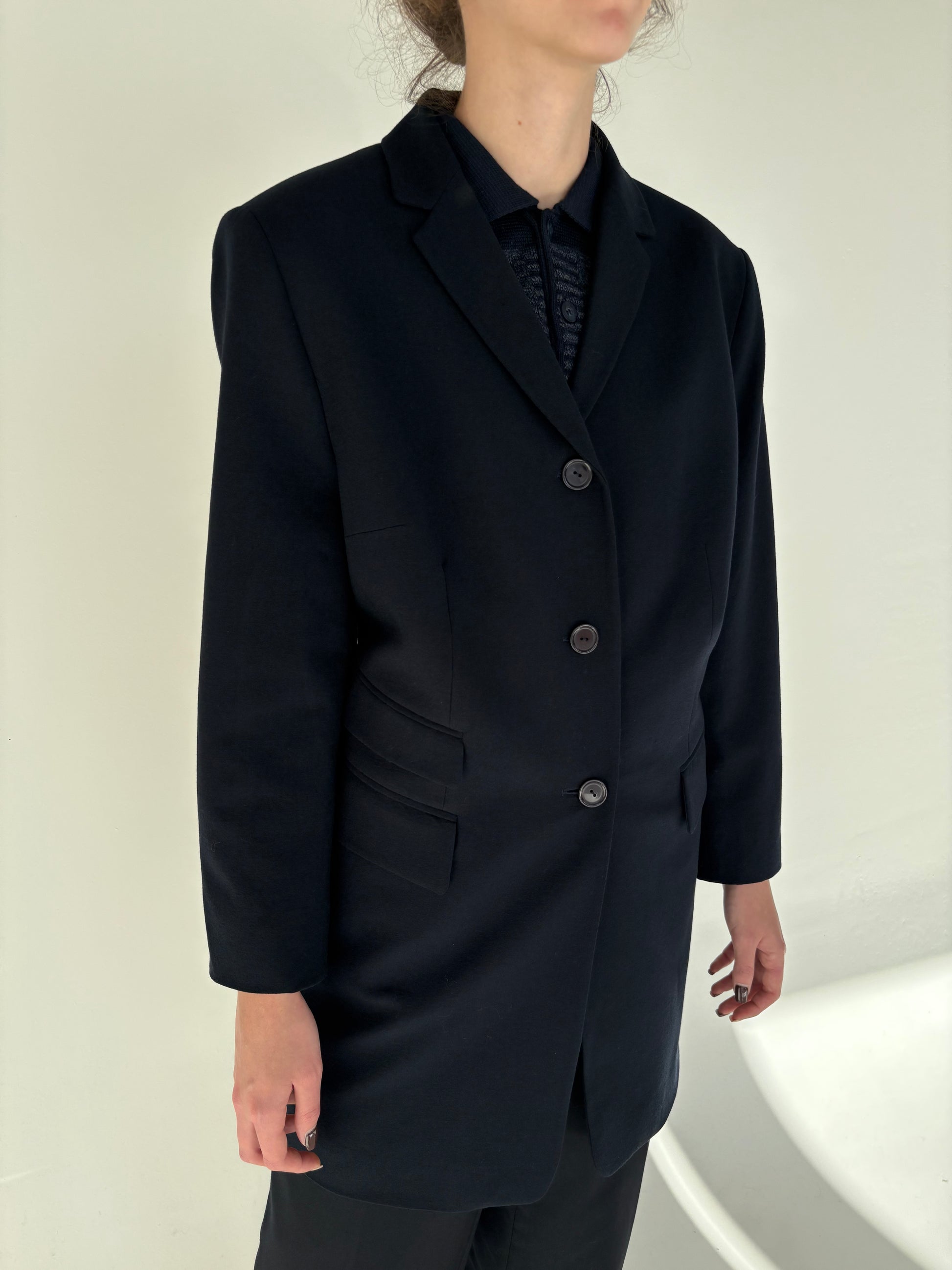 Pardesiu Navy ușor cambrat în croi lung din lana extrafina