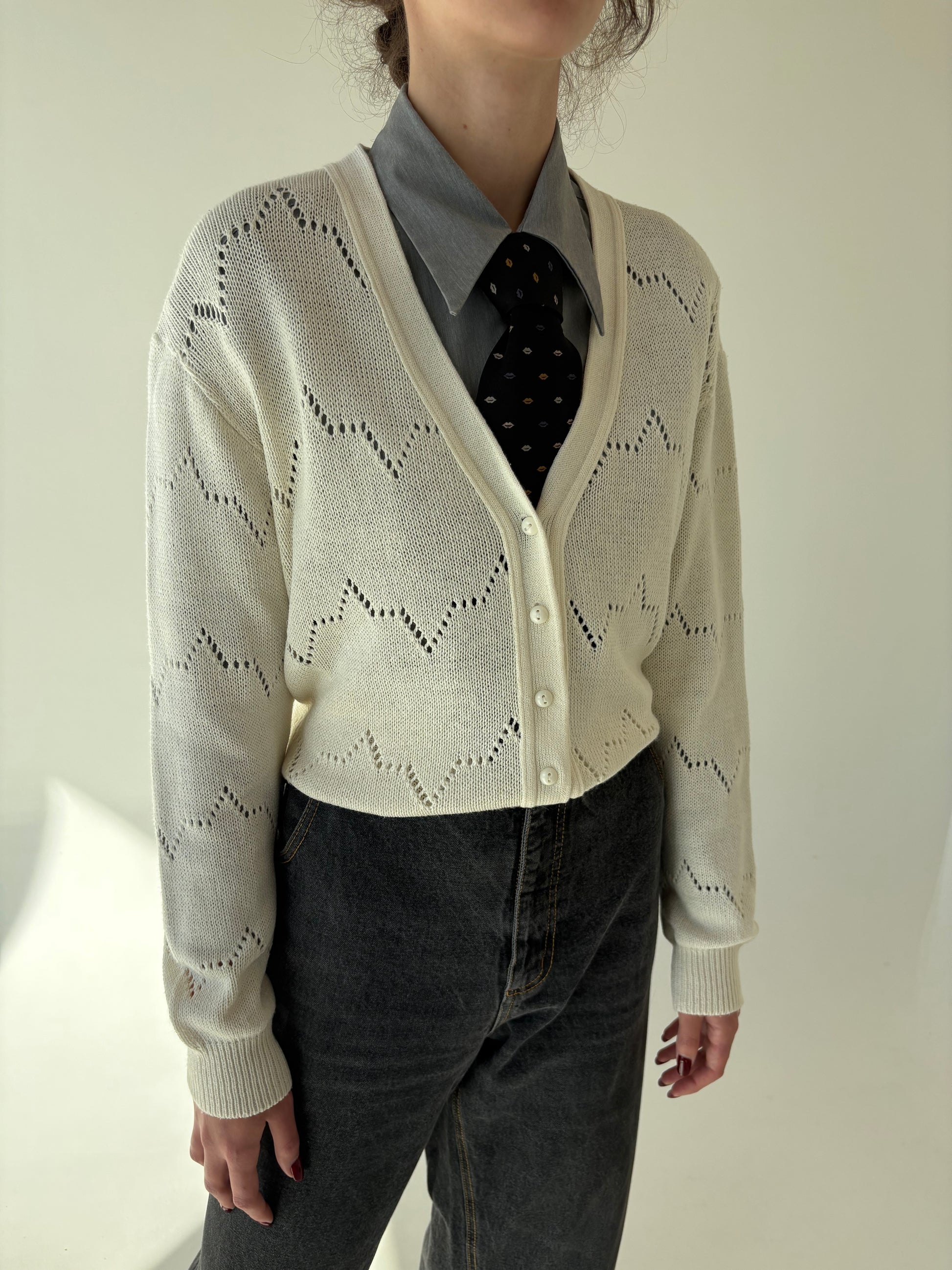 Cardigan vintage butter white din mix de lana extrafina