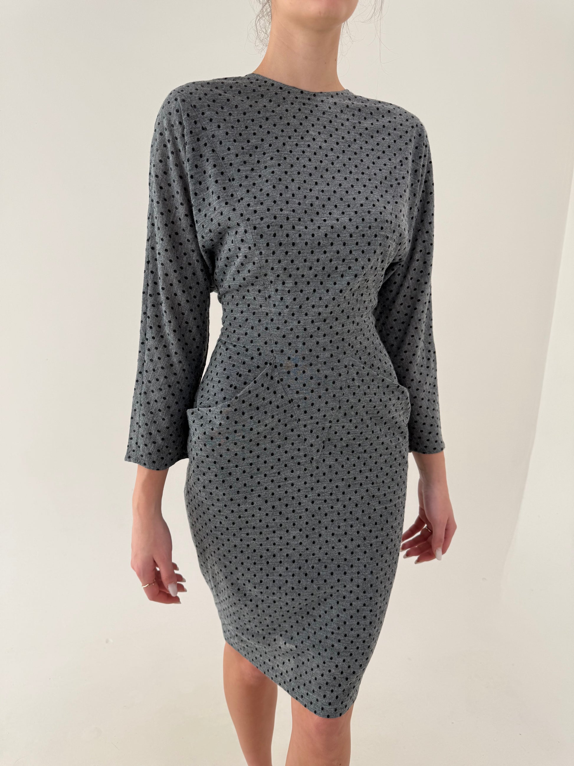 Rochie vintage cu buline , buzunare și mânecă fluture