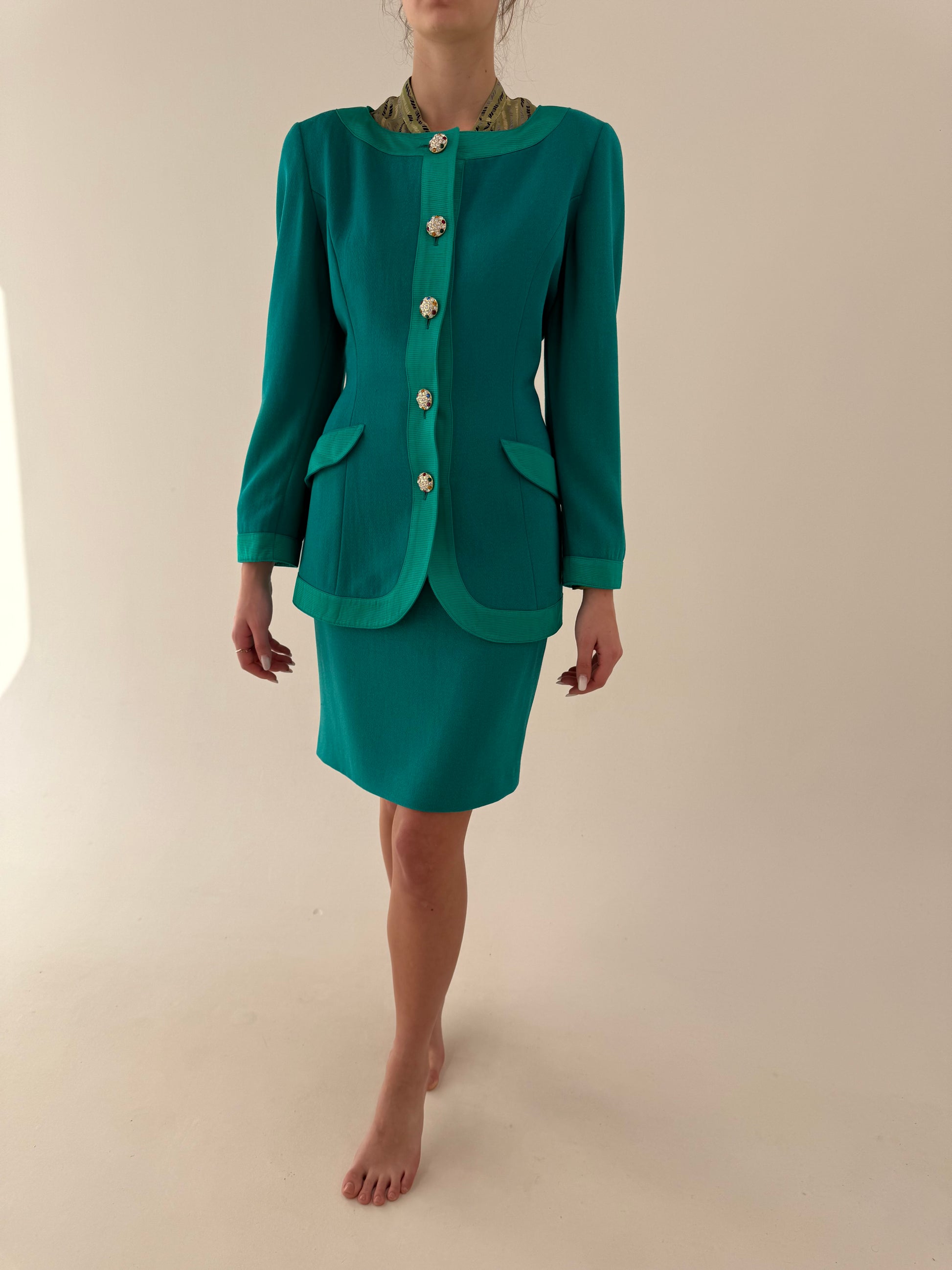 Deux piece excepțional vintage cu sacou cambrat și fustă conică