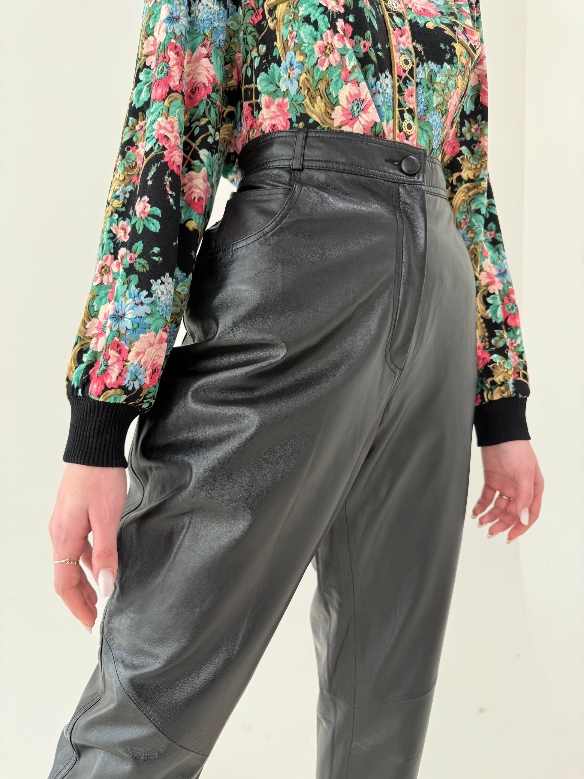 Pantaloni din piele naturală extrem de moale mom fit tall cu talie ultra înaltă