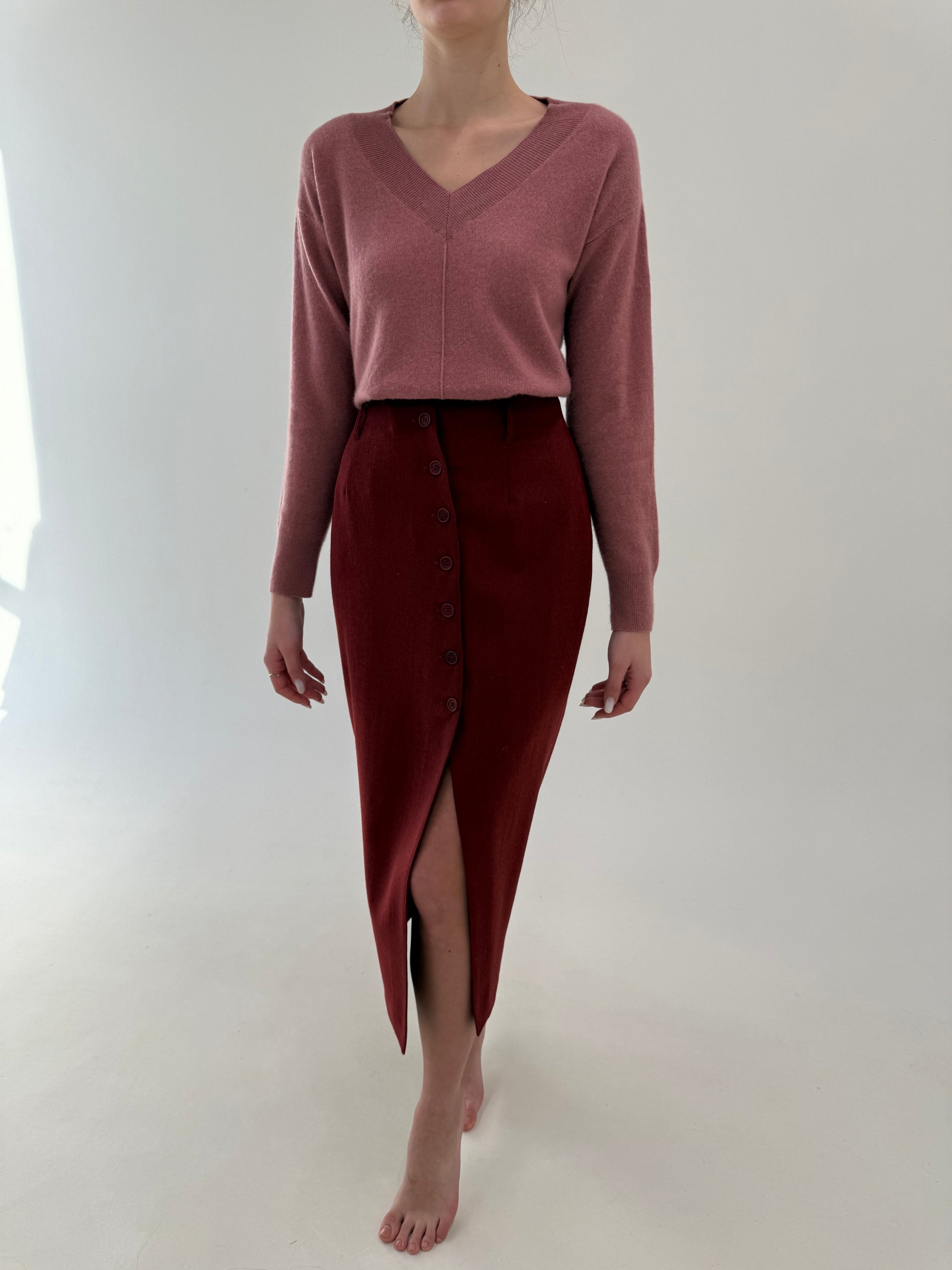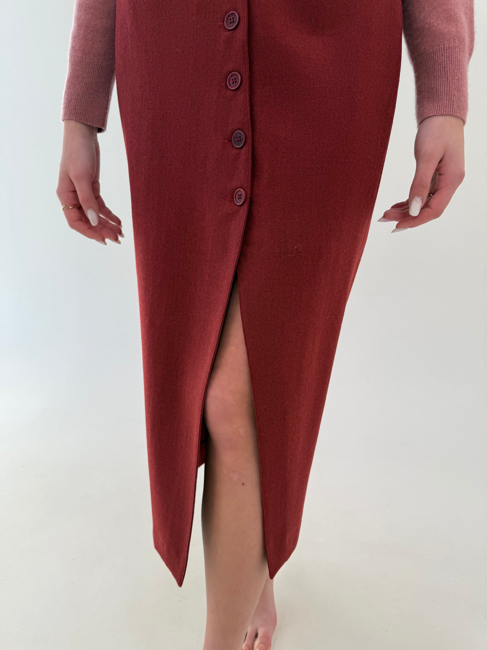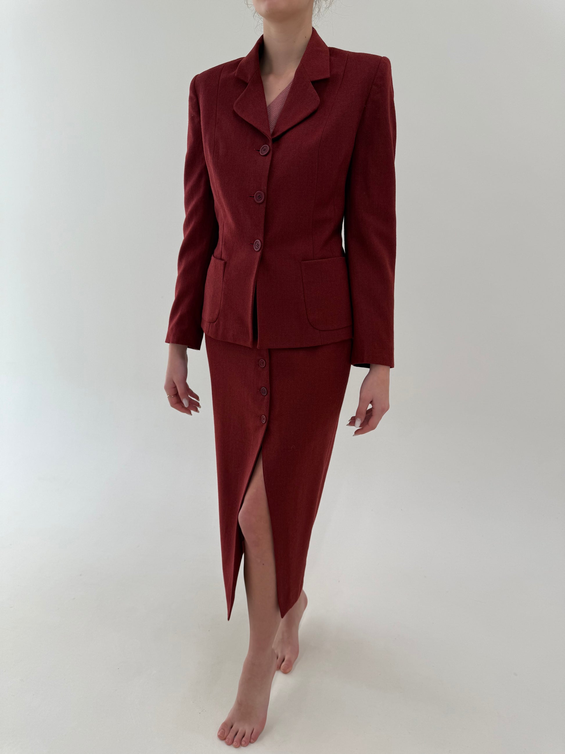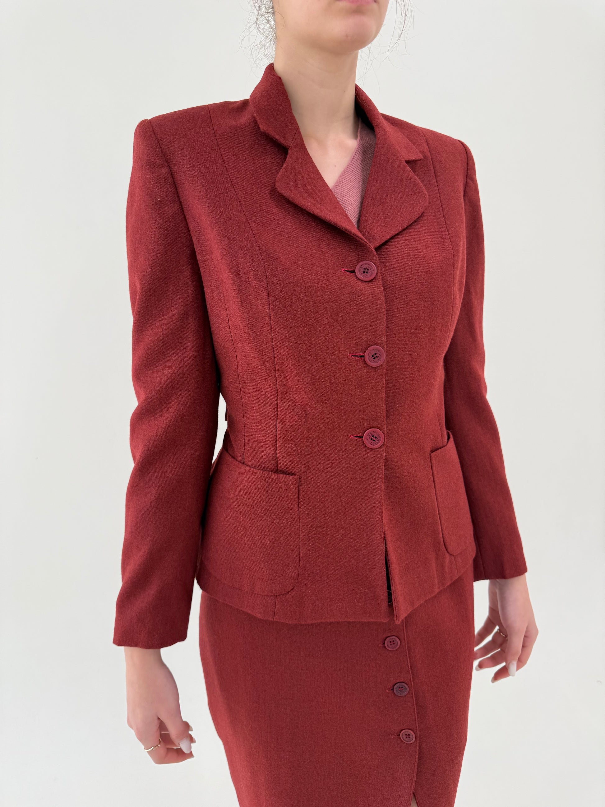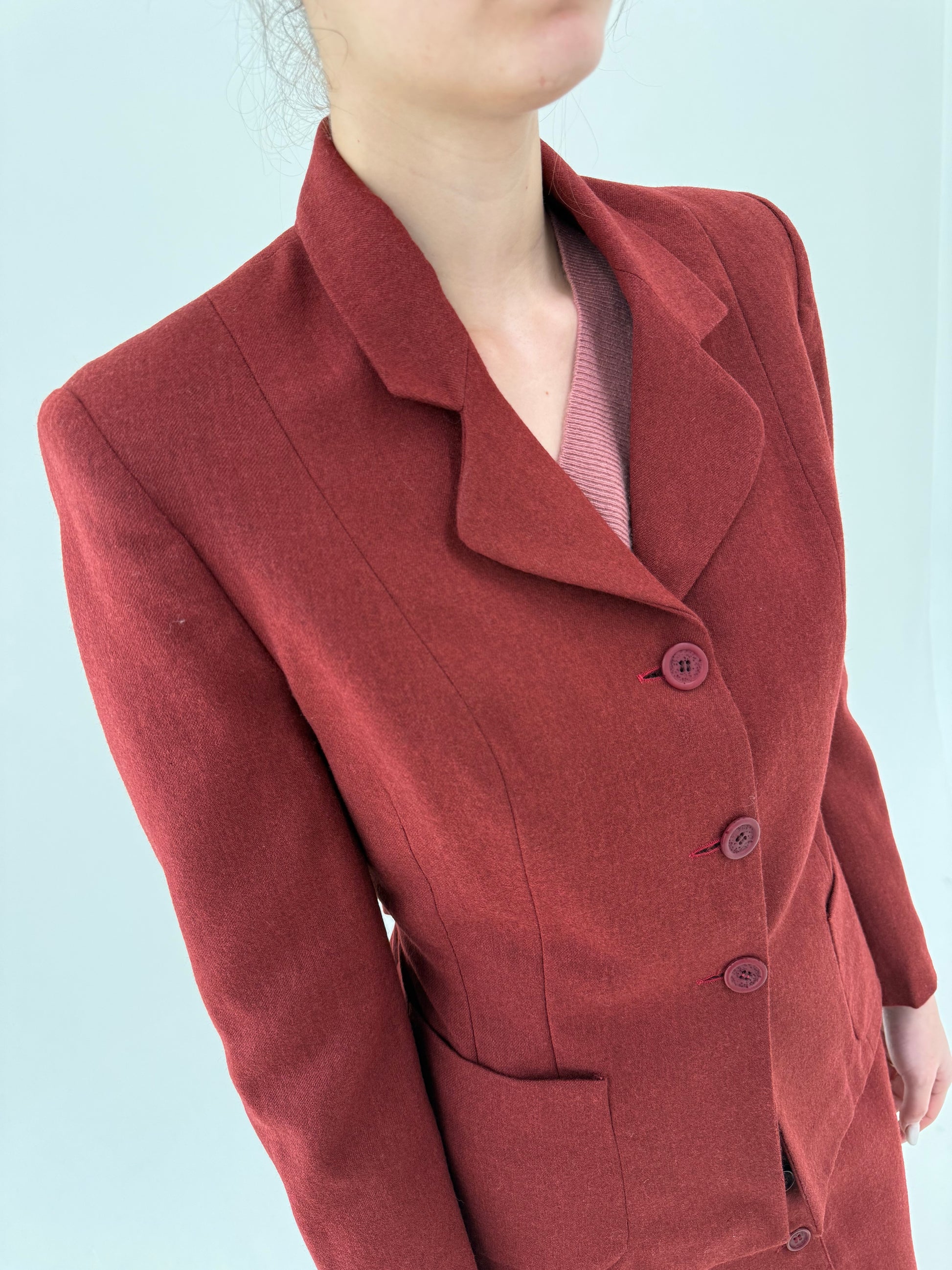 Deux piece vintage terracotta red cu fustă maxi și sacou cambrat