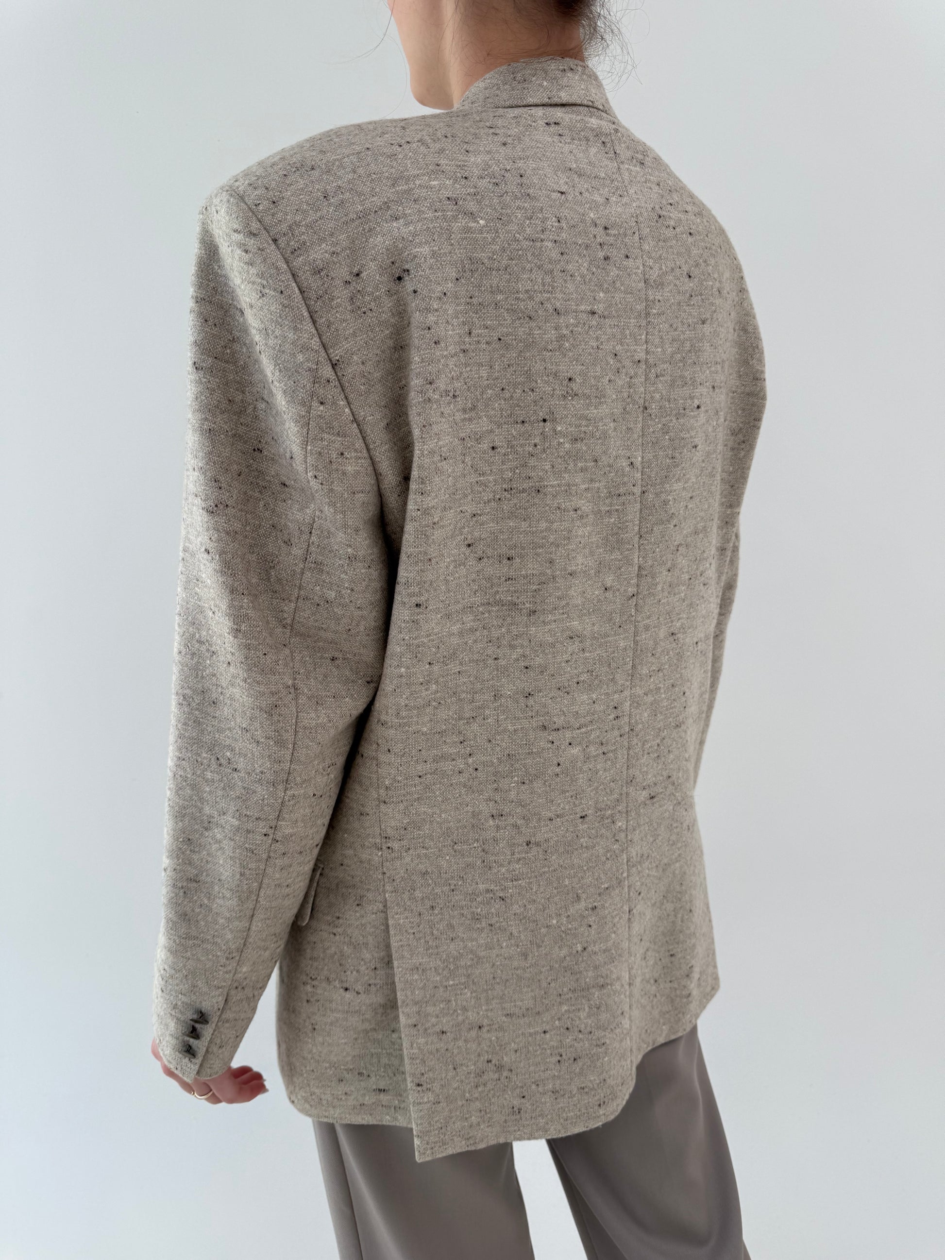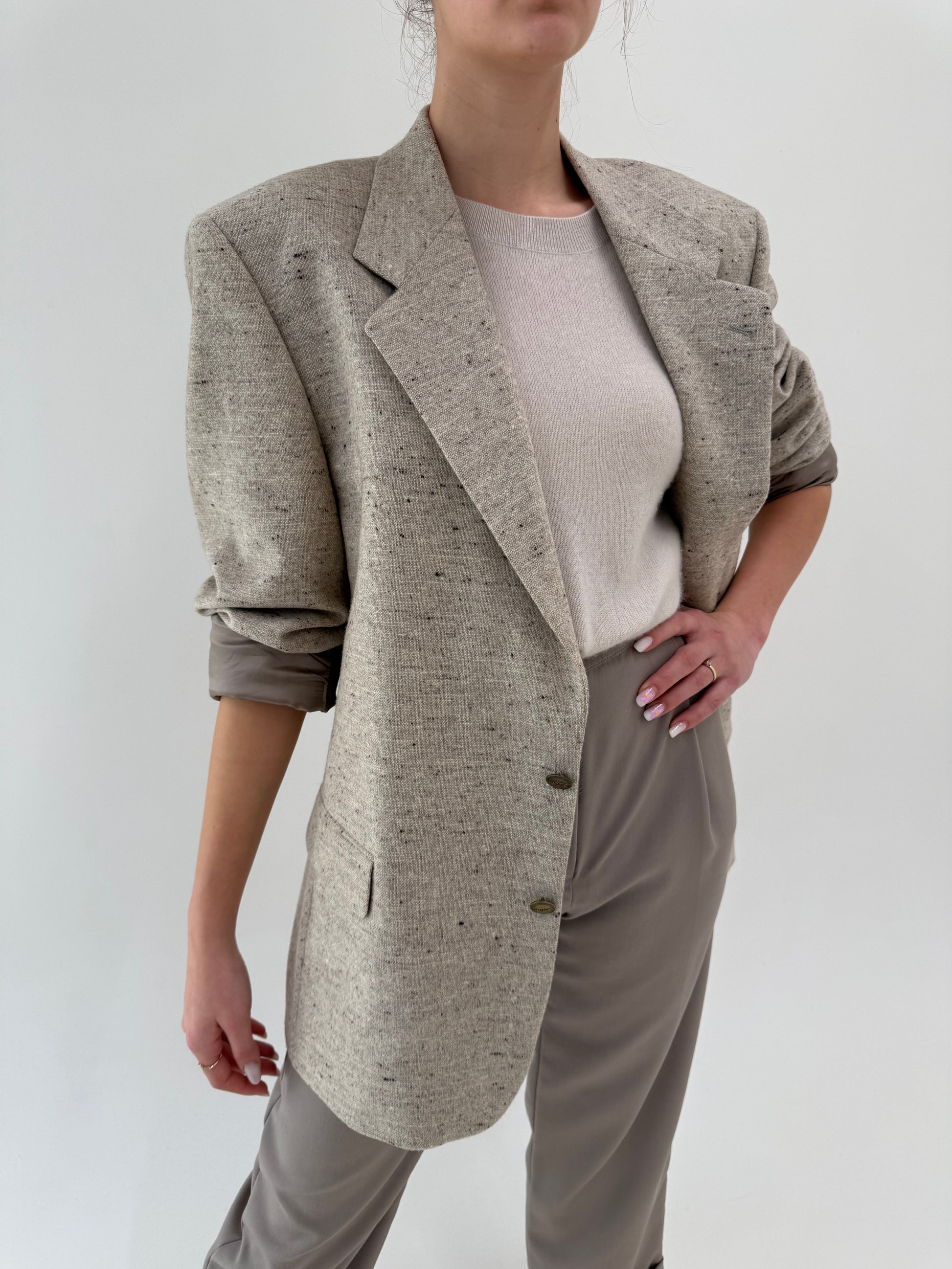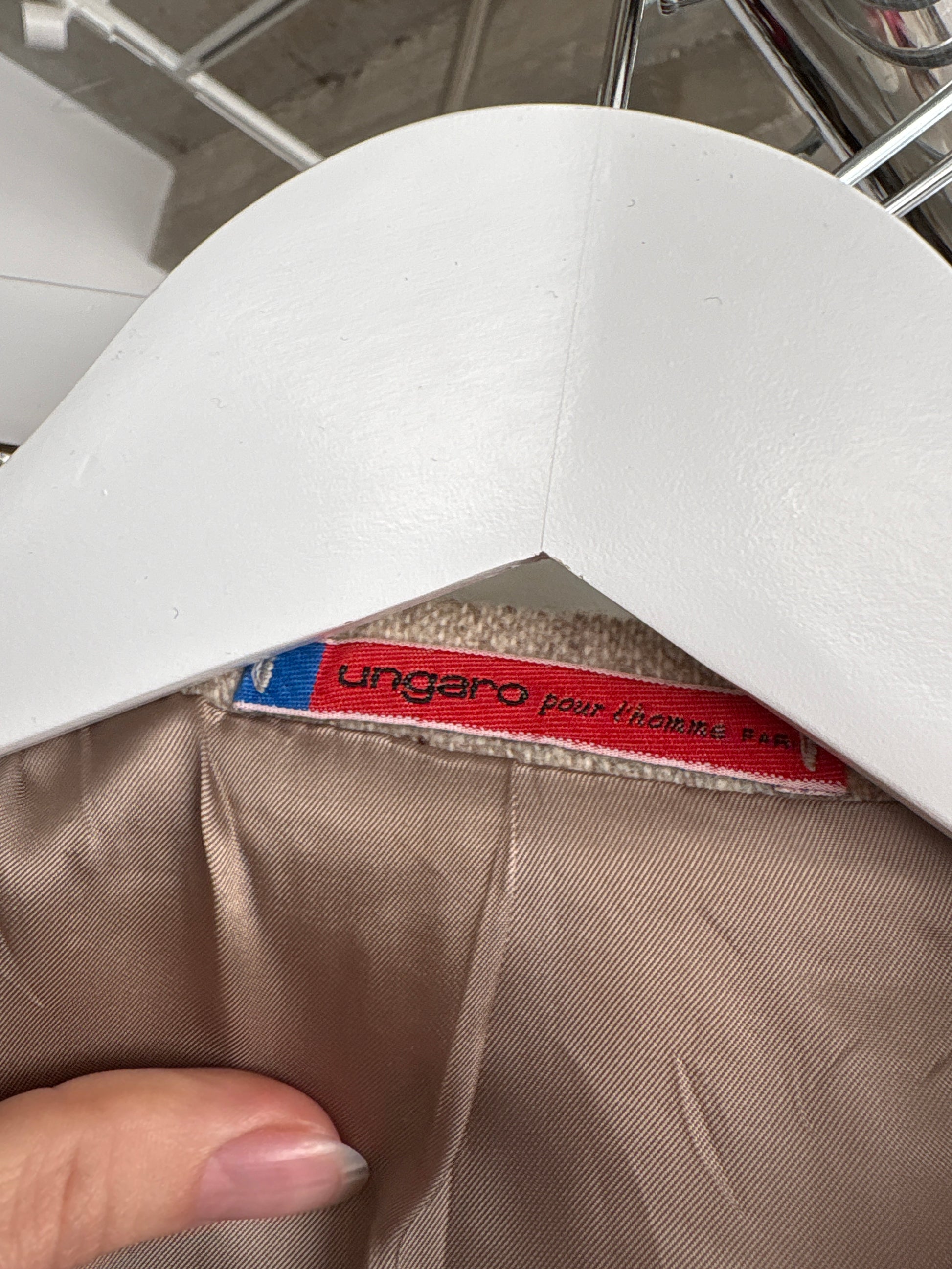Sacou tall luxury Ungaro din stofă melanj nude cu chocolate brown