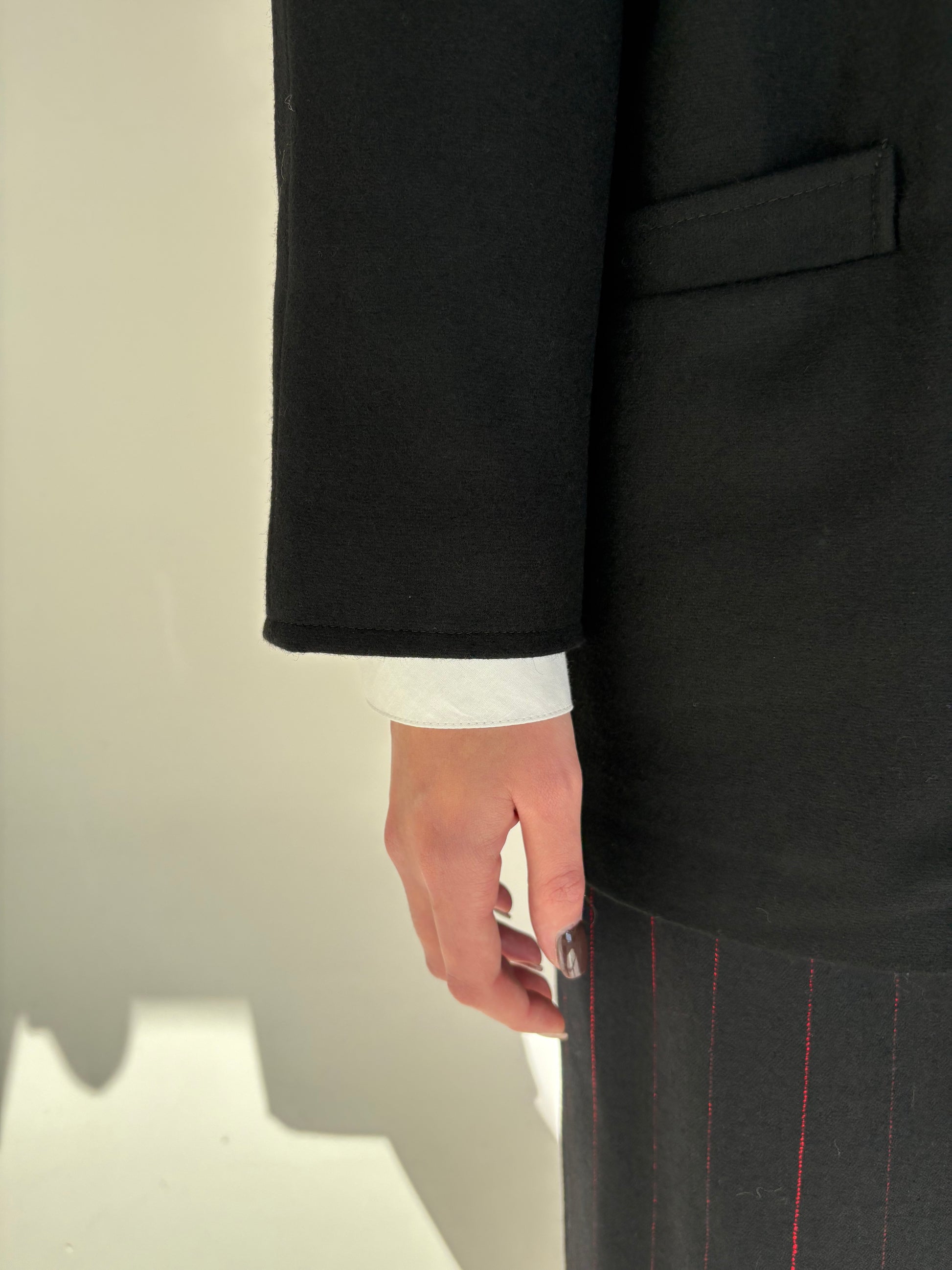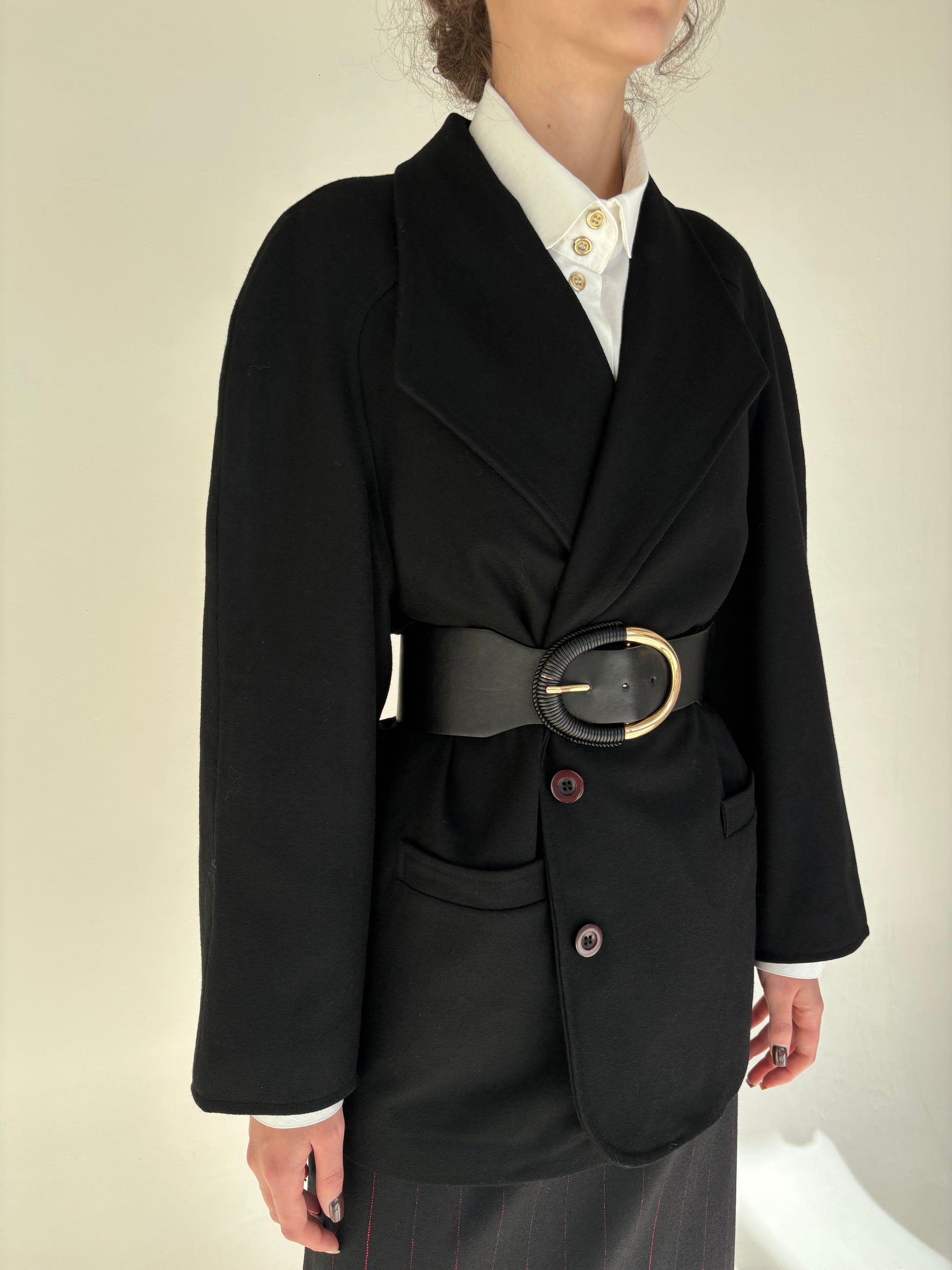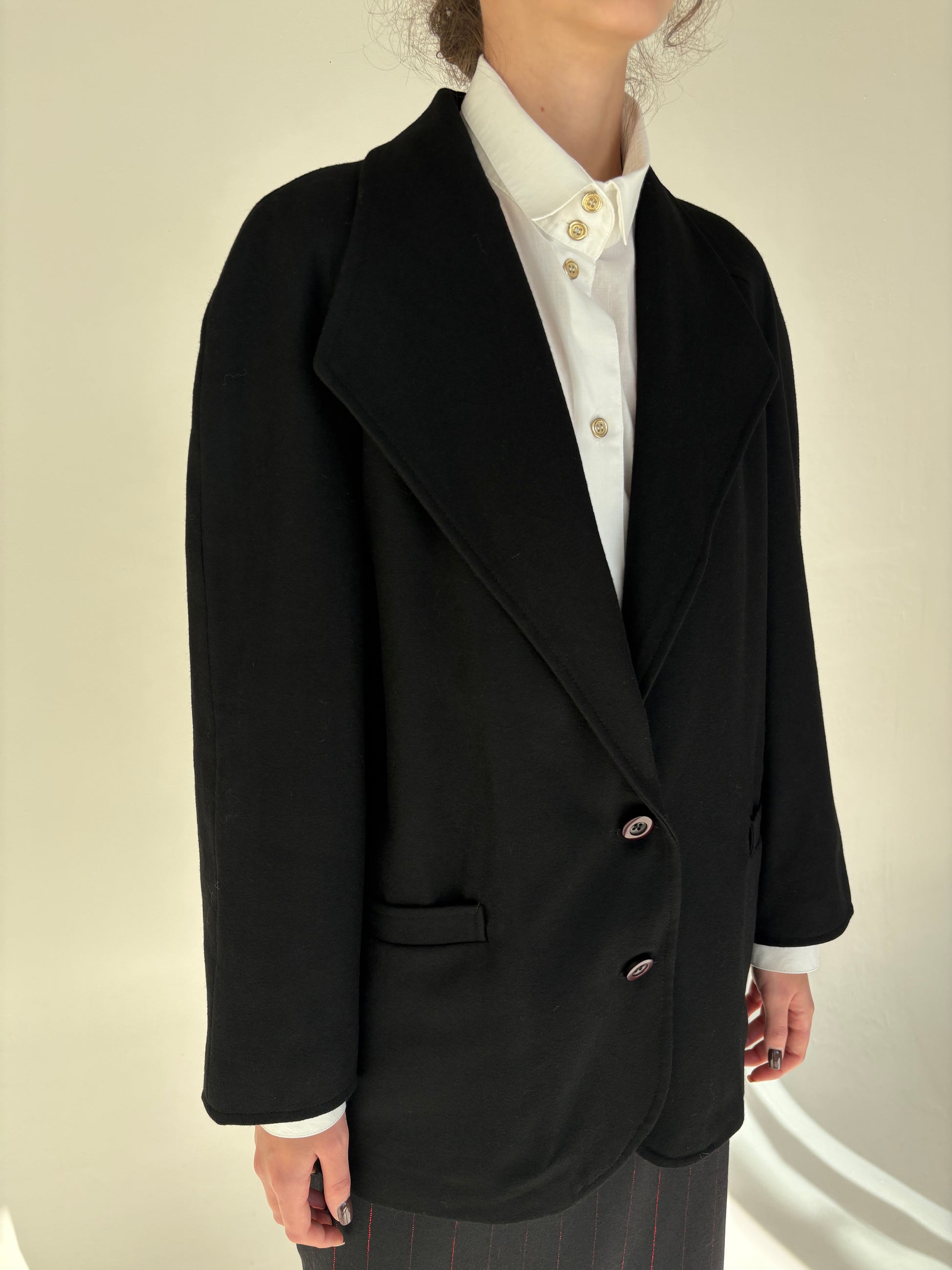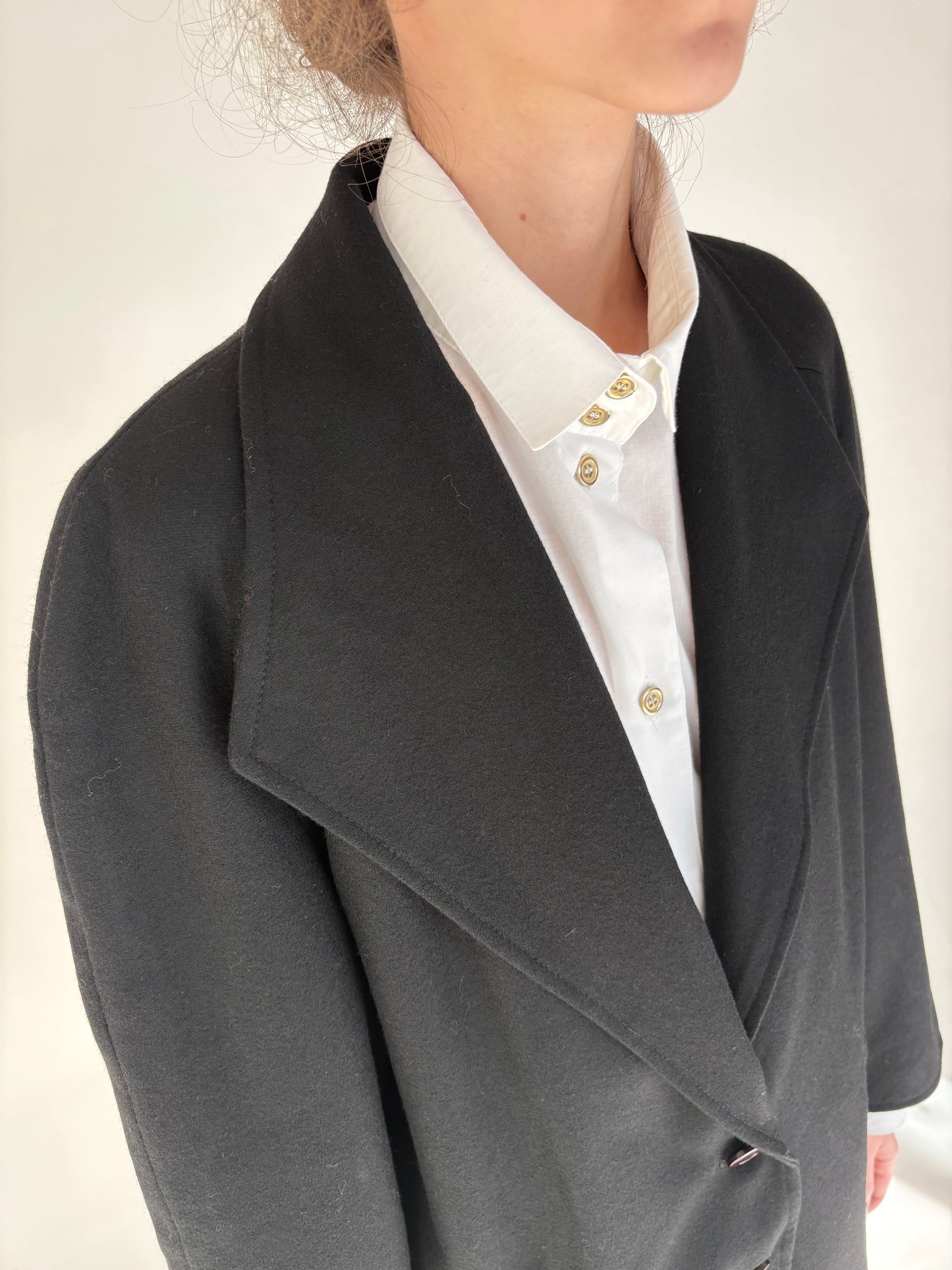 Sacou negru italian din afișa extafina de lana în croi retro modern