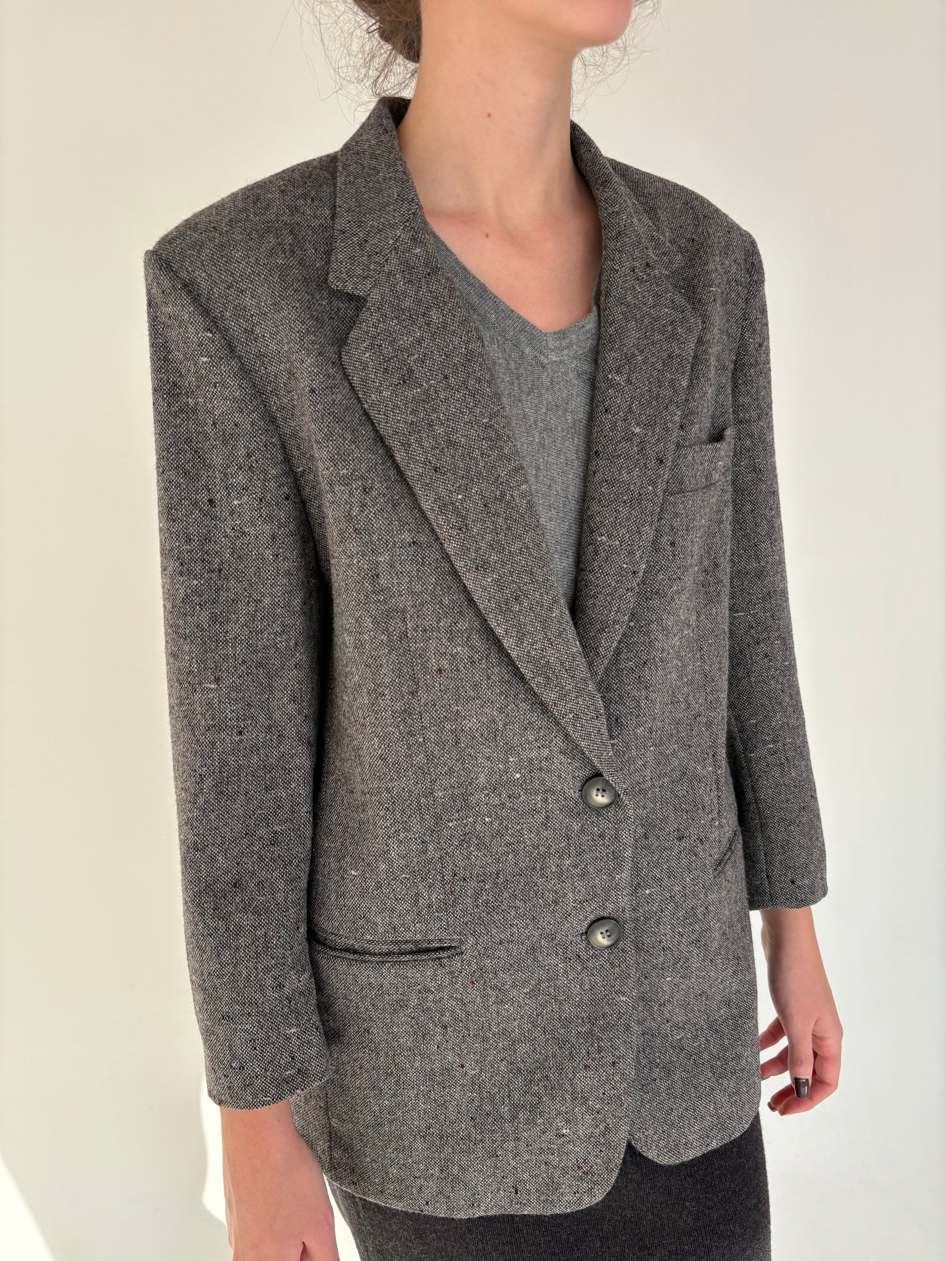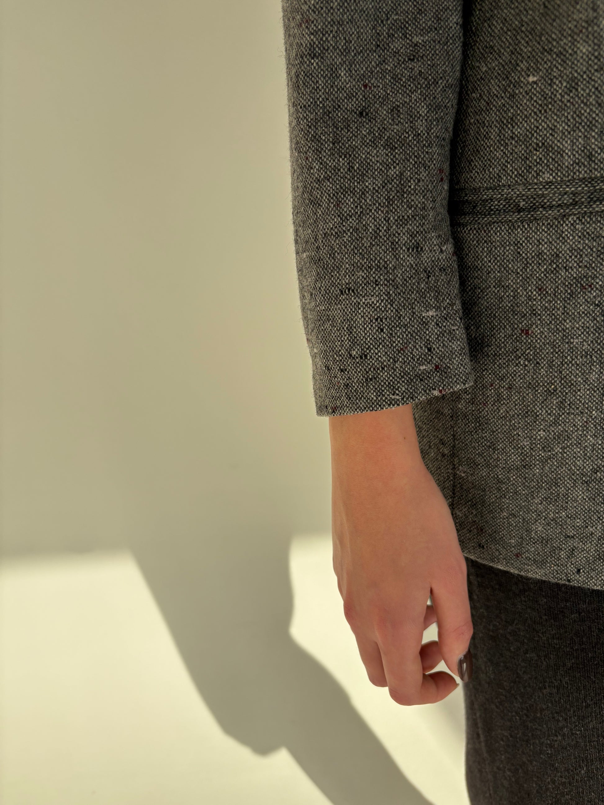 Sacou luxury petite din tweed de alpaka și mohair cu inserții burgundy