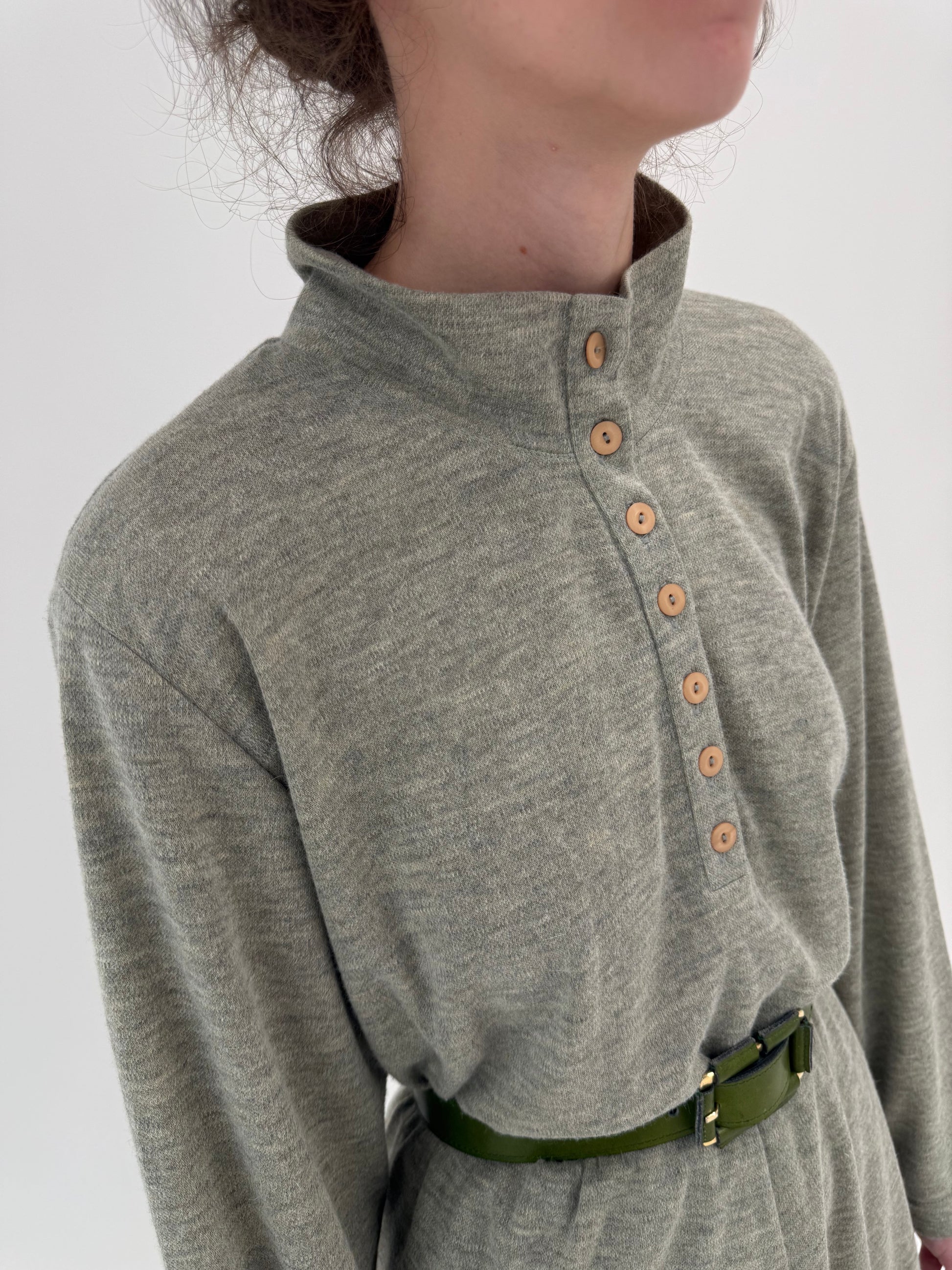 Gulerul funnel cu șir de nasturi mici până sus apare des în a doua jumătate a anilor 80