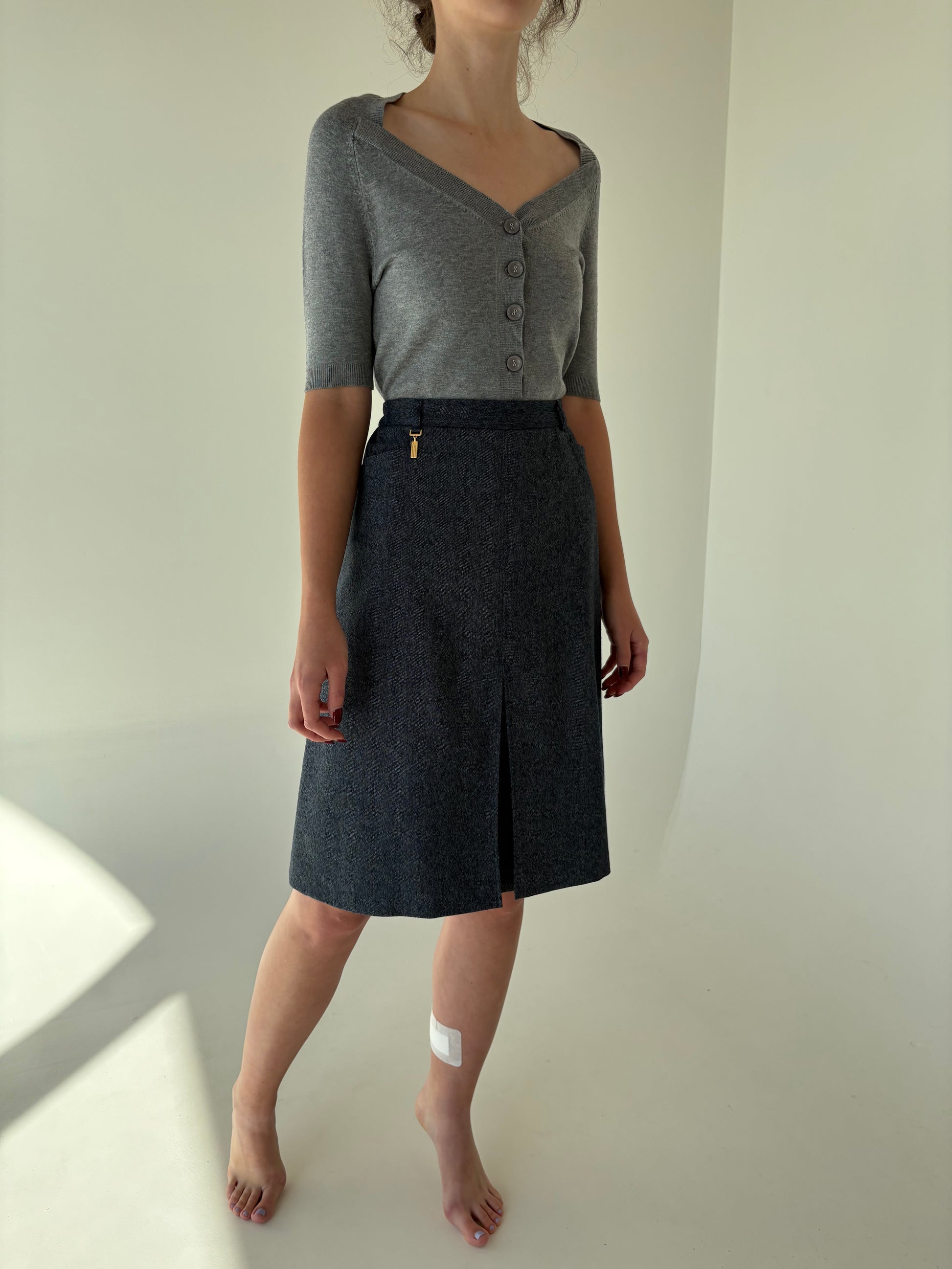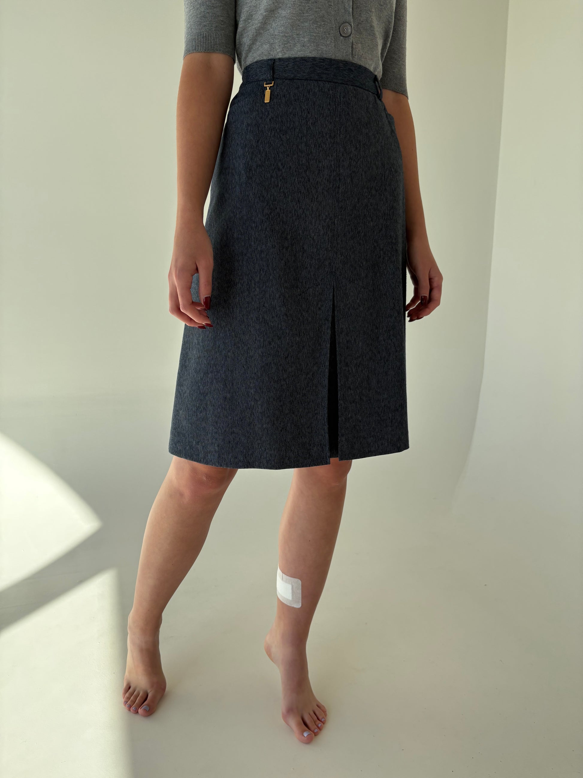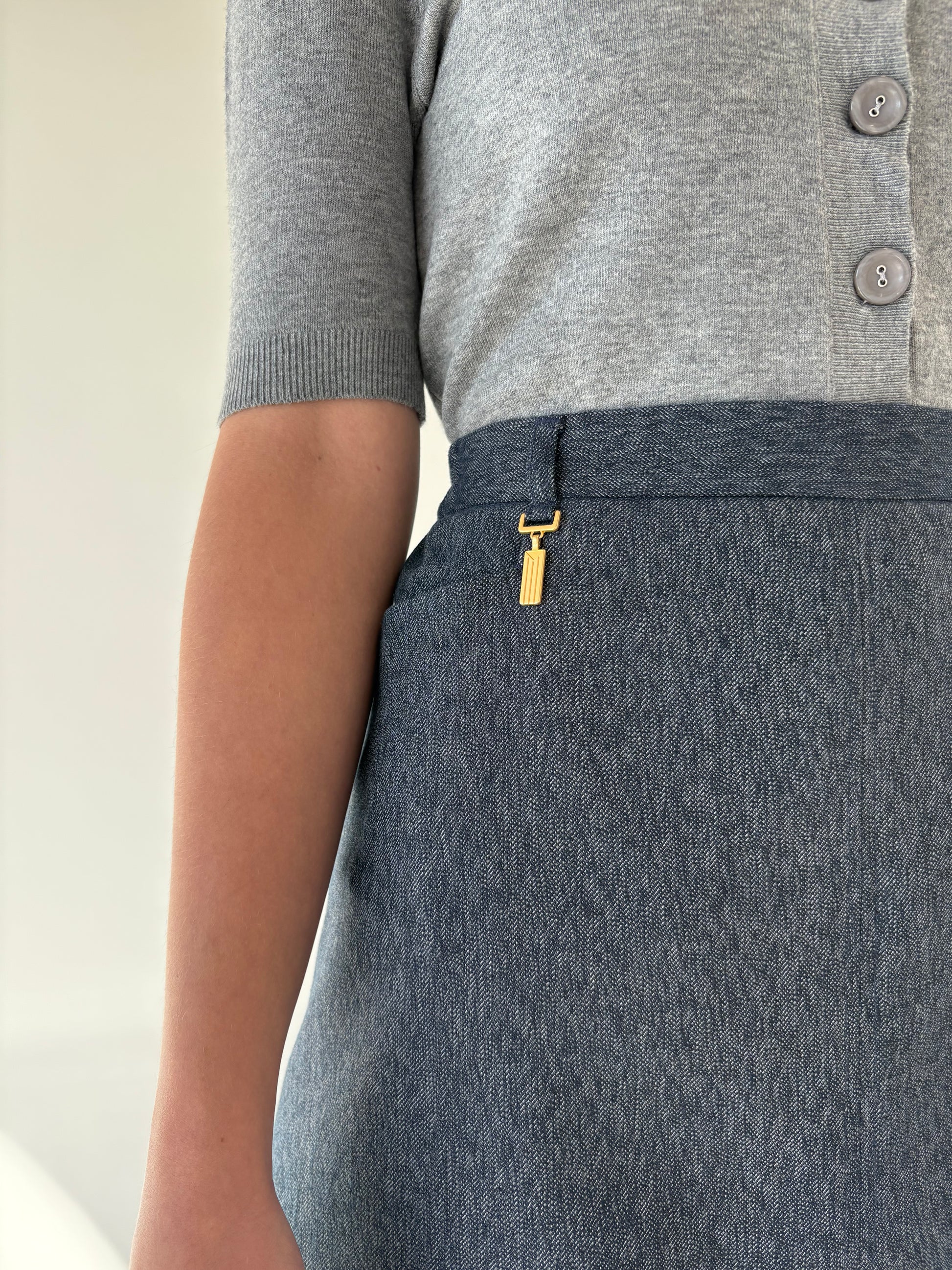 Fustă din stofă cu talie ultra înaltă și buzunare oblice jeans blue