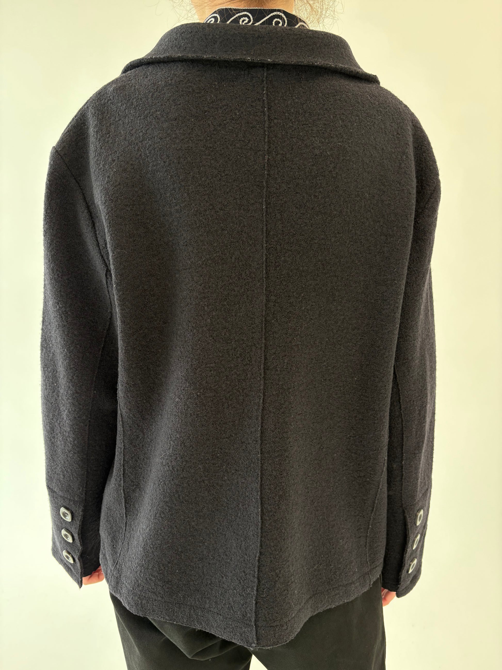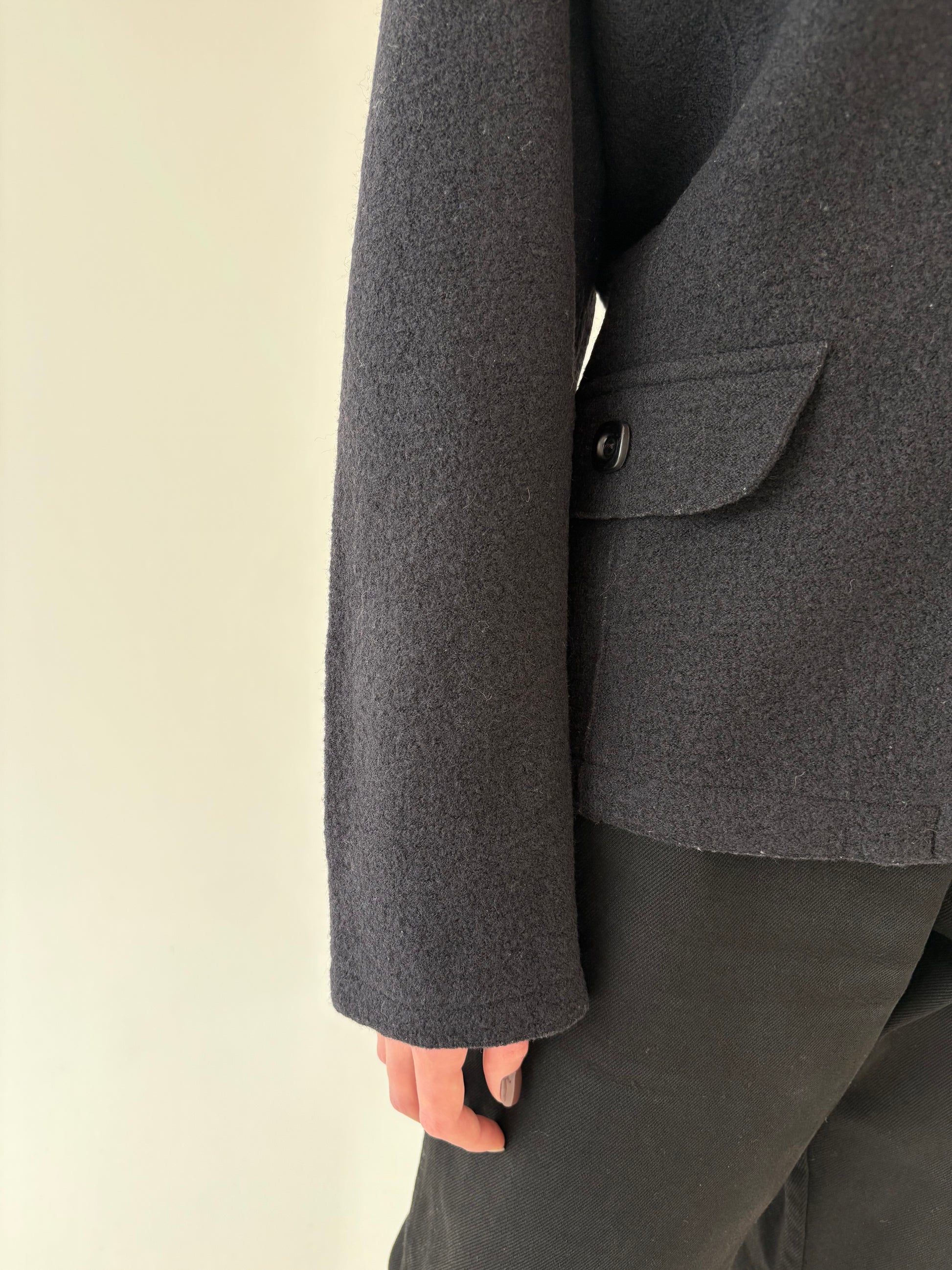 Sacou cambrat italian negru ultra confort din boiled wool