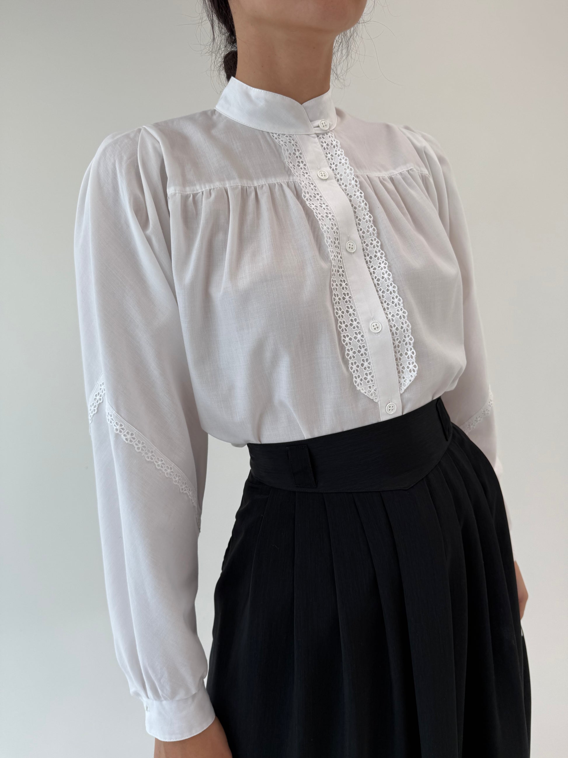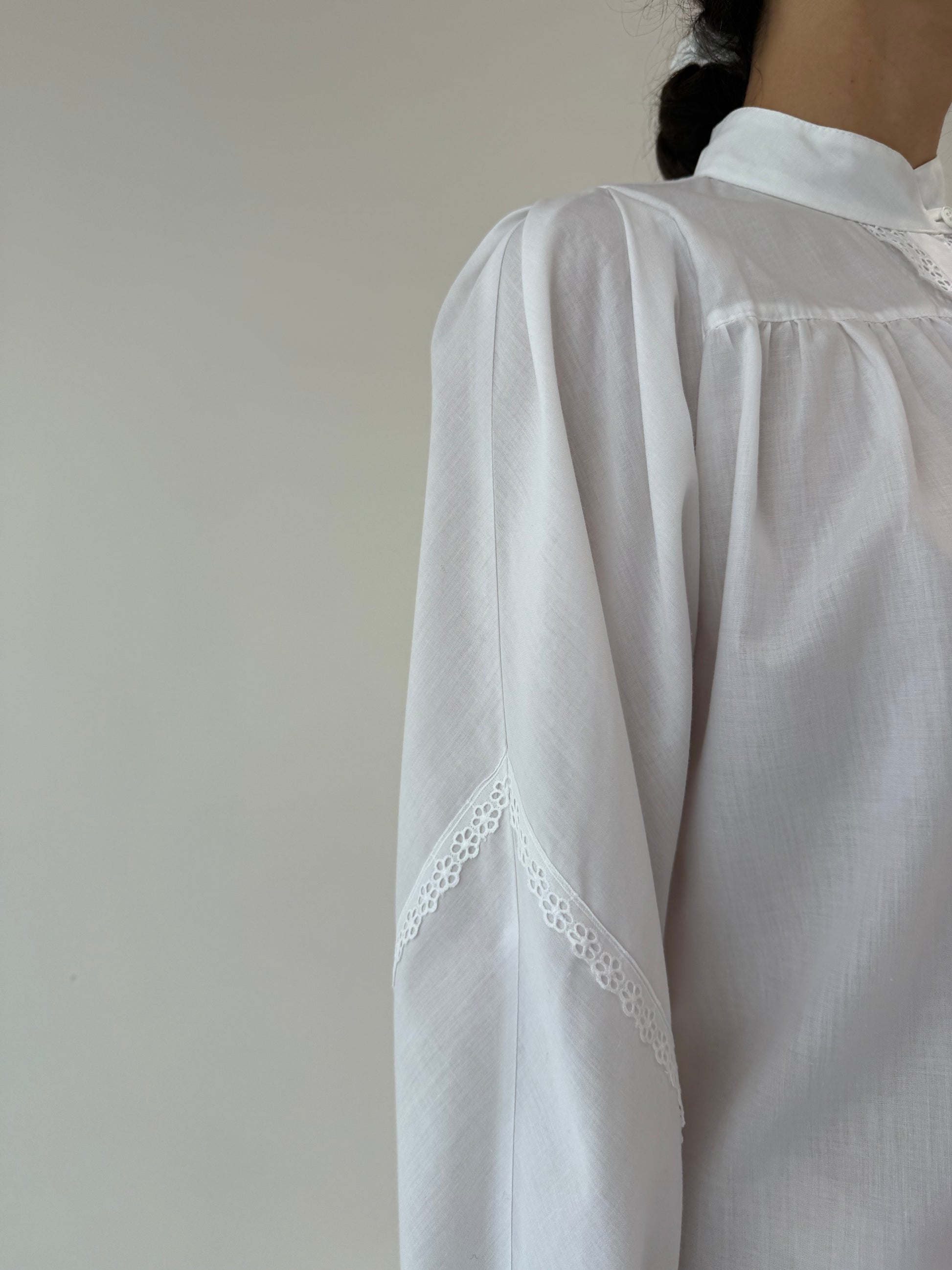 Cămașa vintage din bumbac cu mini jabou din dantelă macrame