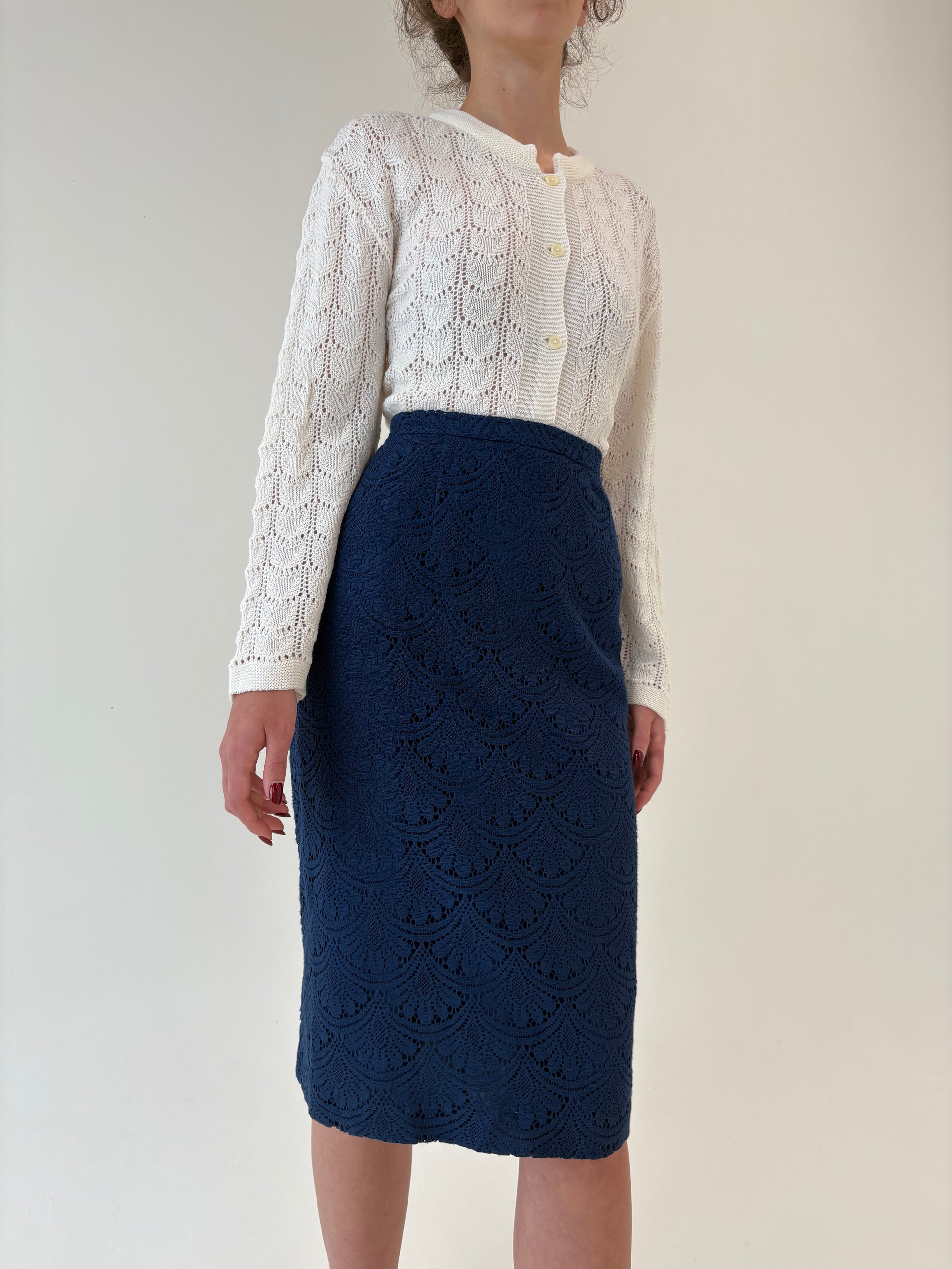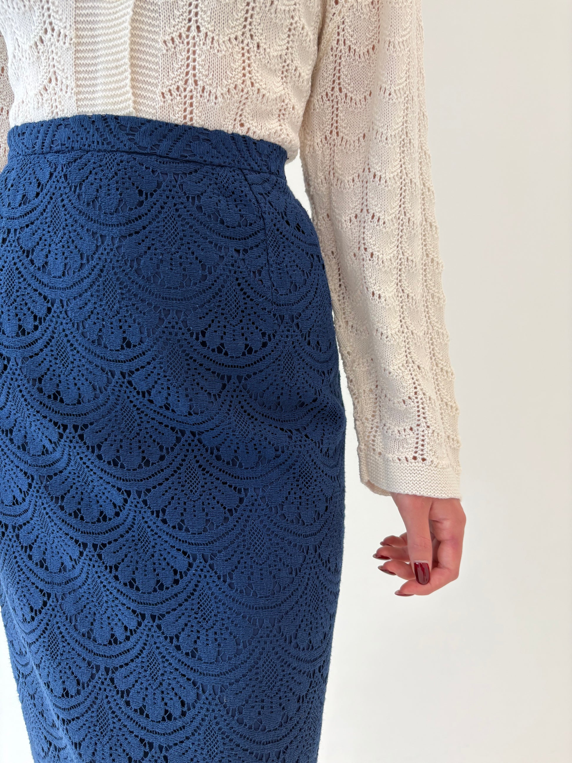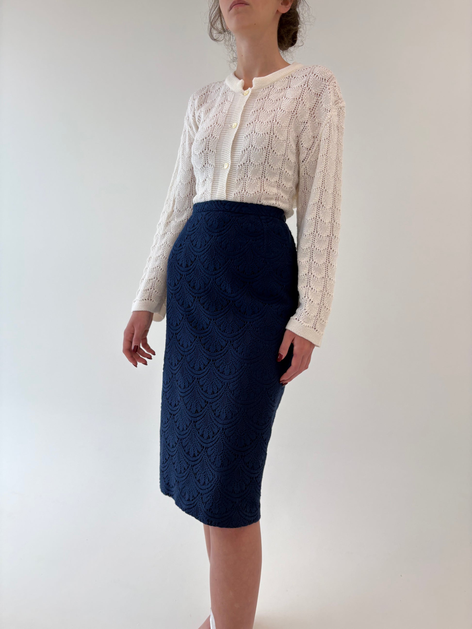 Fustă vintage superbă albastru cerneală din dantelă groasă din mix de lana