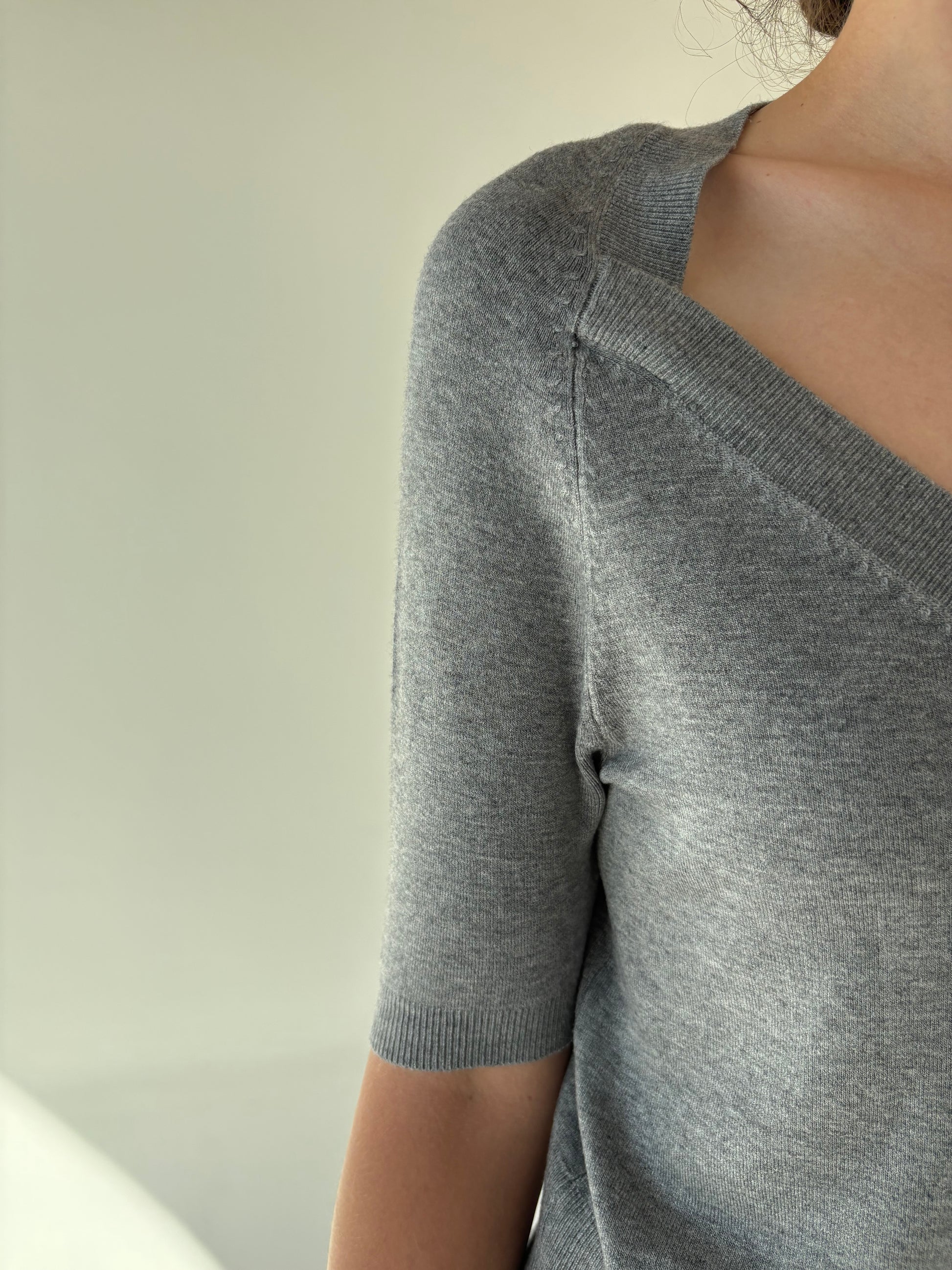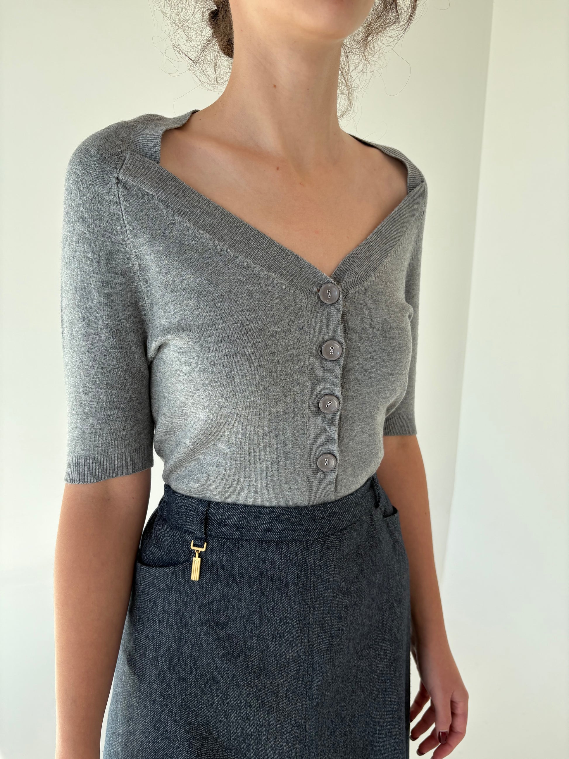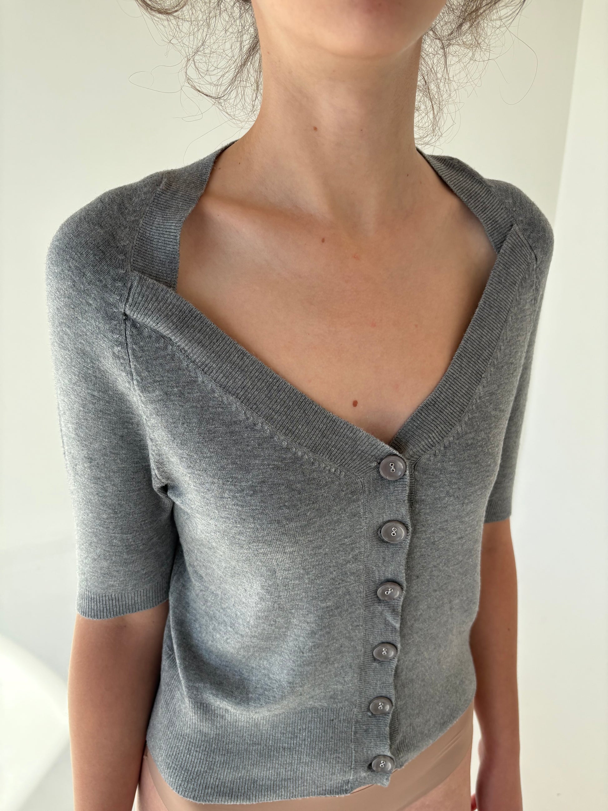 Top cu decolteu inima din jerse de gramaj mare de bumbac ușor cambrat