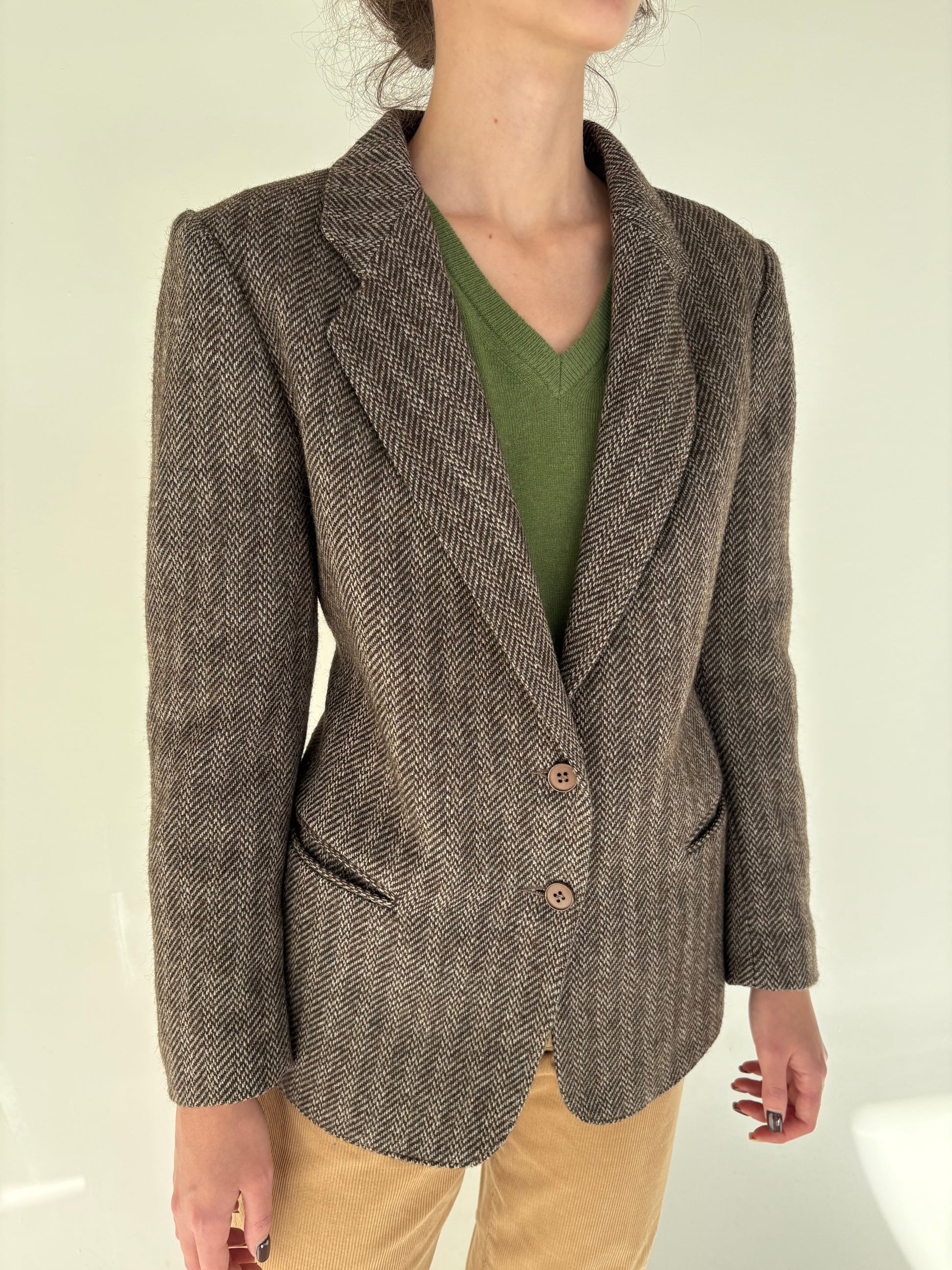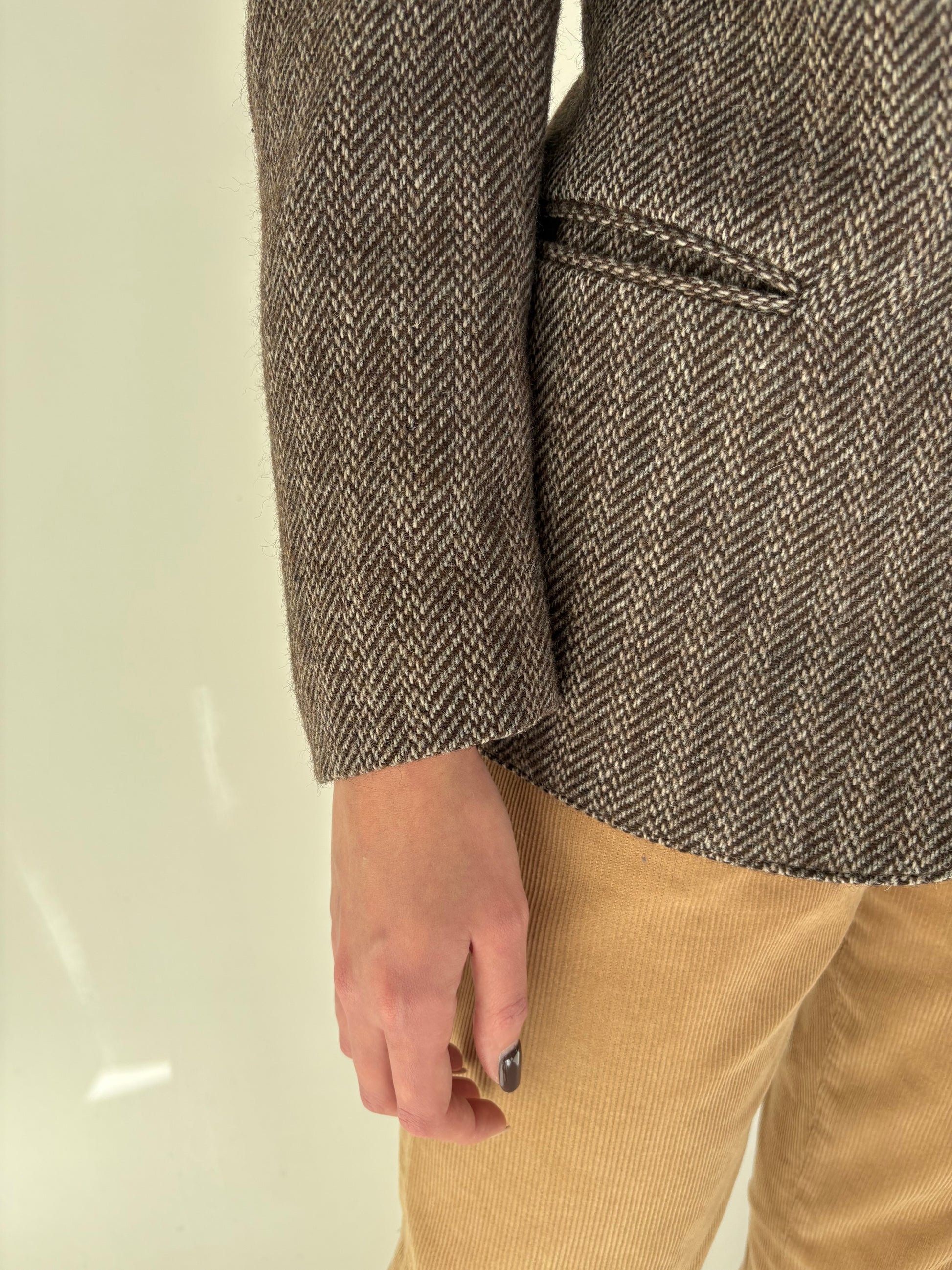 Sacou gros din teeed Chevron de lana în nuanțe neutre