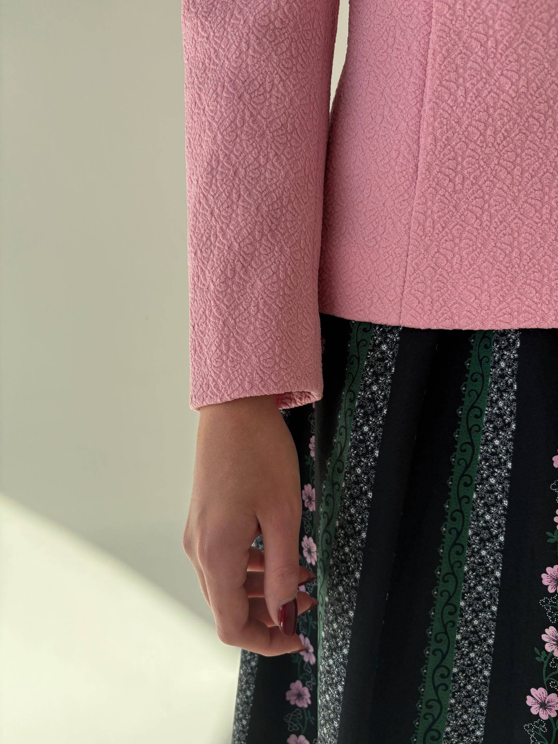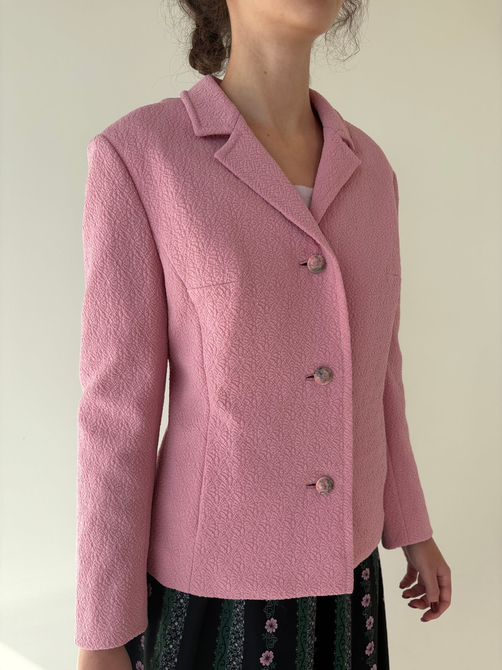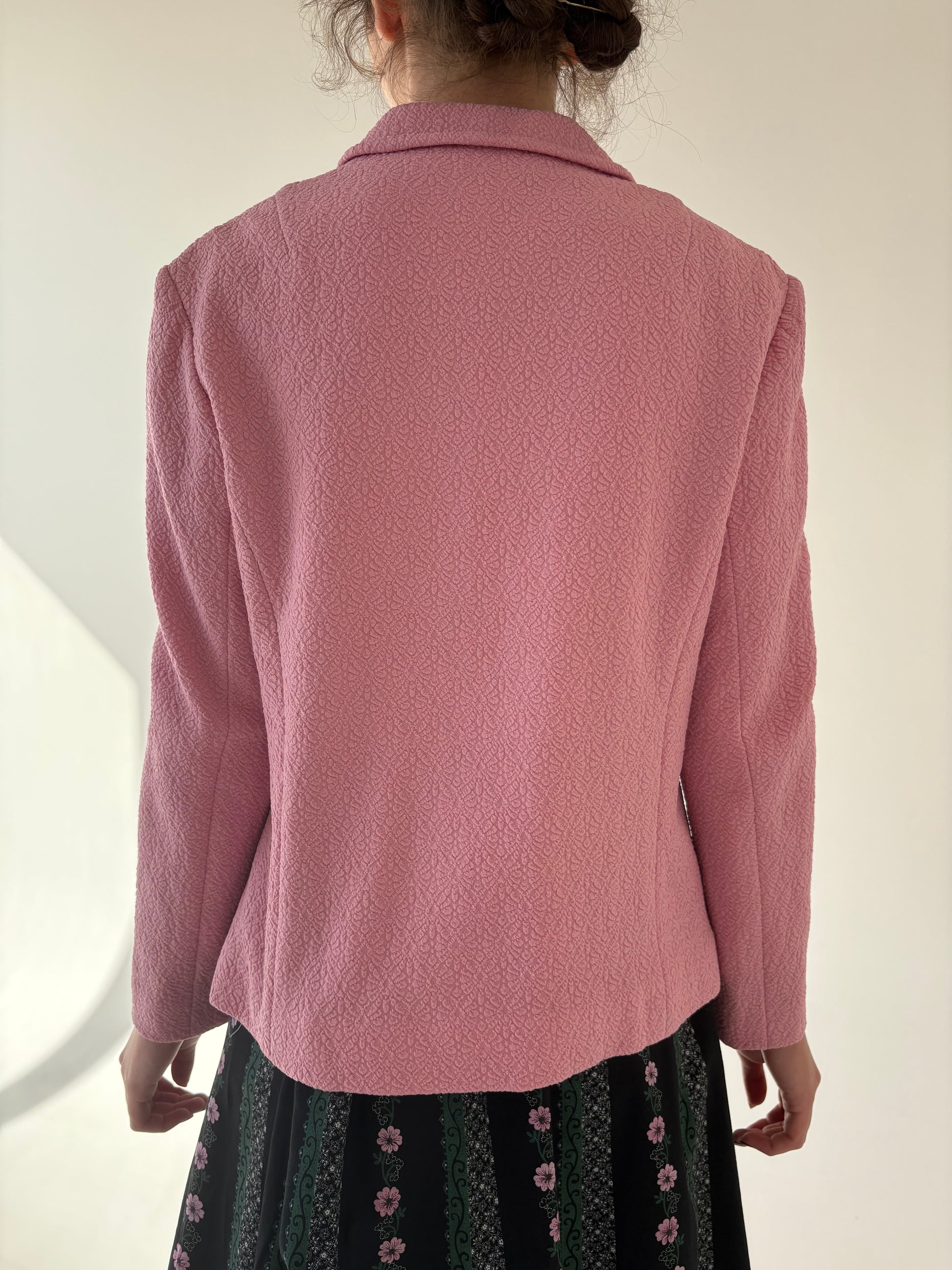 Sacou vintage roz pudrat din brocart în croi ușor cambrat