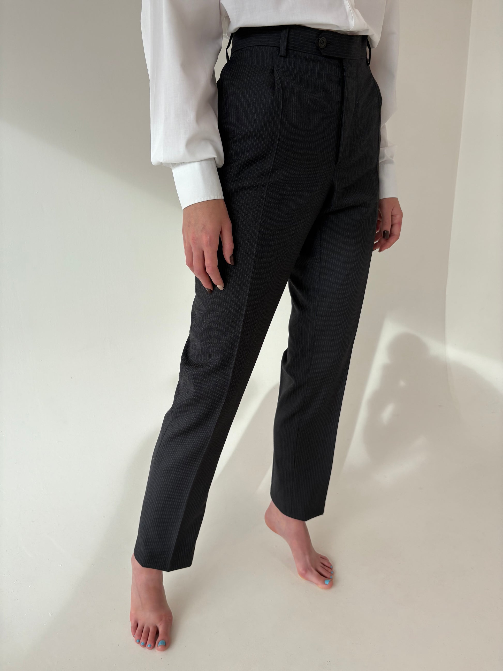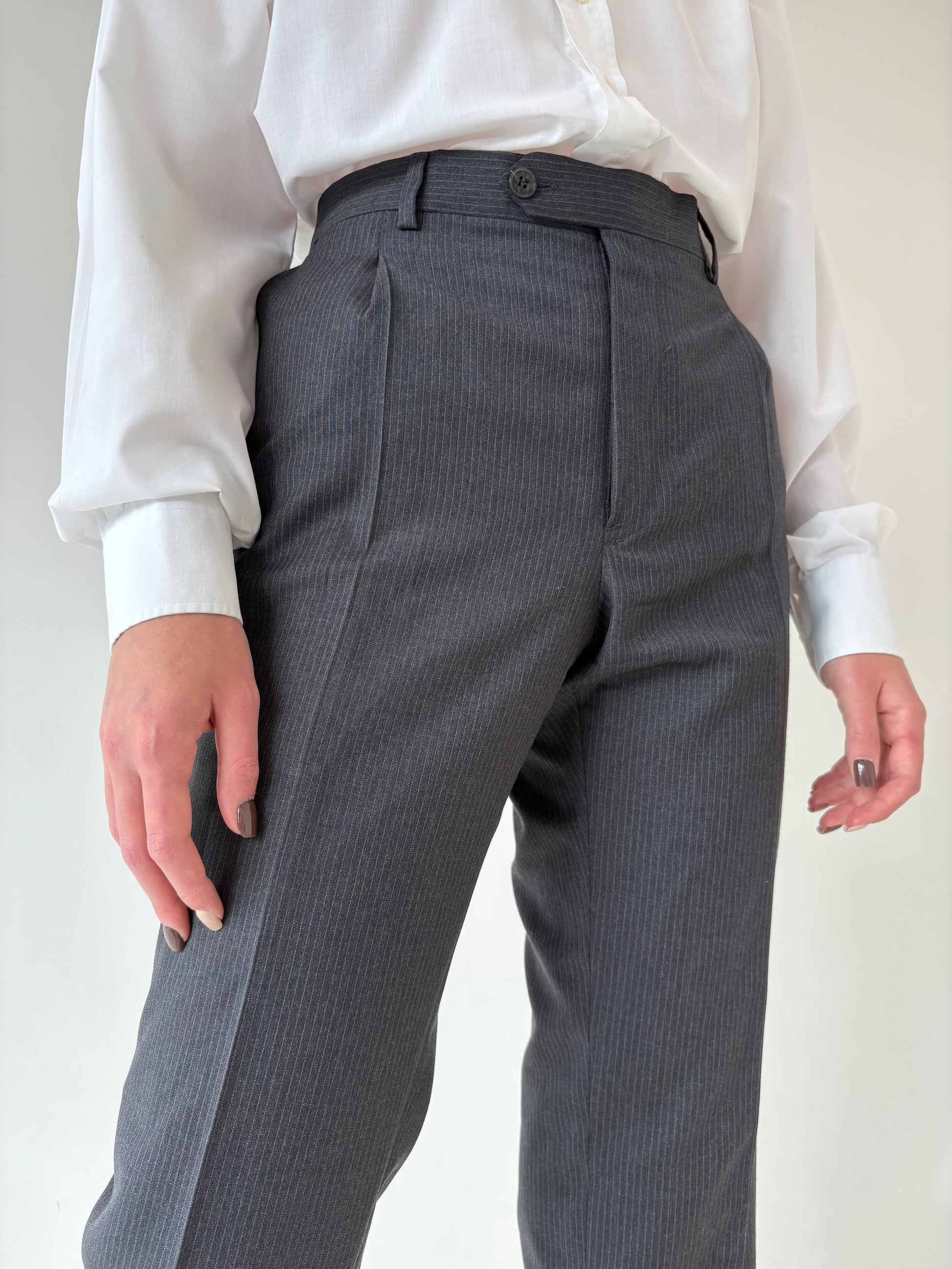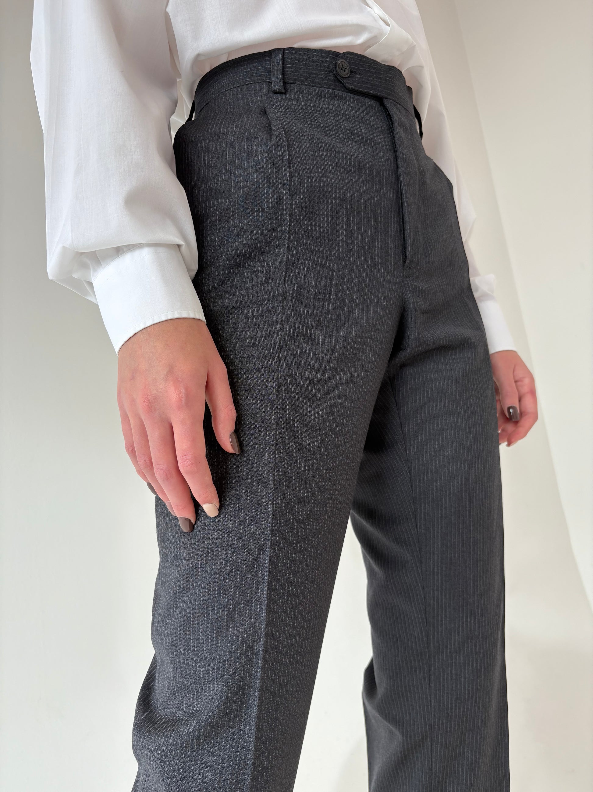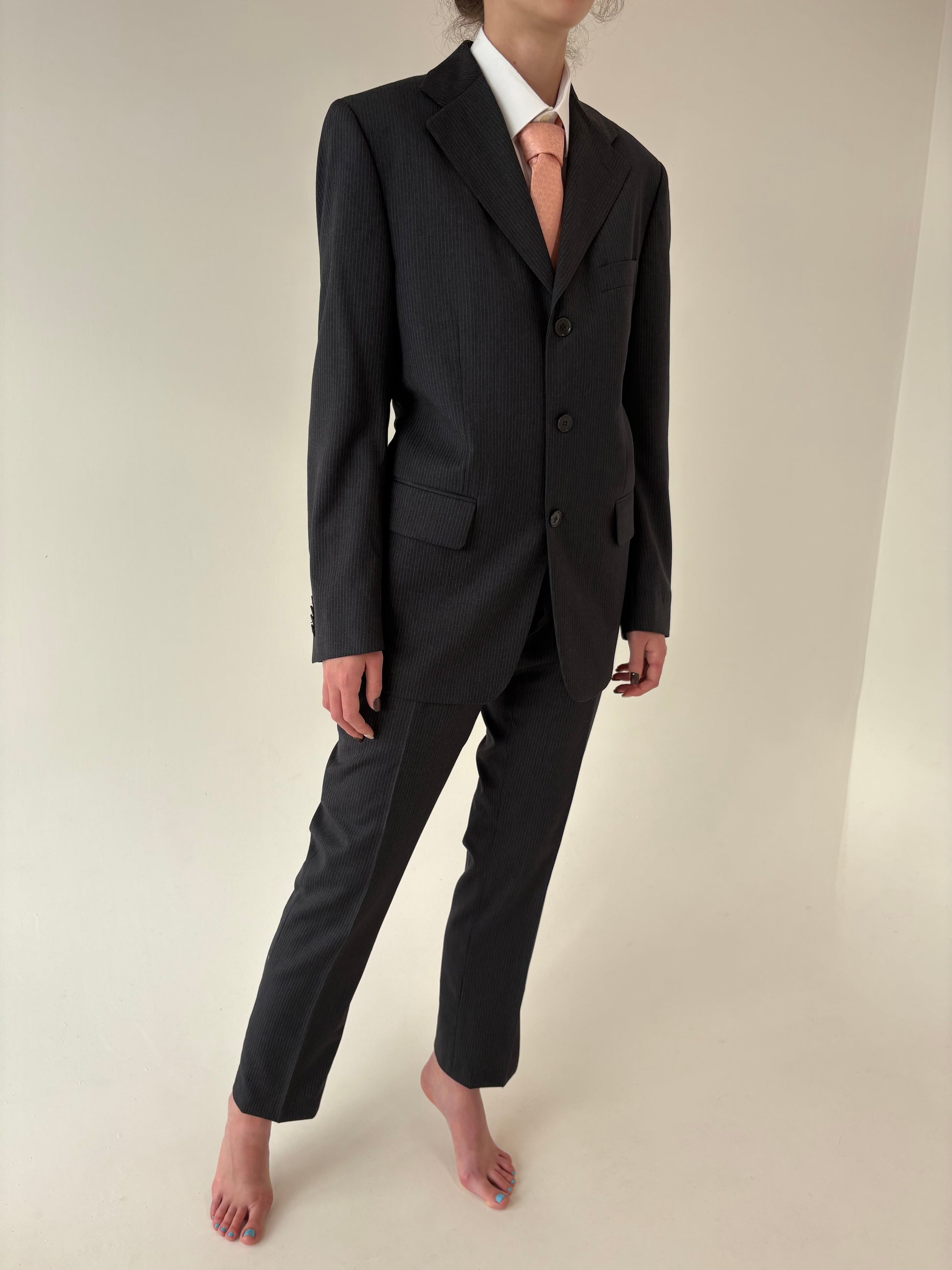 Costum italian cu dungi fine verticale ivoire din lana extrafina în croi actual