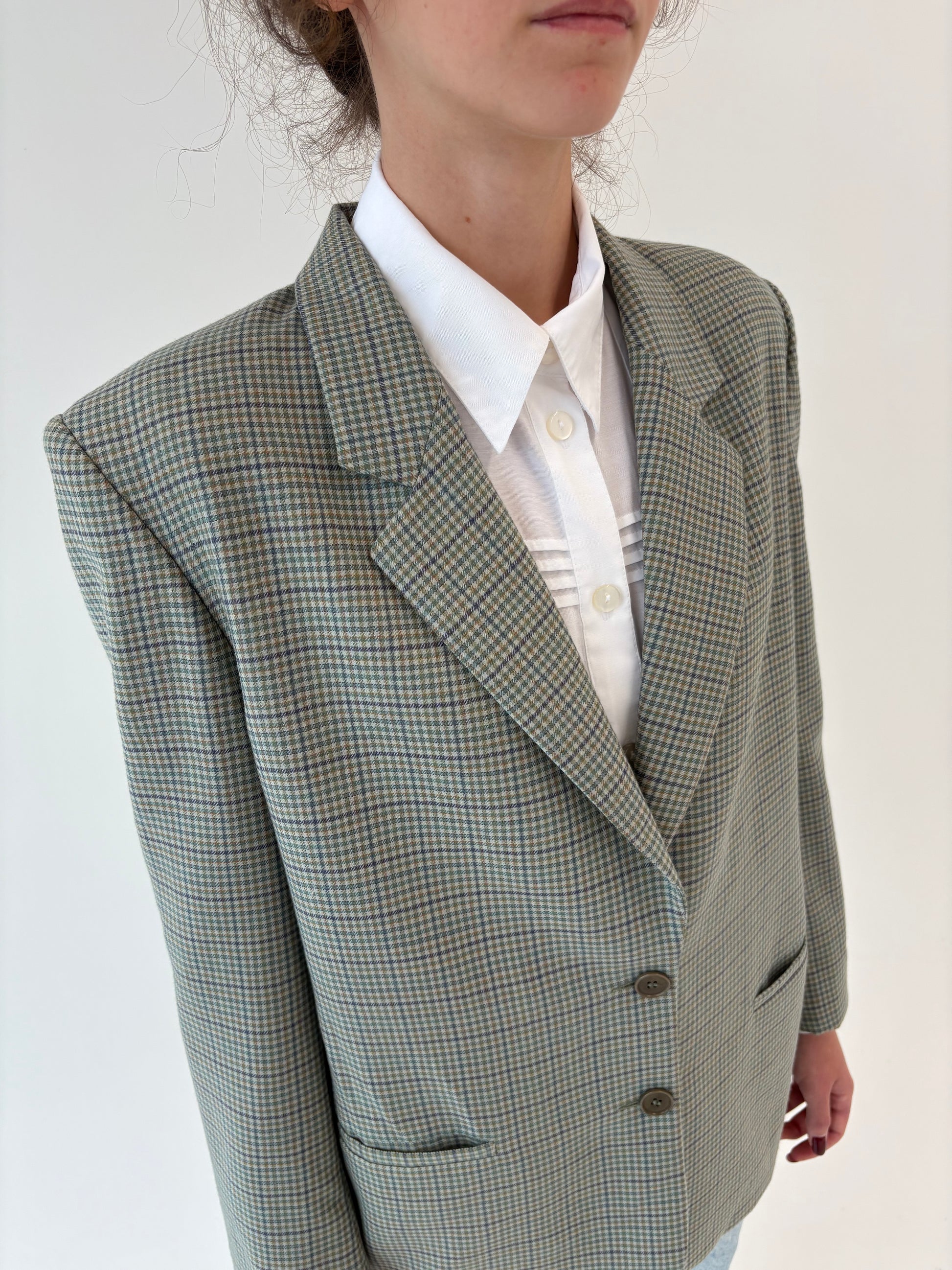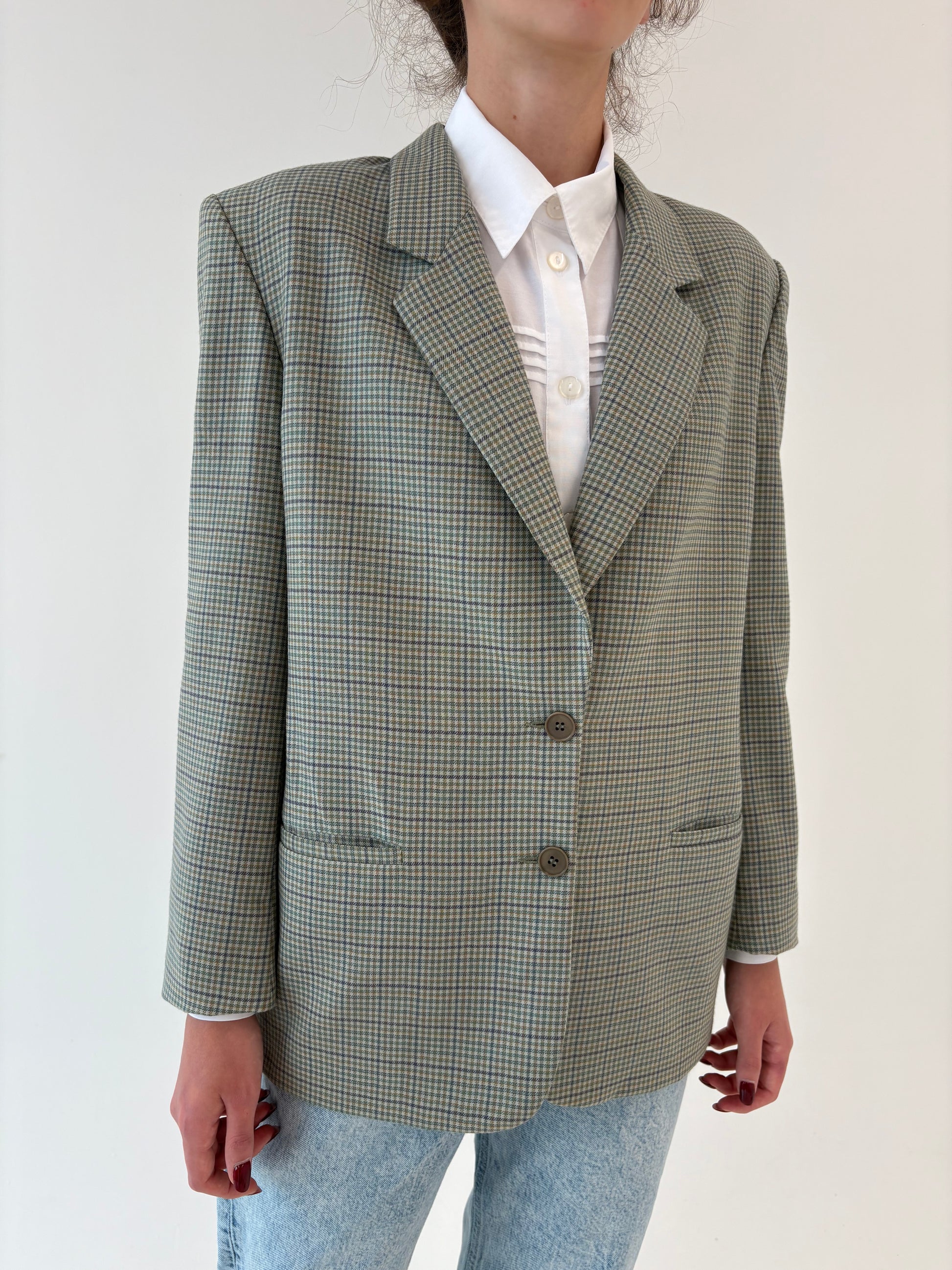 Sacou vintage în carouri din lana extrafina în nuanțe superbe pe mint green