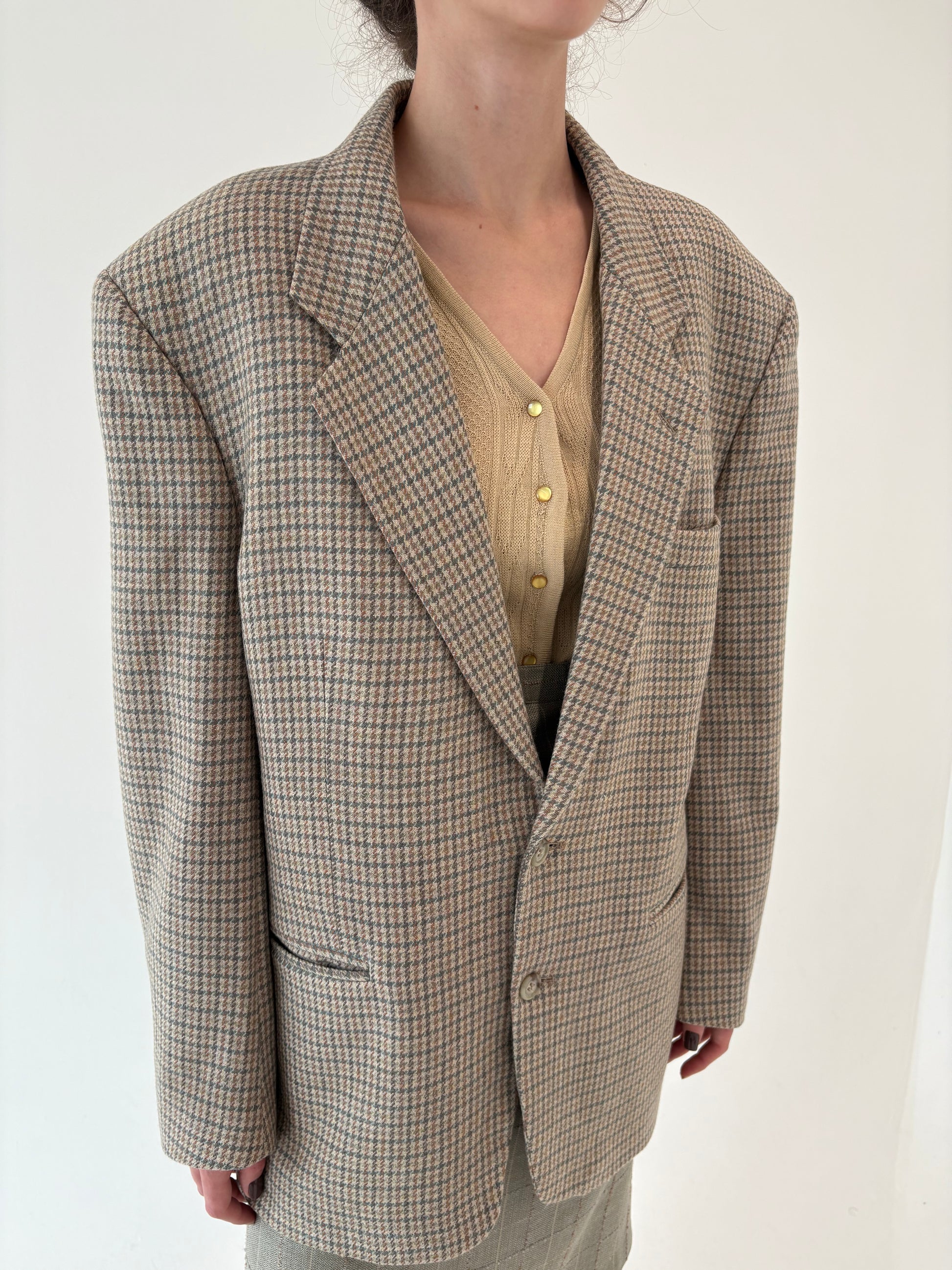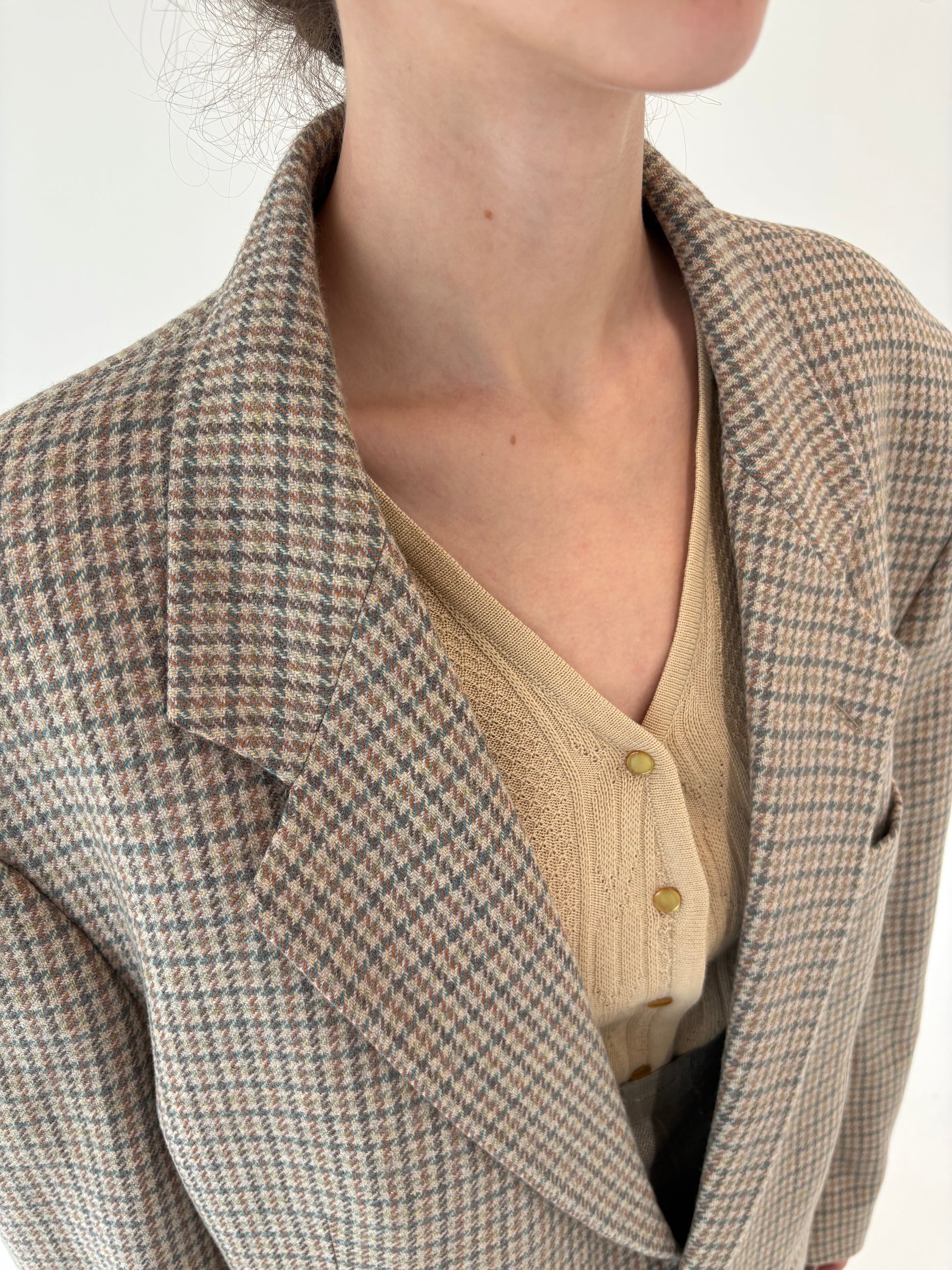 Sacou light nude pied du coq în culori pudrate din lana extrafina