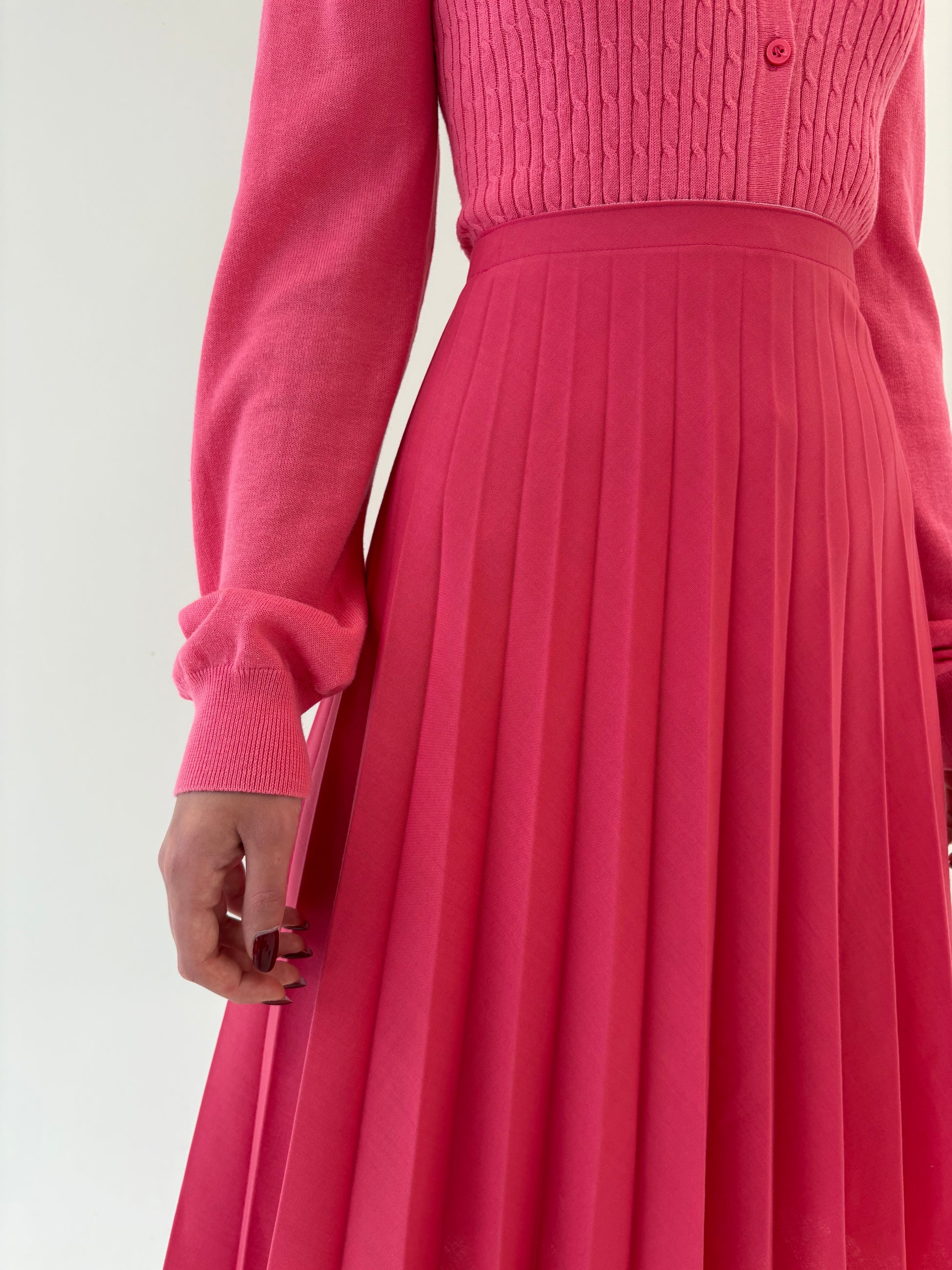 Fustă vintage plisată Barbie pink din stofita din mix de lana extrafina