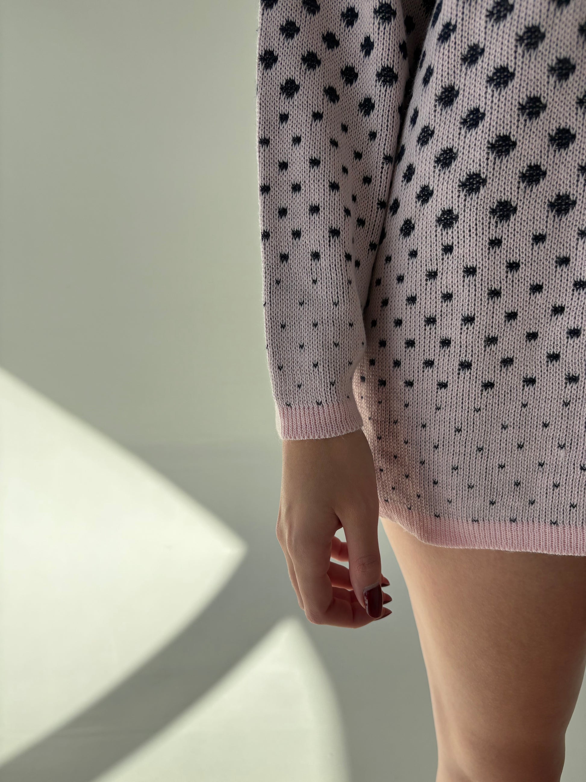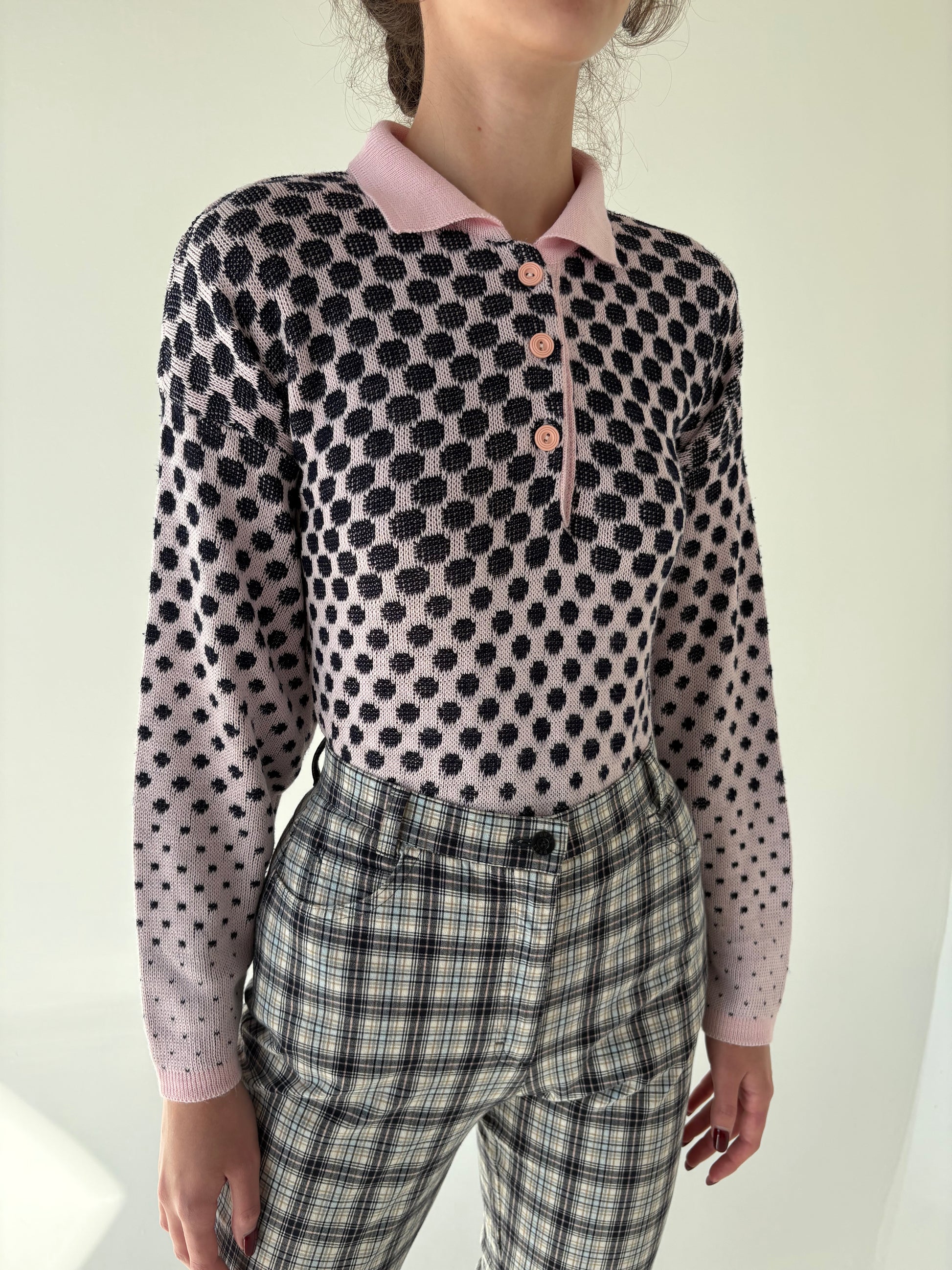 Pulover vintage polo roz pudrat cu Navy din mix de lana extrafina