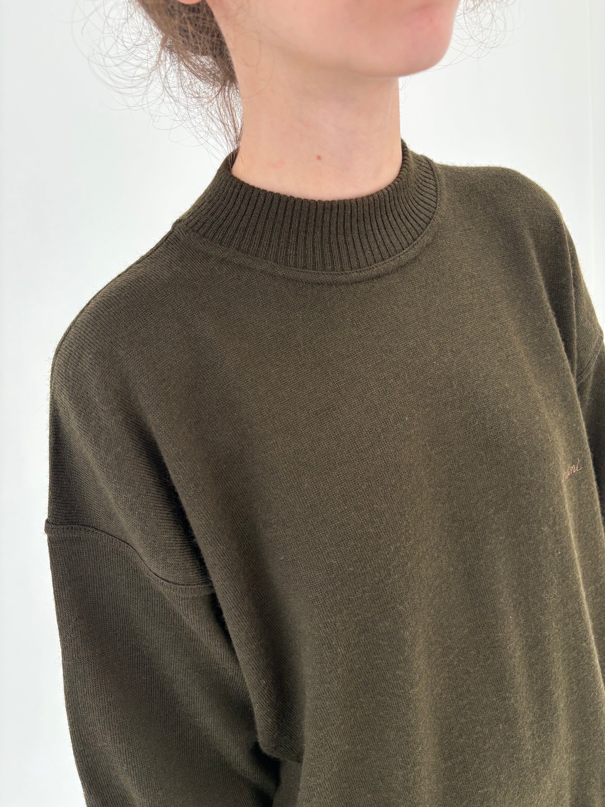 Maleta chimney dark kaki italiană din lana merino extrafina de gramaj mare