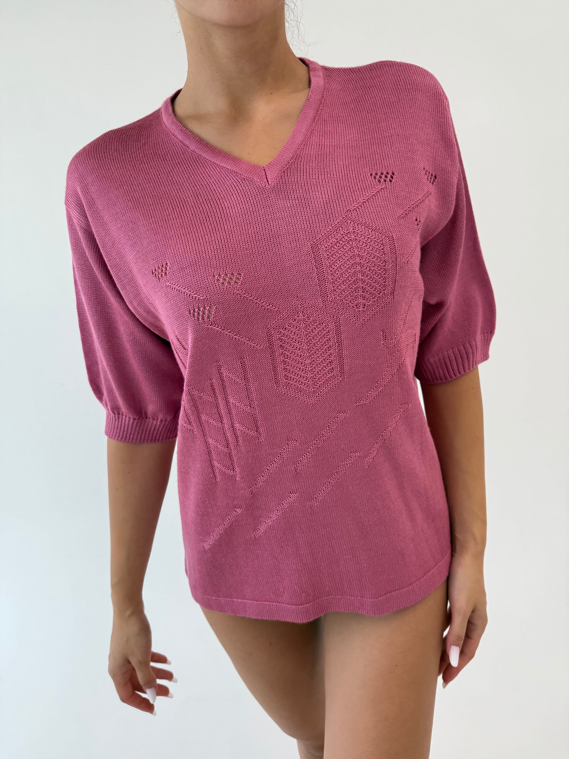 Top vintage old rose Pink din tricot din mix de lana extrafina