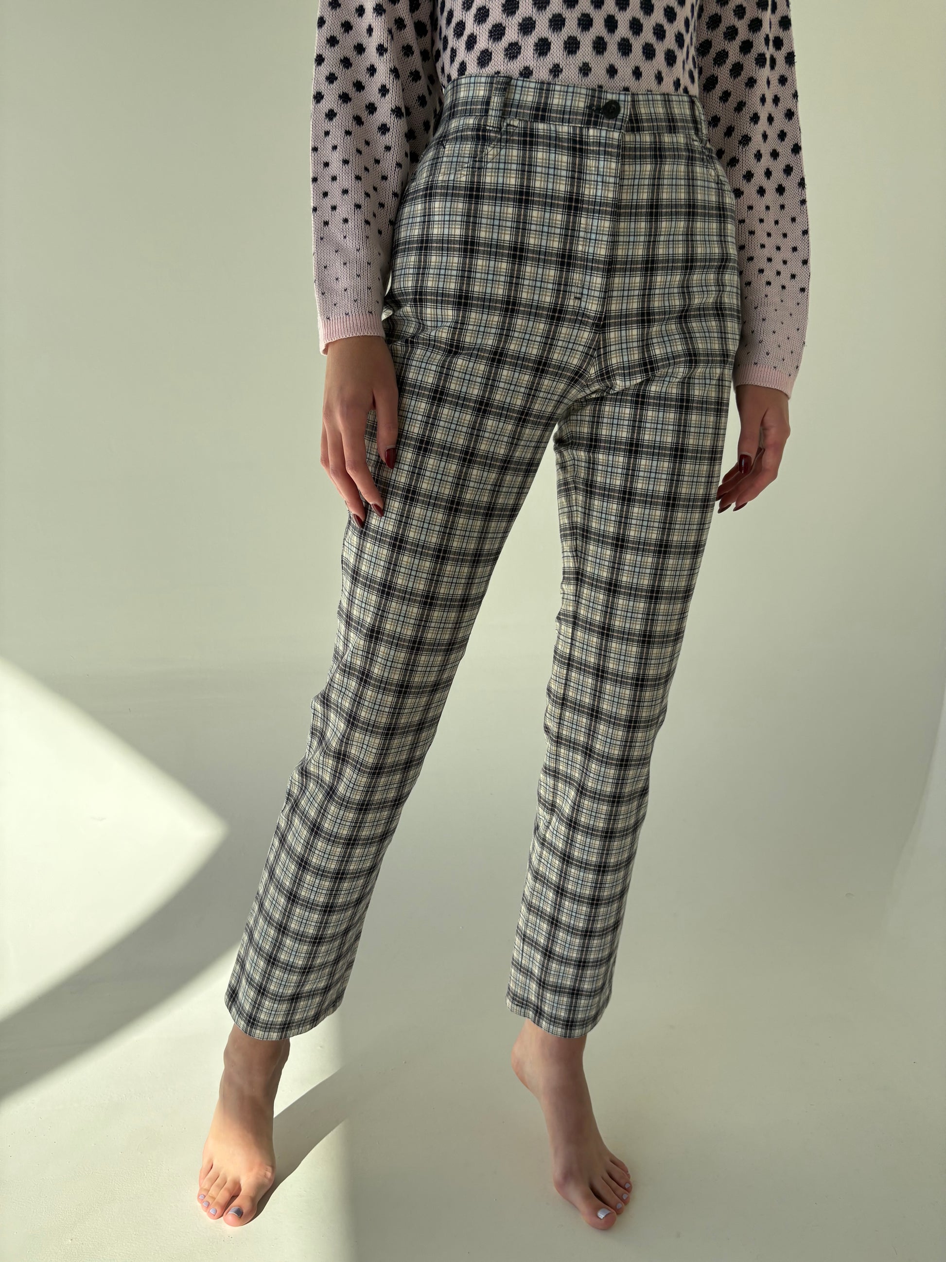 Jeans ultra confort modelatori carouri și combinație clasică de culori
