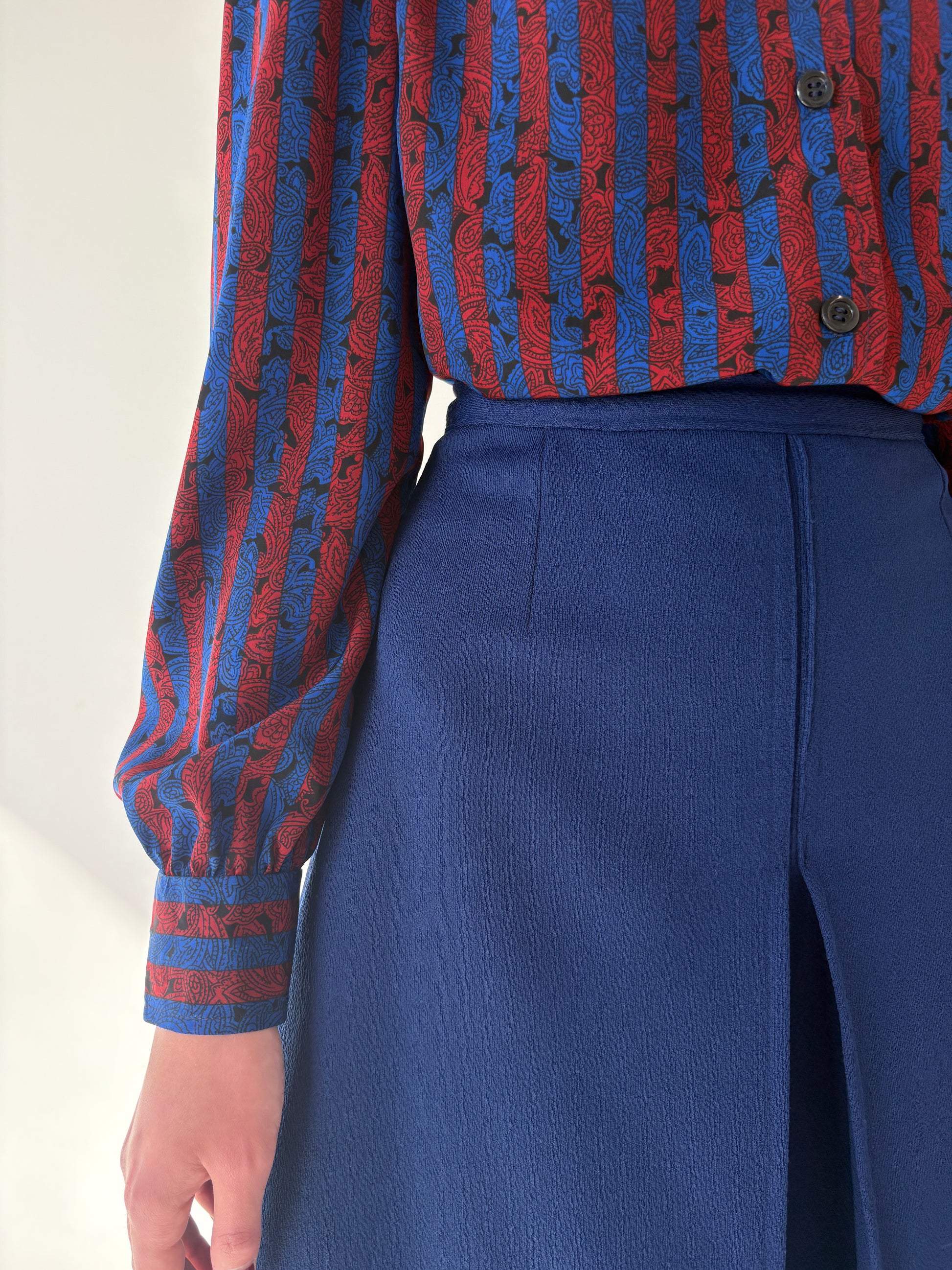 Culottes vintage din bolrocart ușor elastic albastru cerneală