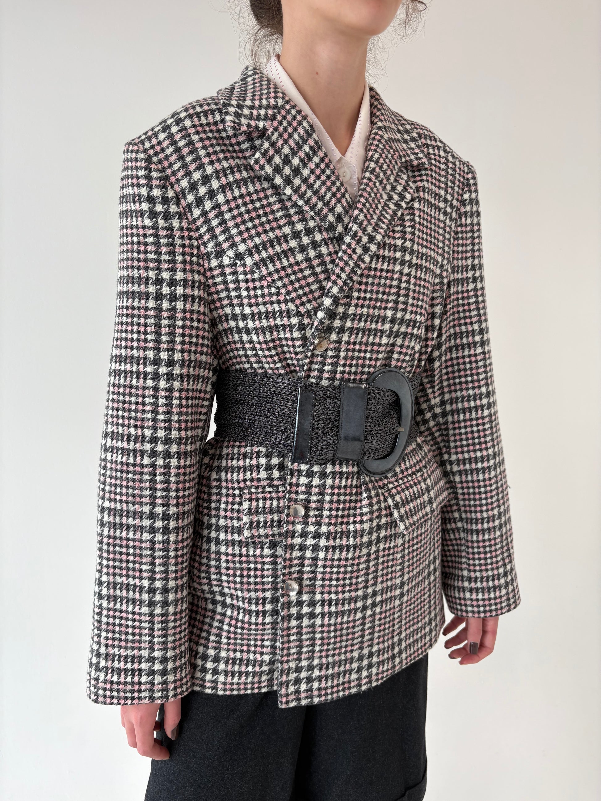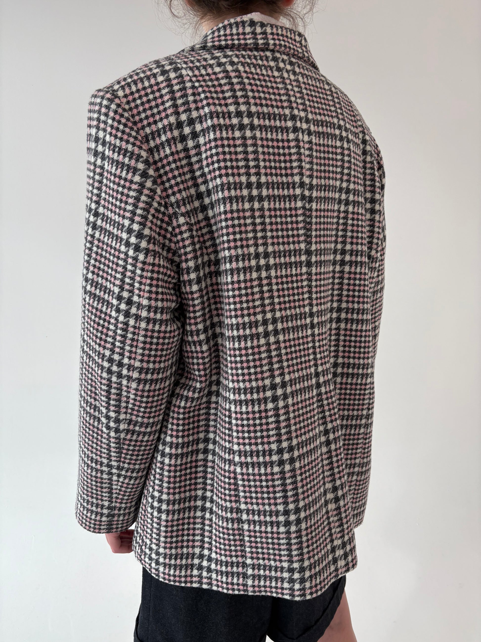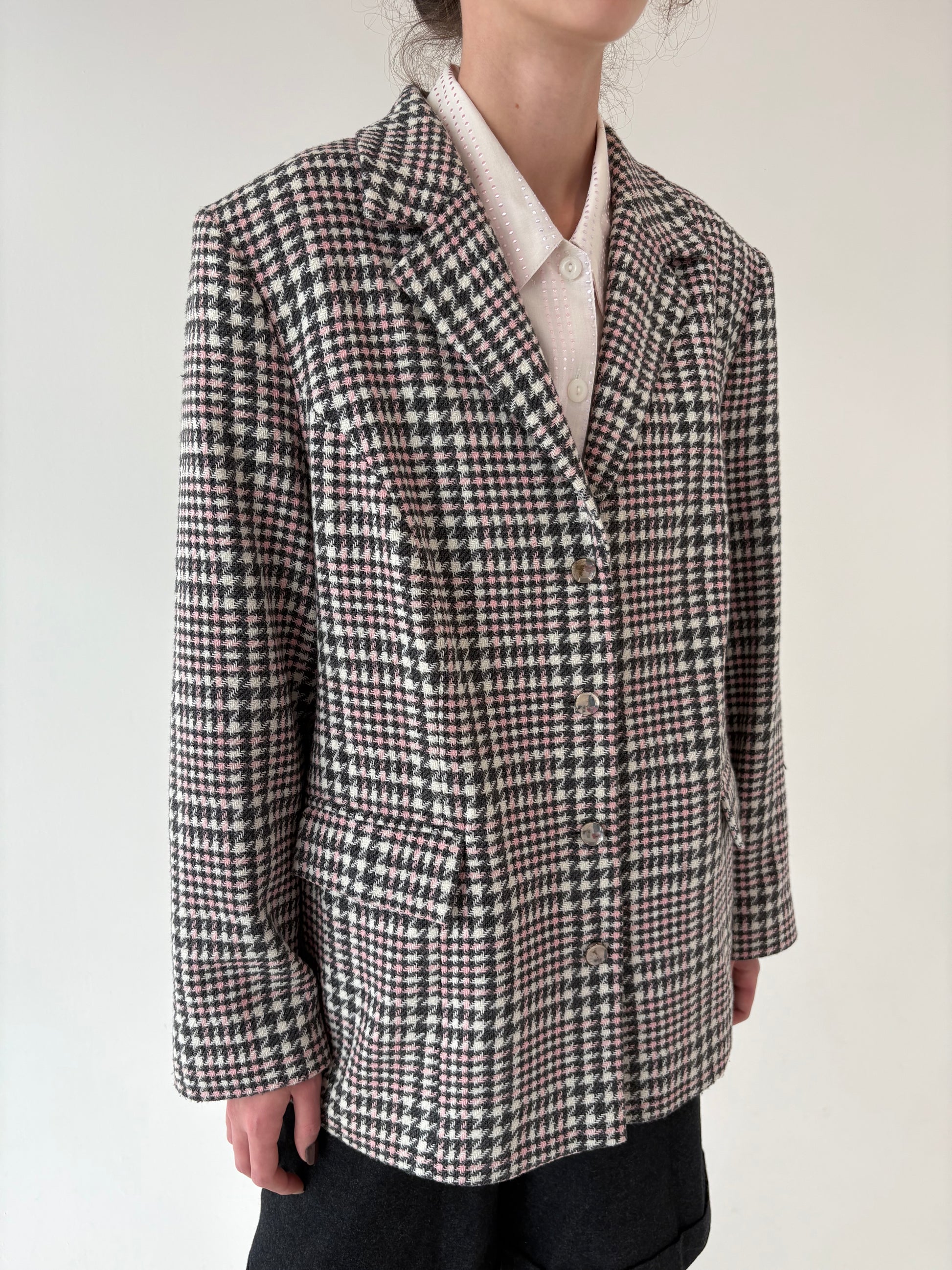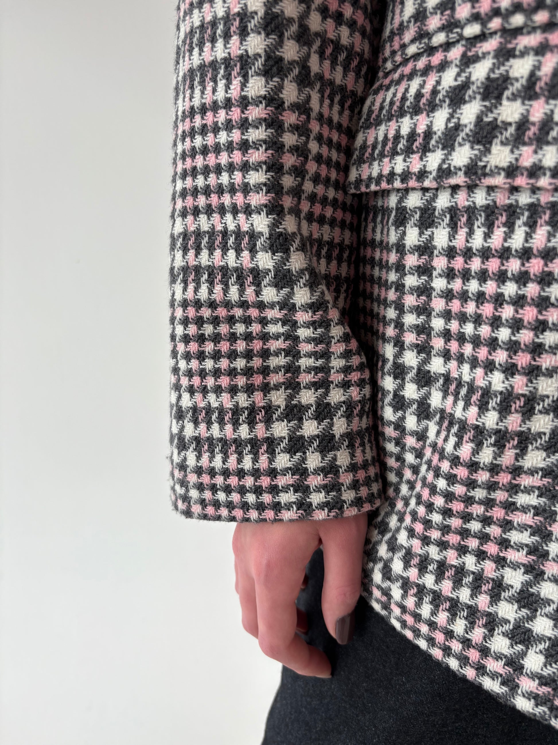 Sacou și tweed de lana extrafina în carouri roz pudrat
