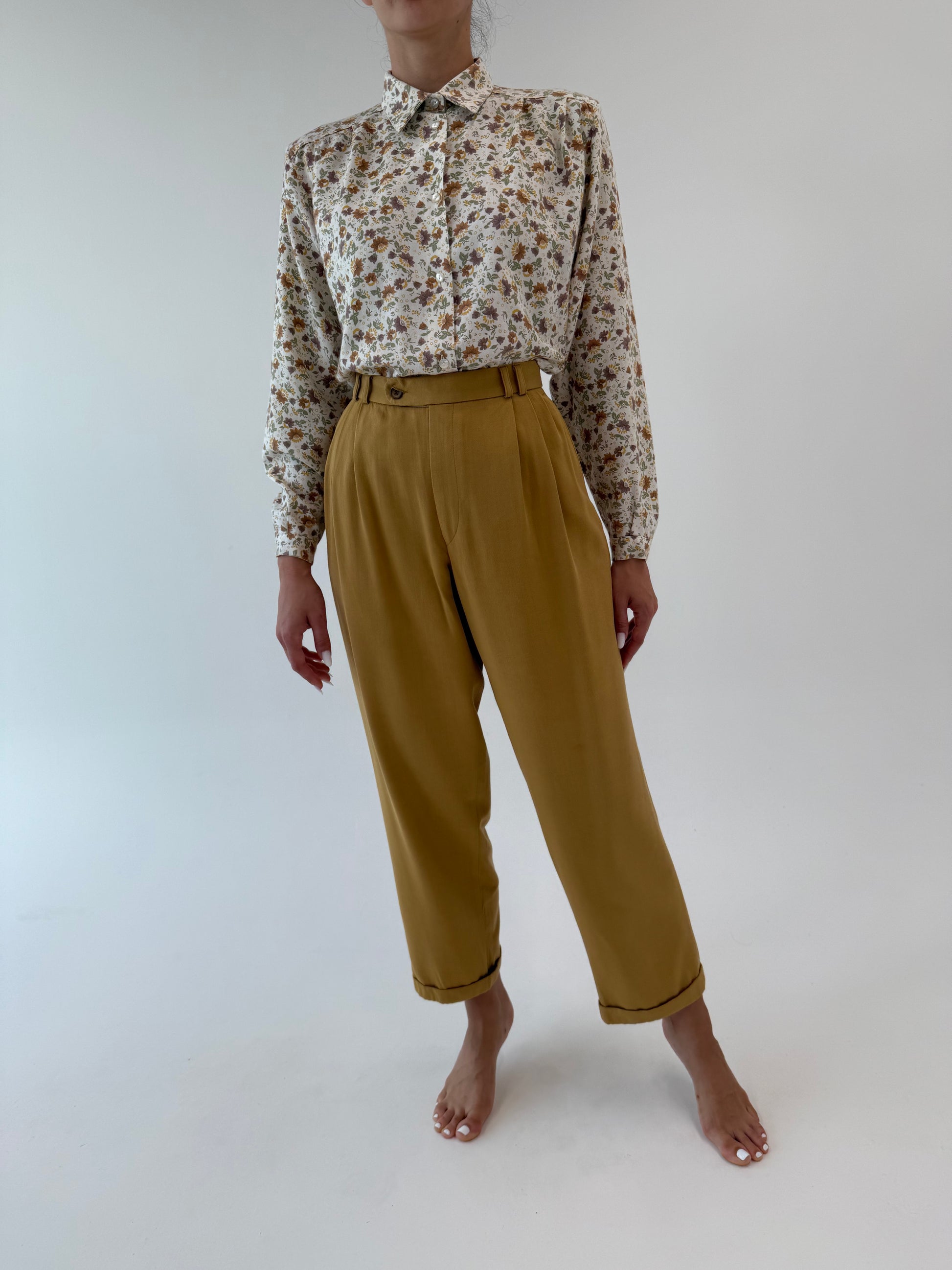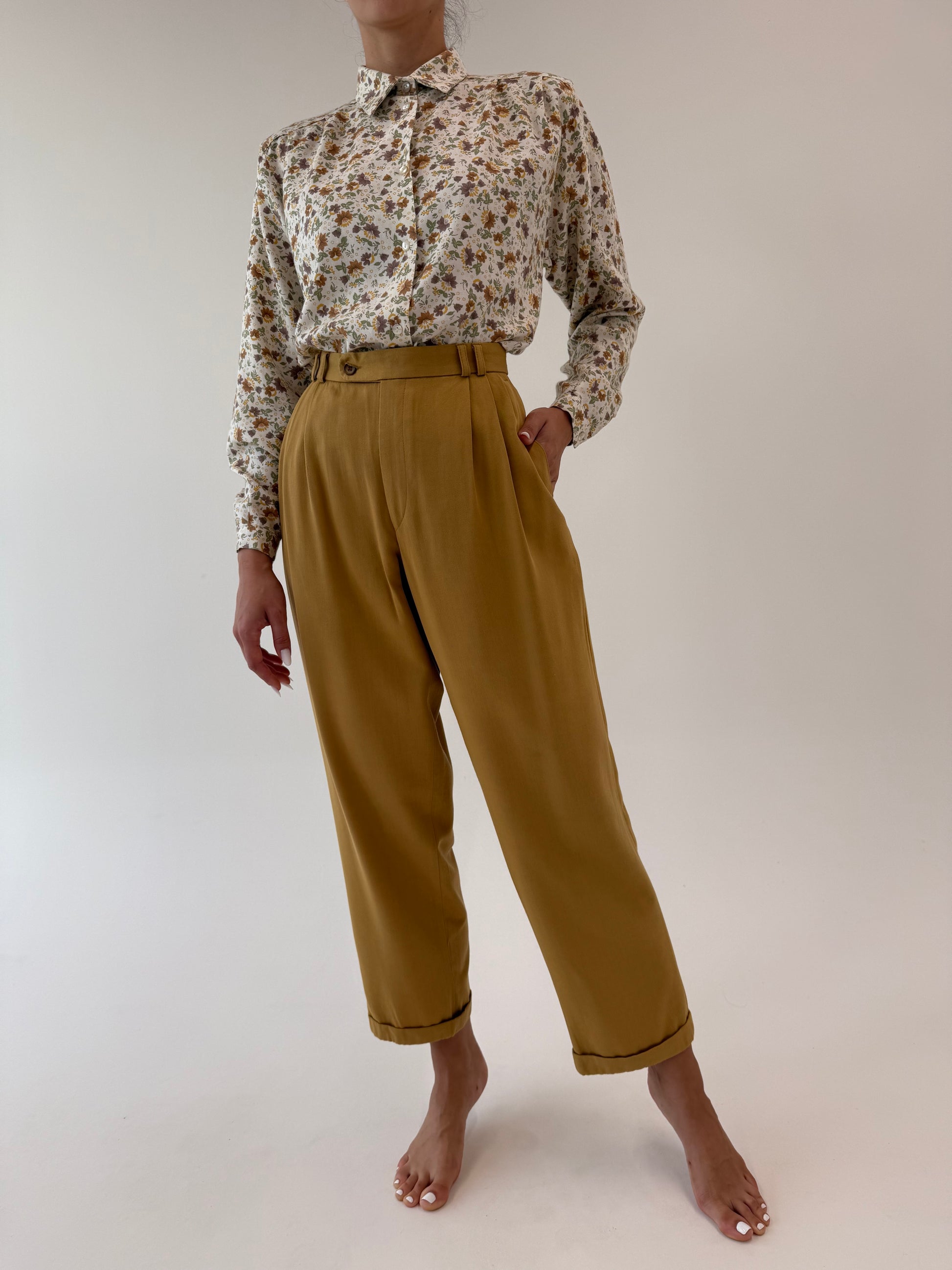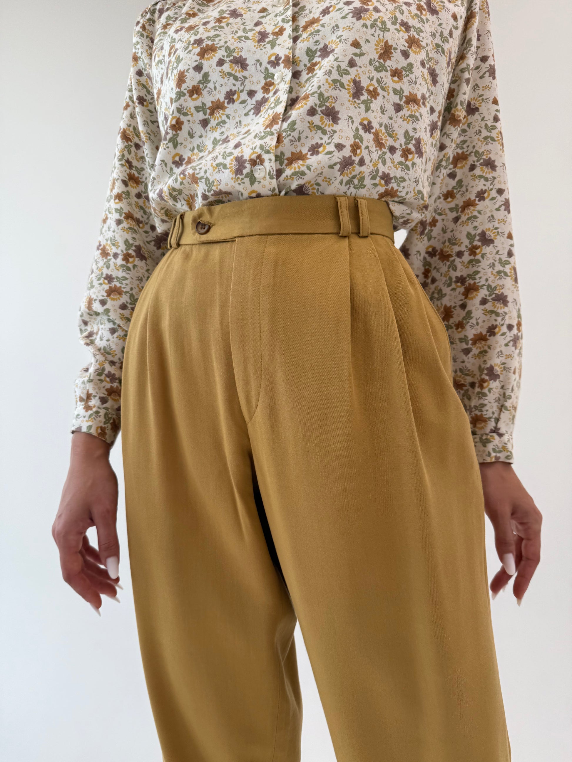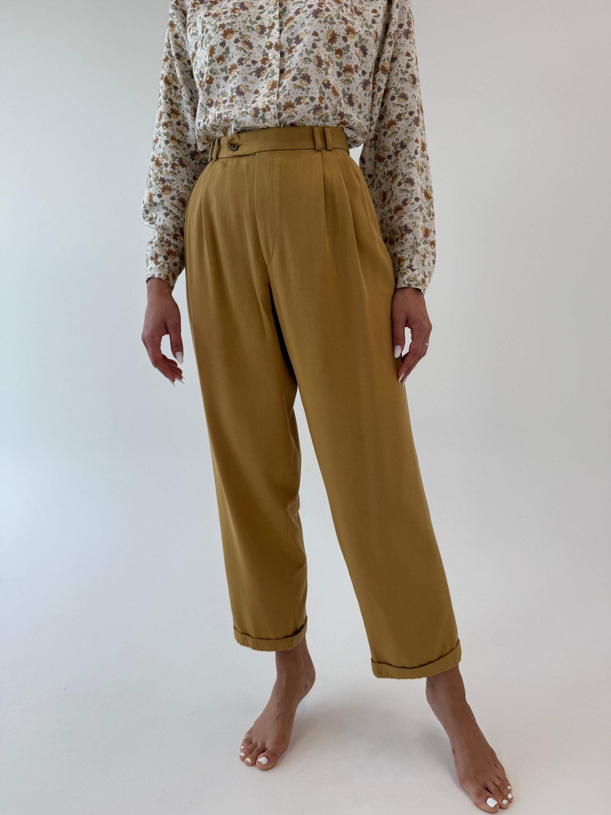 Pantaloni vintage camel din bumbac super gros cu pense și manșete
