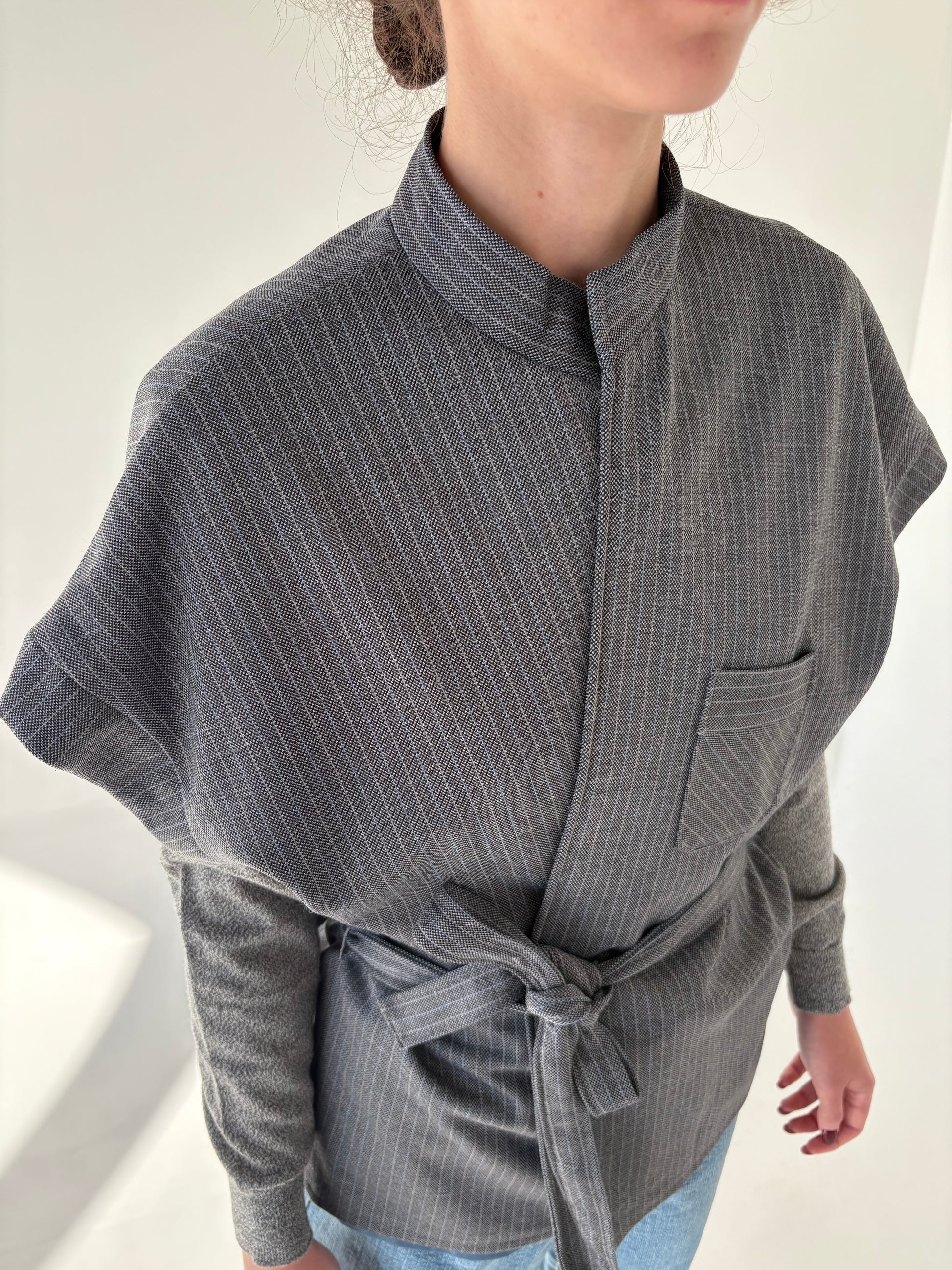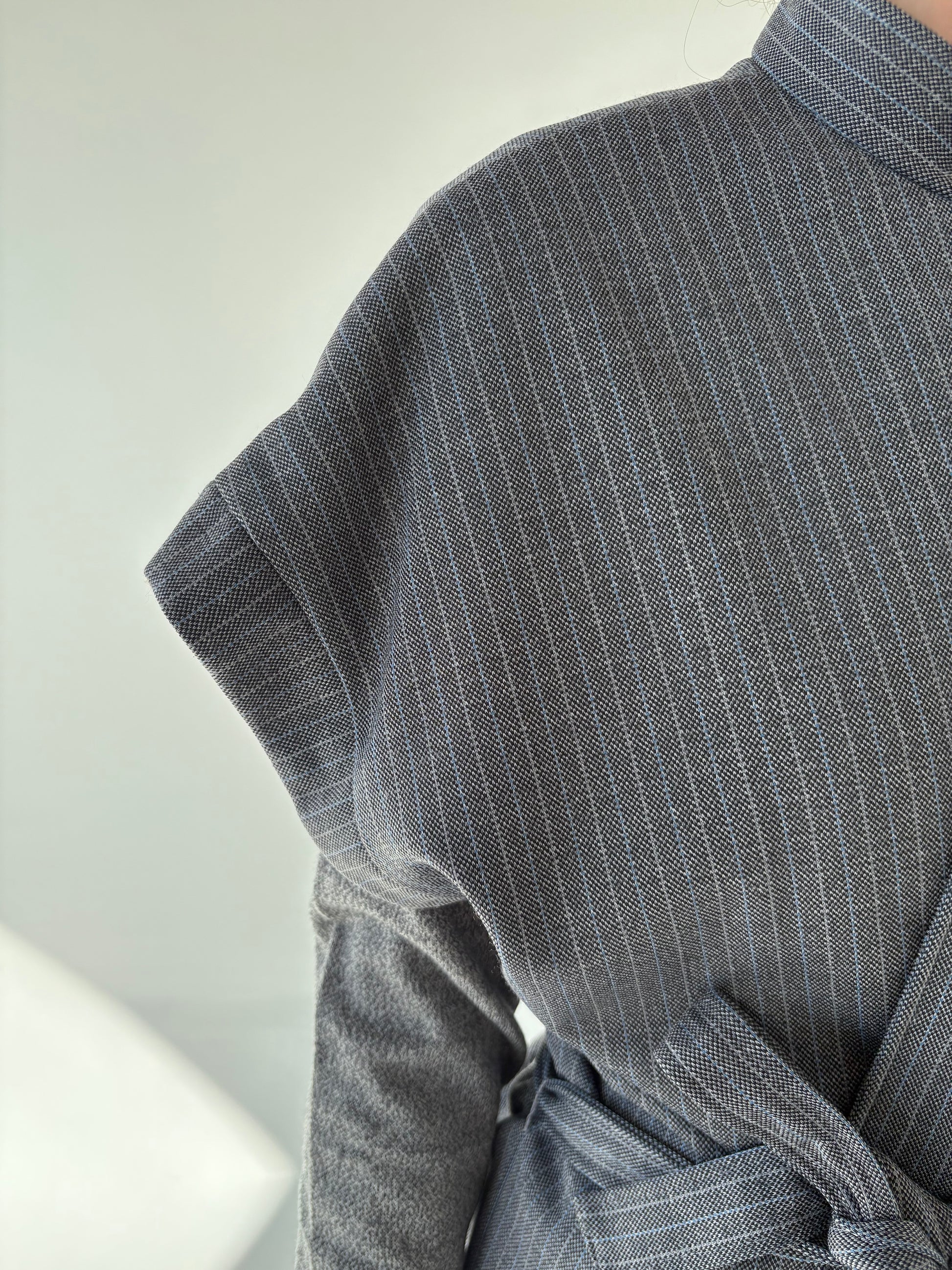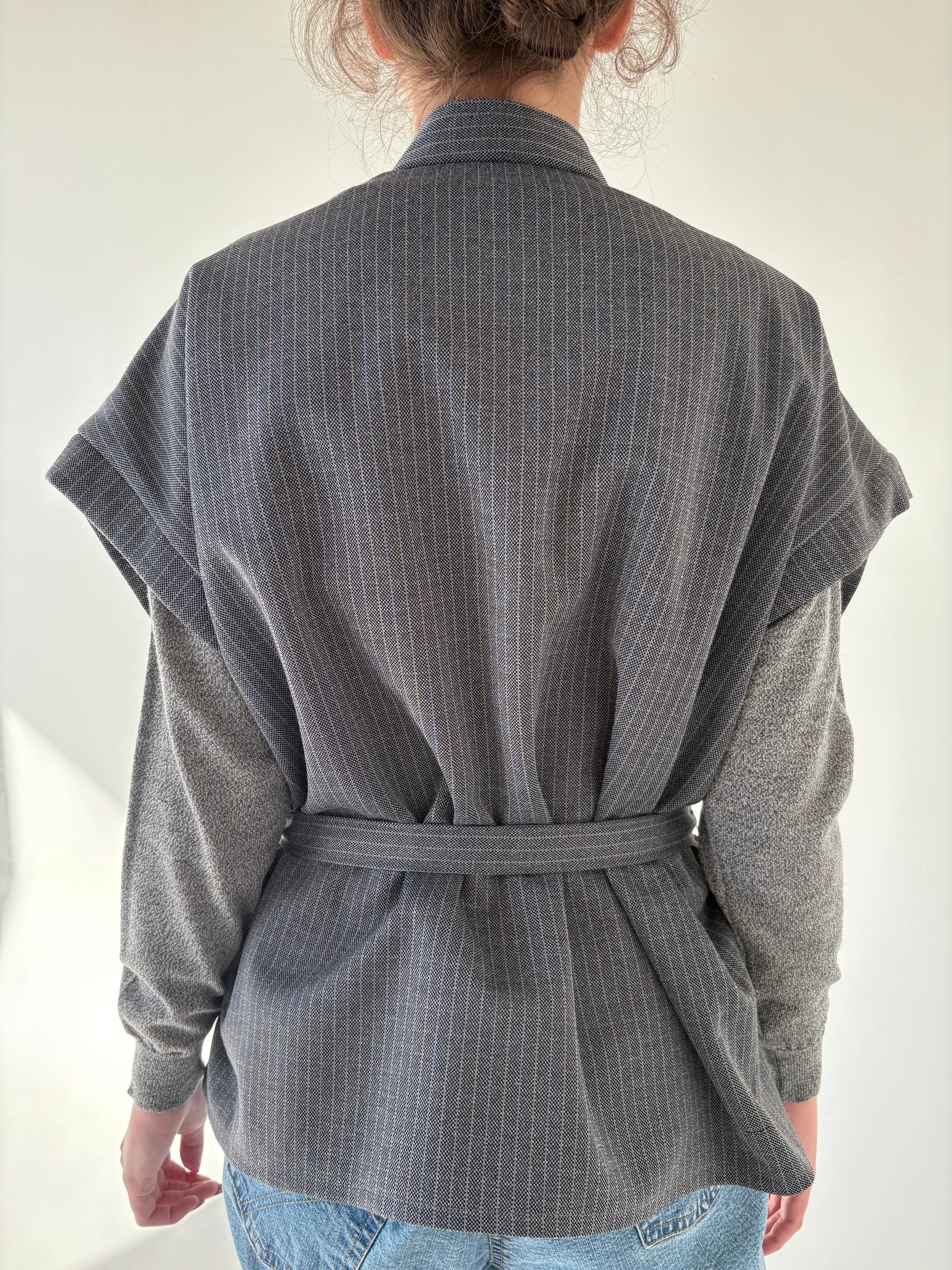 Vestă din stofă de lana in croi retro modern și talie marcată reglabilă
